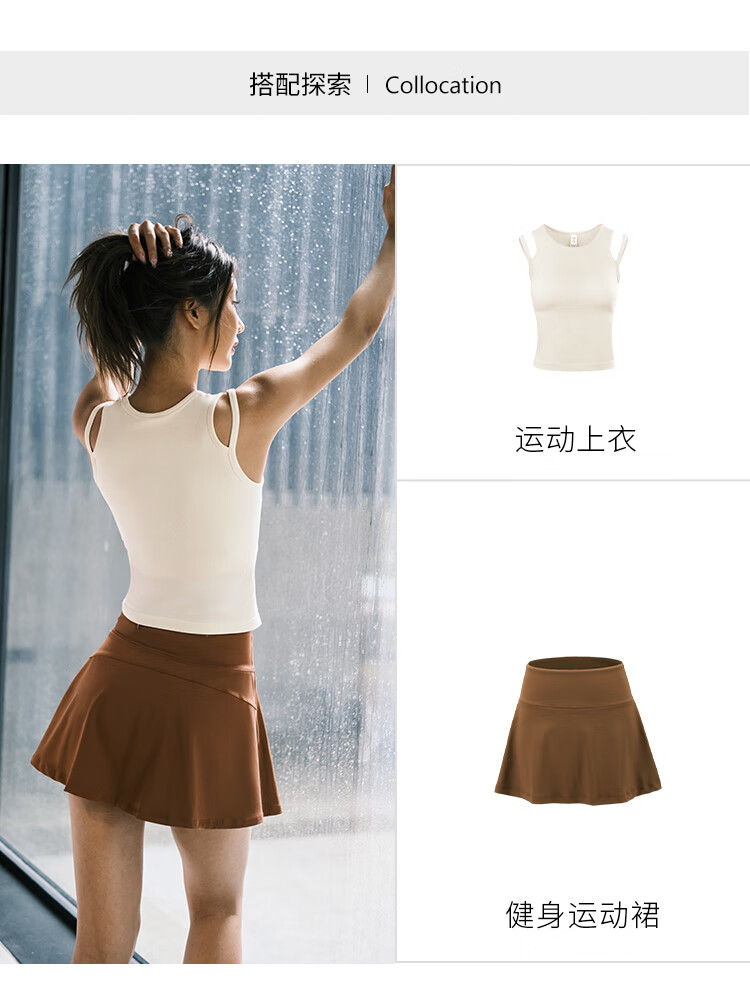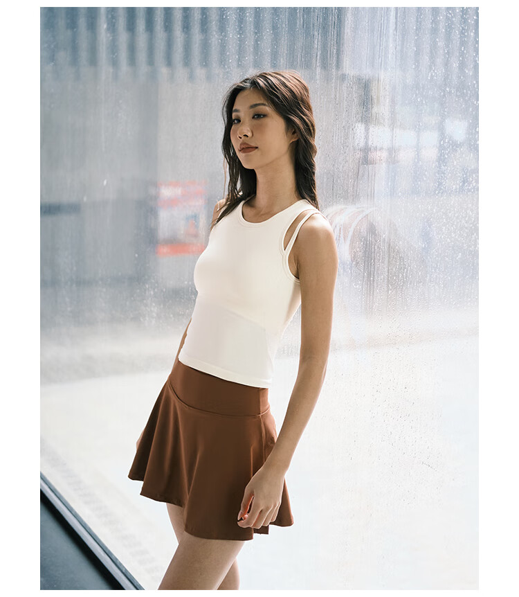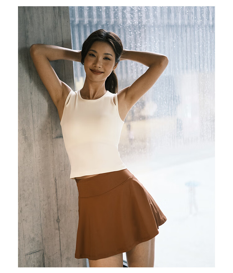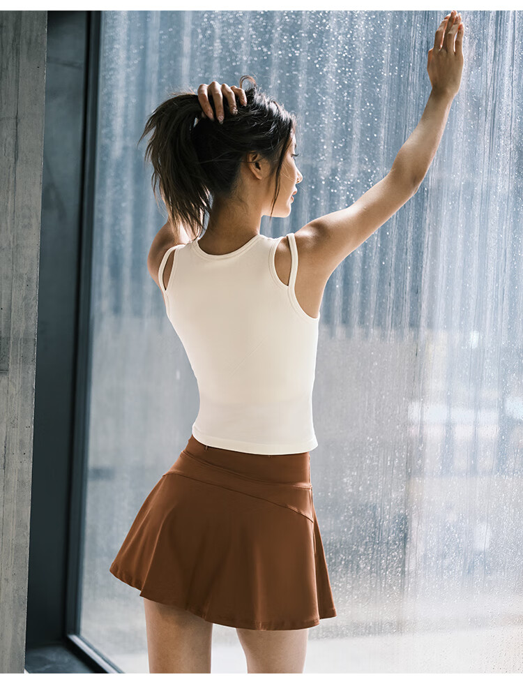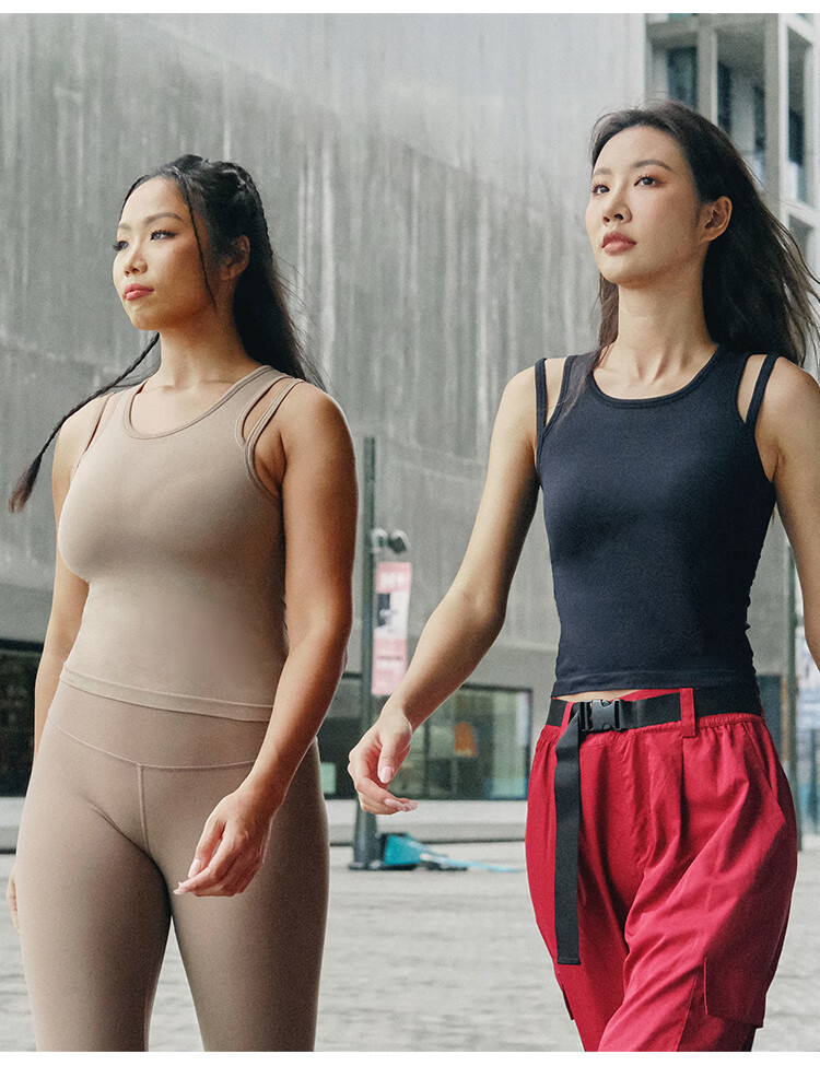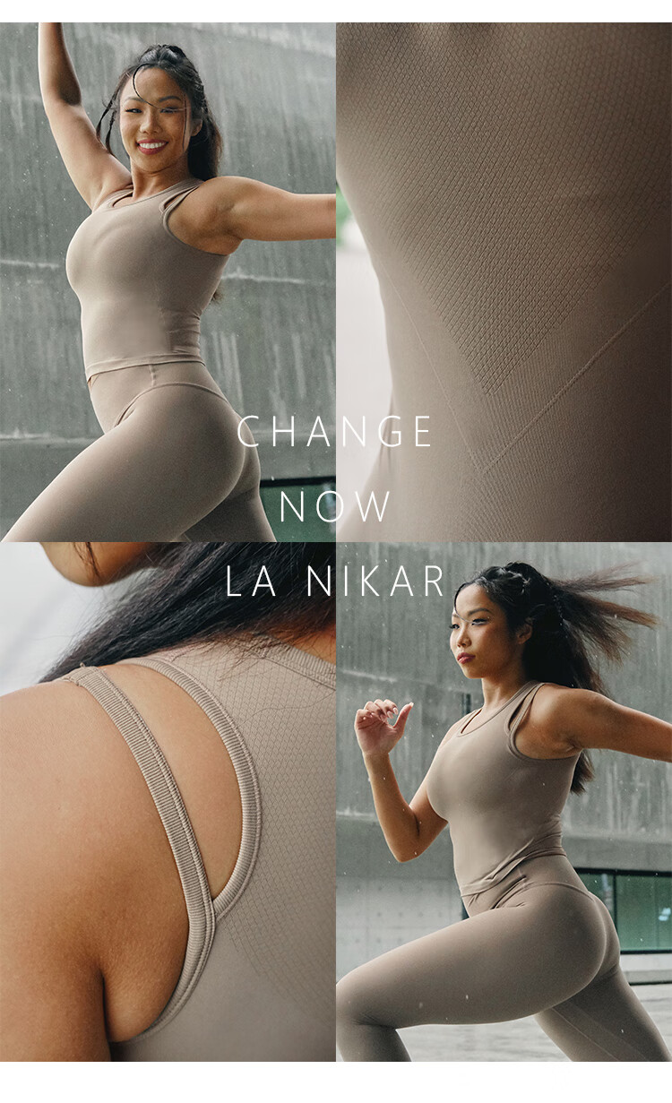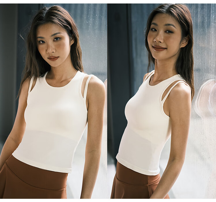 La Nikar Yoga Vest Women's Fake Two-piece Top with Padded Sports Bra Pilates Fitness Sleeveless-S1372 Cream Apricot L
