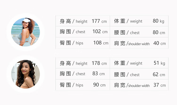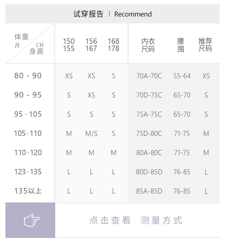 China (cm) 160-165/84-86 165-170 / 88-90 167-172 / 92-96 168-173 / 98-102 170-176 / 106-110
