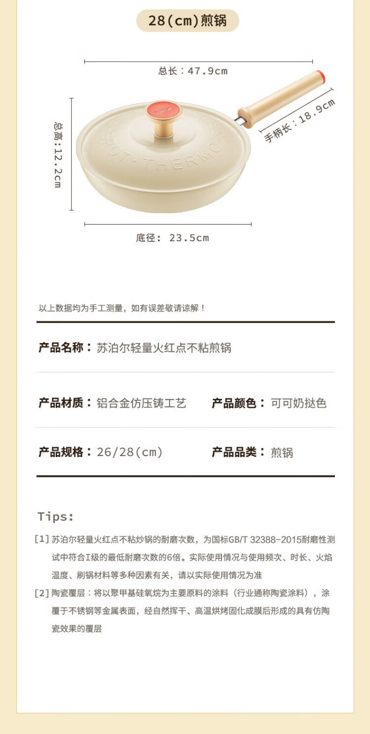 SUPOR non-stick pan, lightweight, red-point, non-stick frying pan, multi-purpose frying pan, induction cooker, open flame, universal 28cm EJ28QLP01