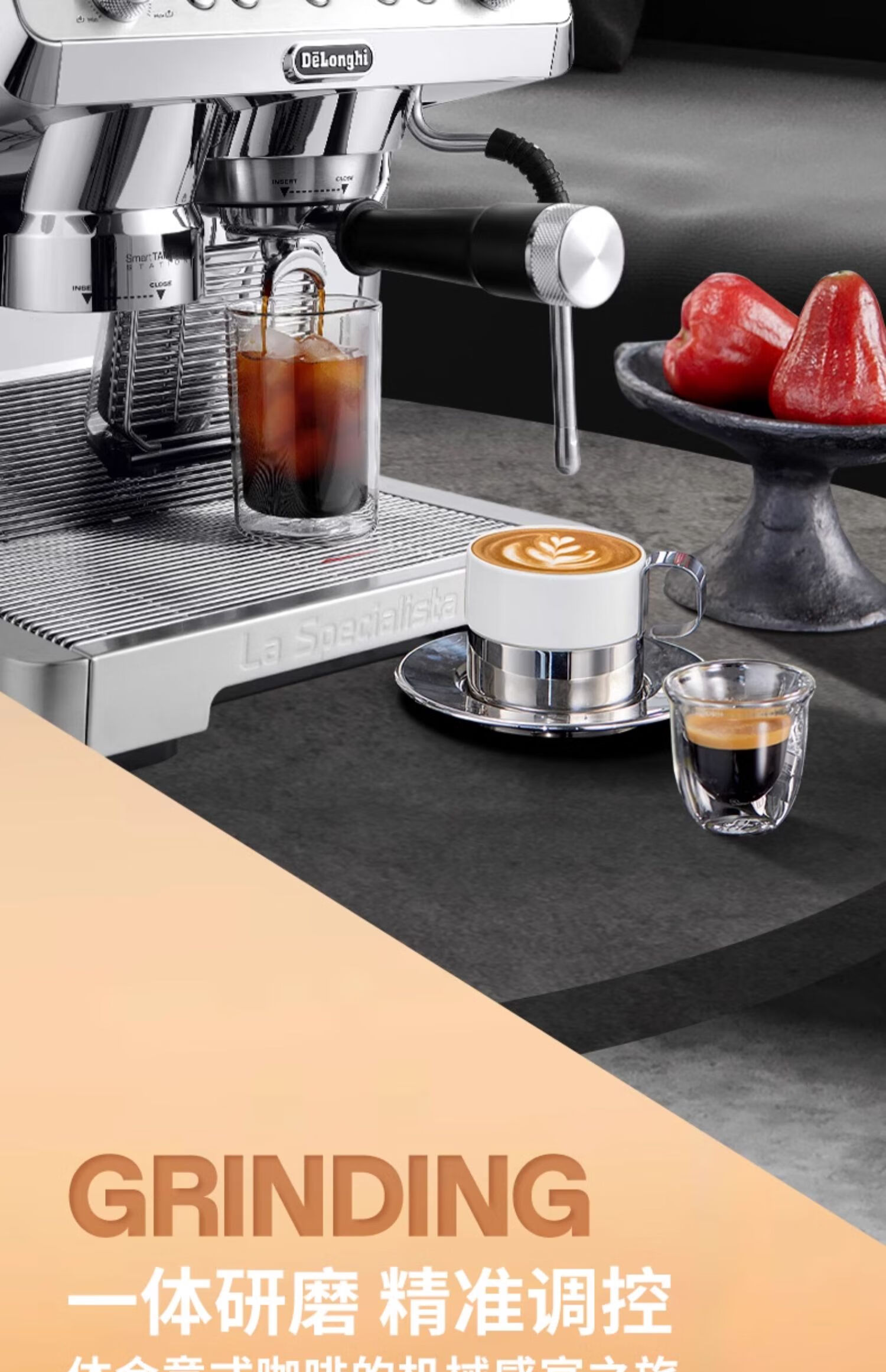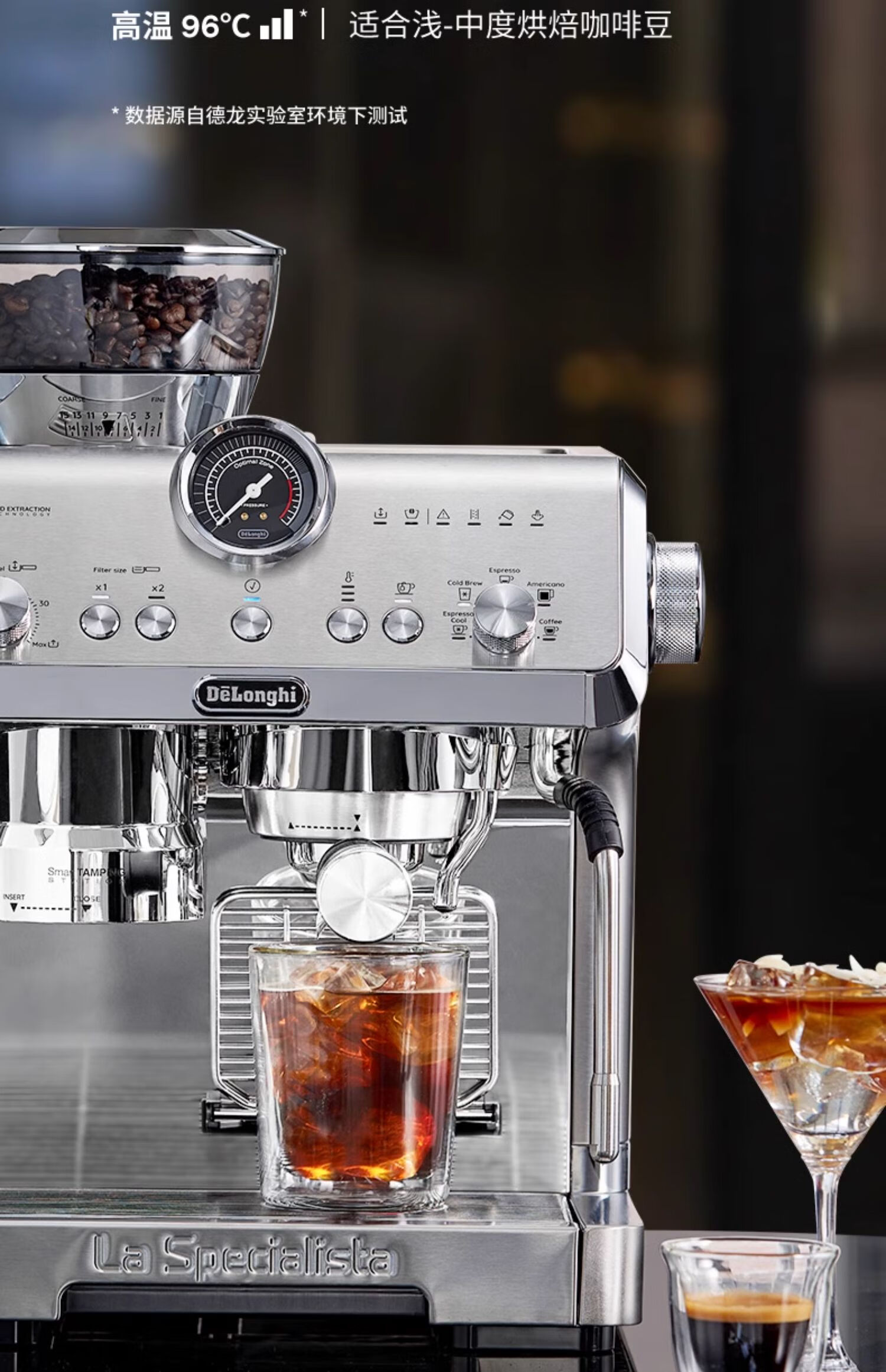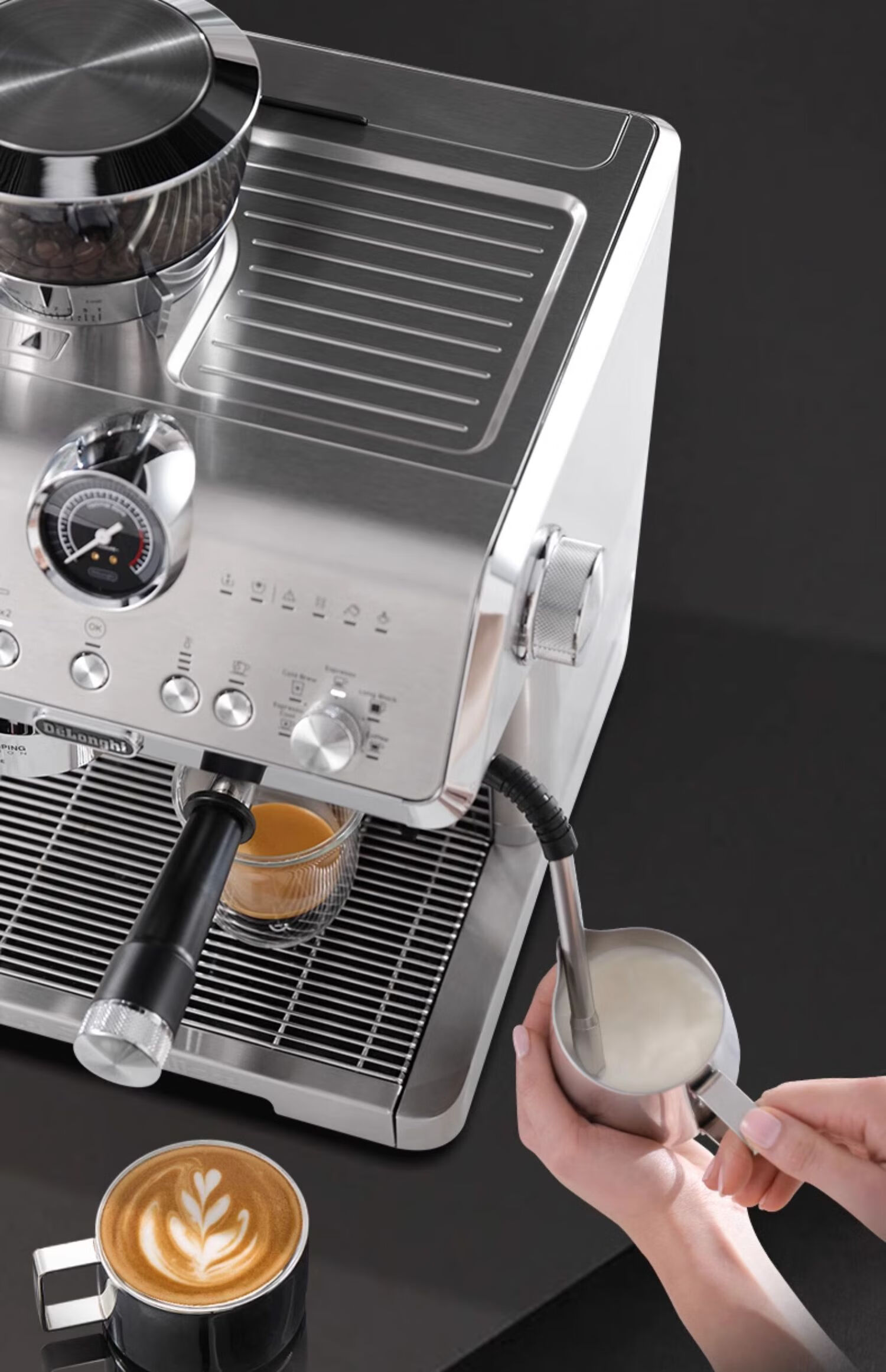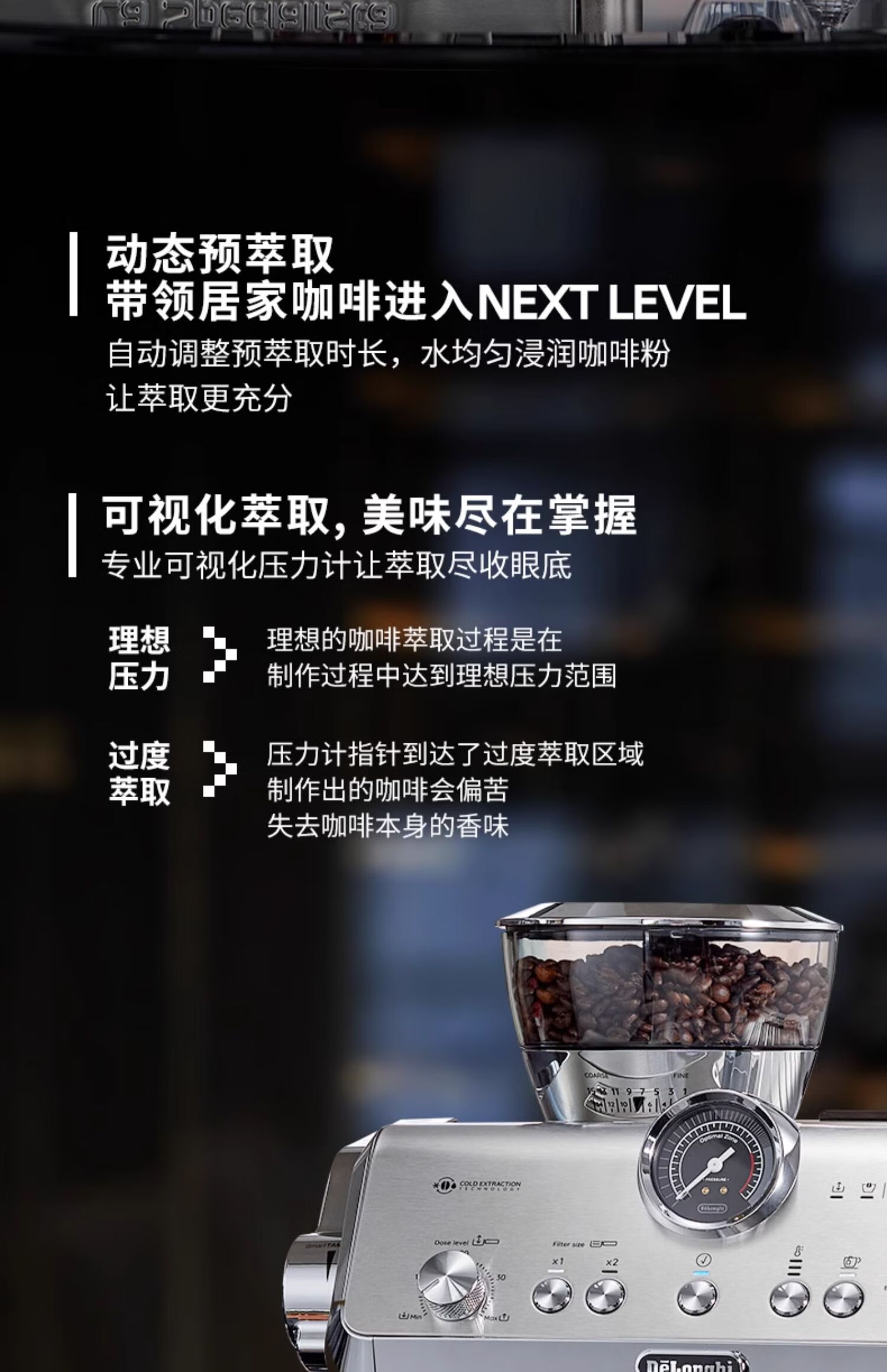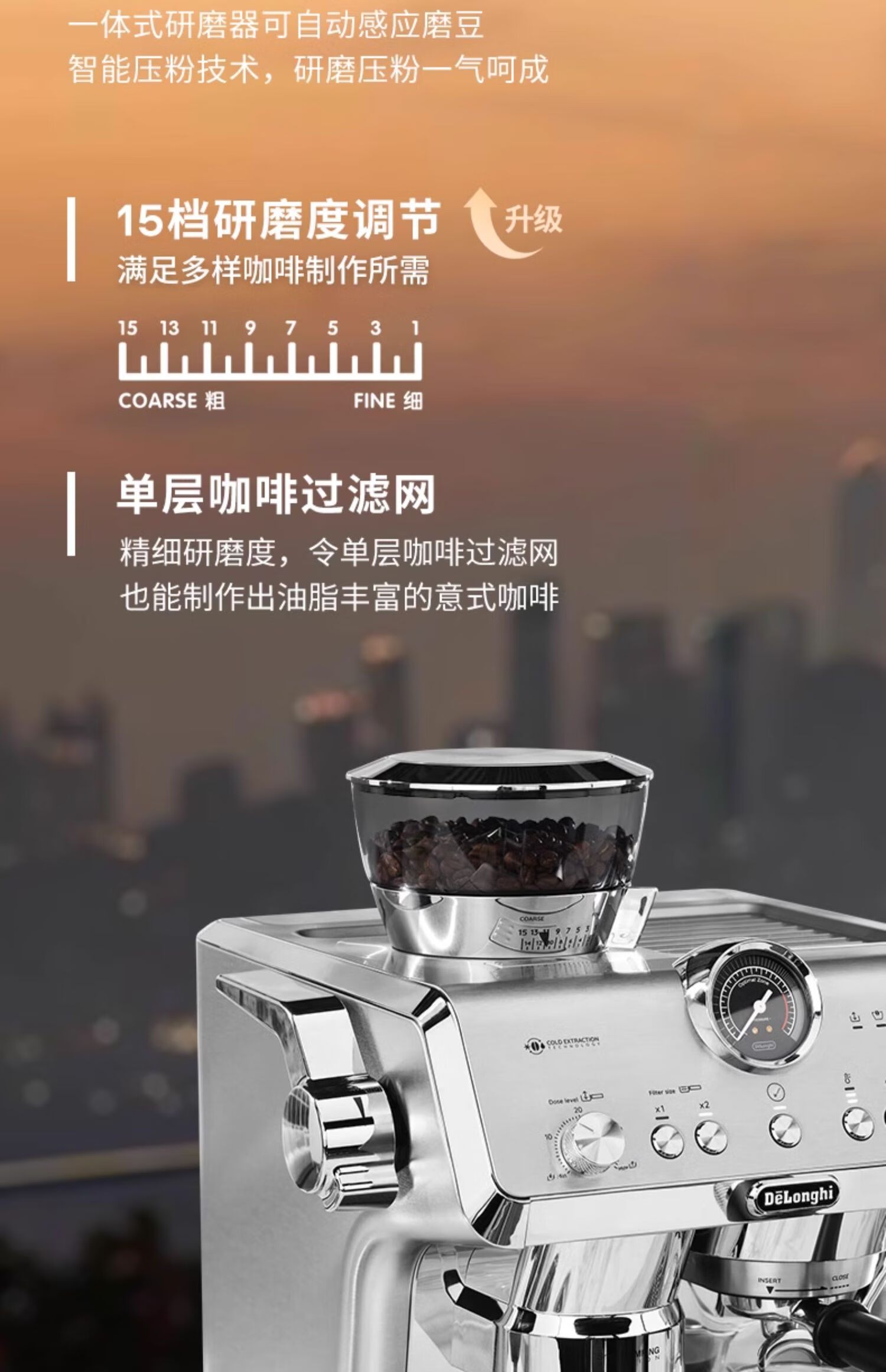 Delonghi EC9555.M semi-automatic coffee machine Italian home all-in-one induction grinding intelligent pressed powder milk foaming system EC9555.M silver cold extraction technology intelligent pressed powder