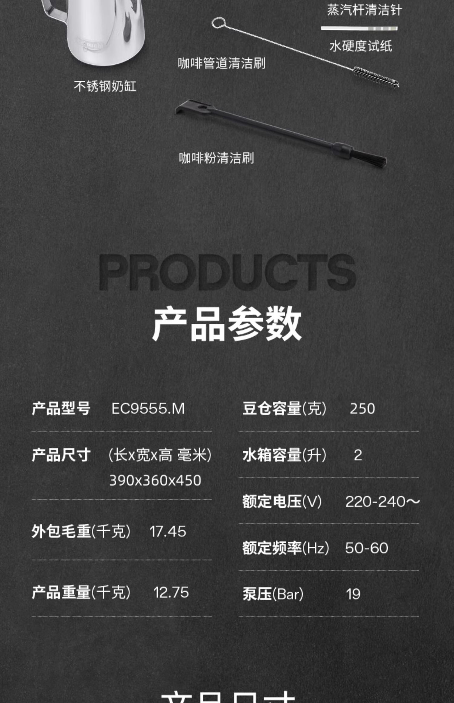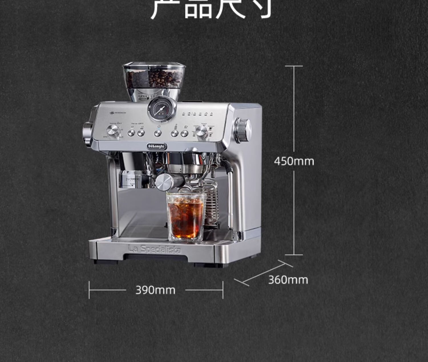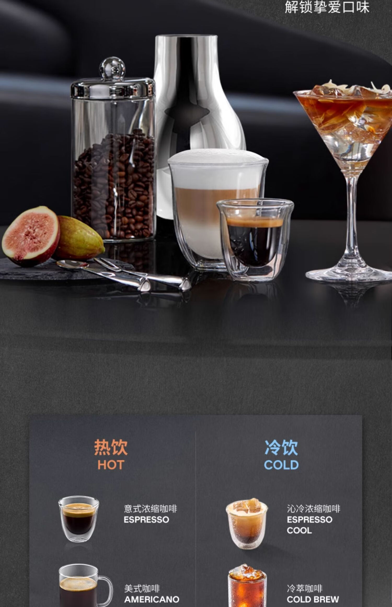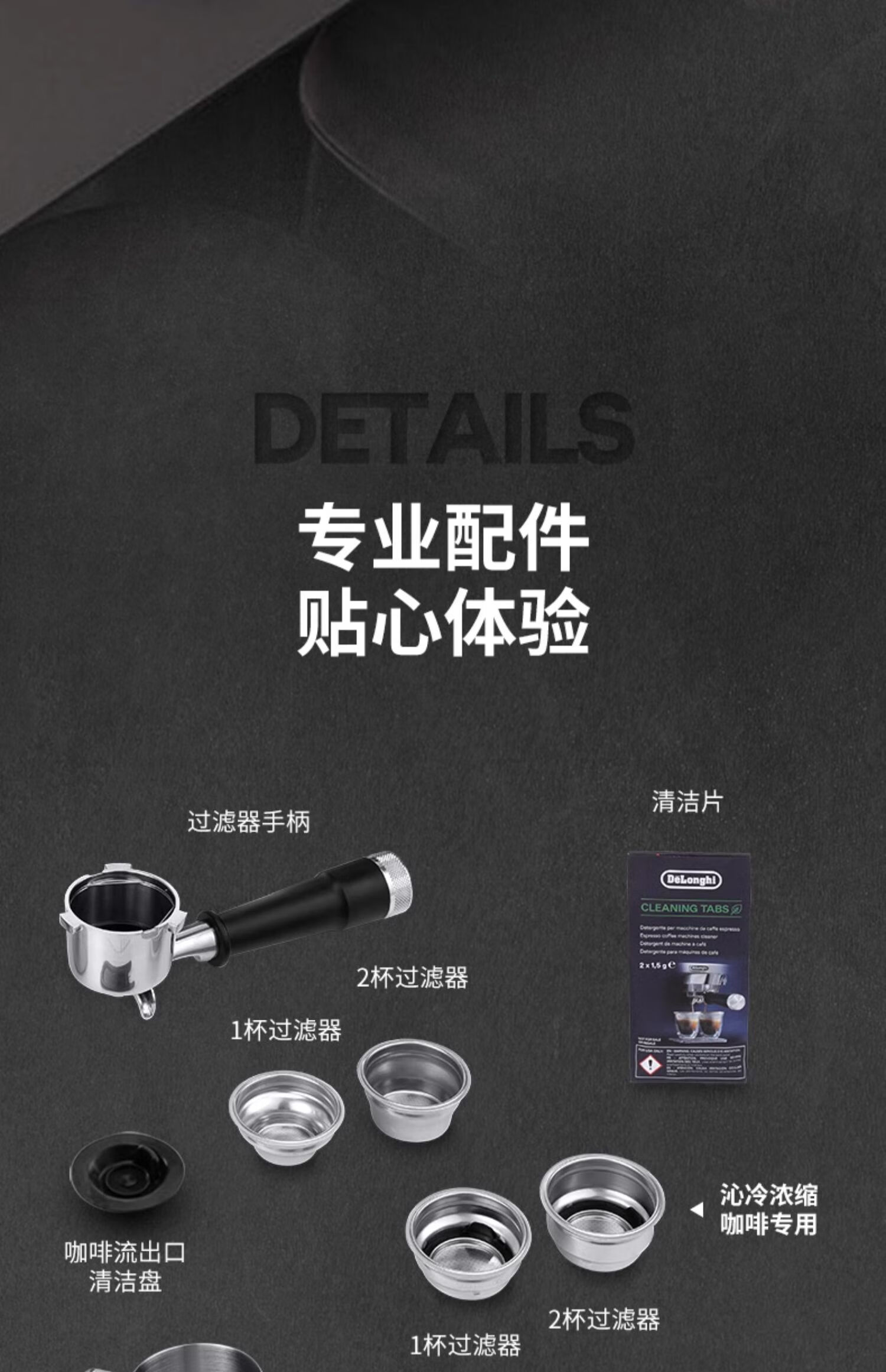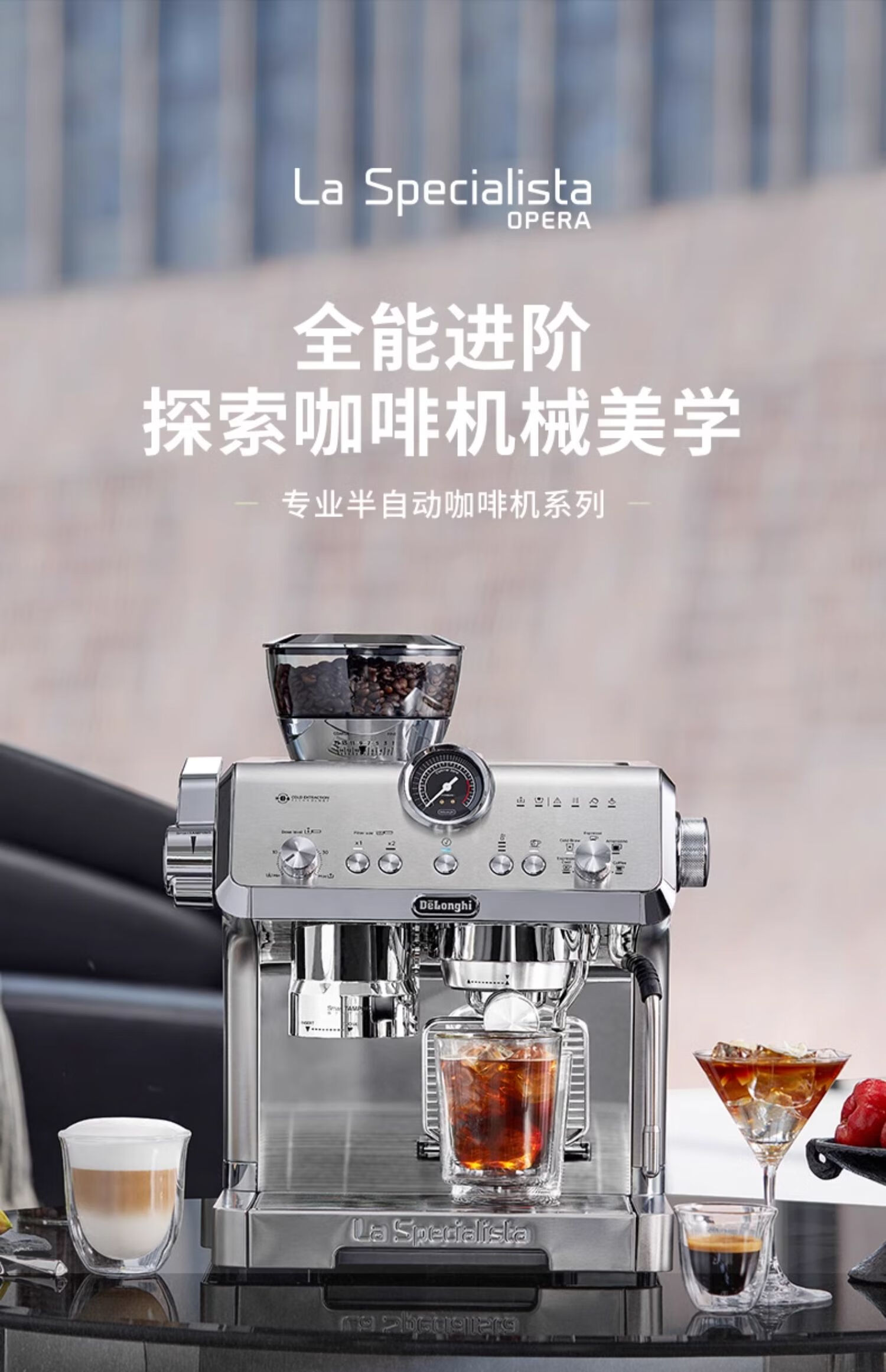 Delonghi EC9555.M semi-automatic coffee machine Italian home all-in-one induction grinding intelligent pressed powder milk foaming system EC9555.M silver cold extraction technology intelligent pressed powder