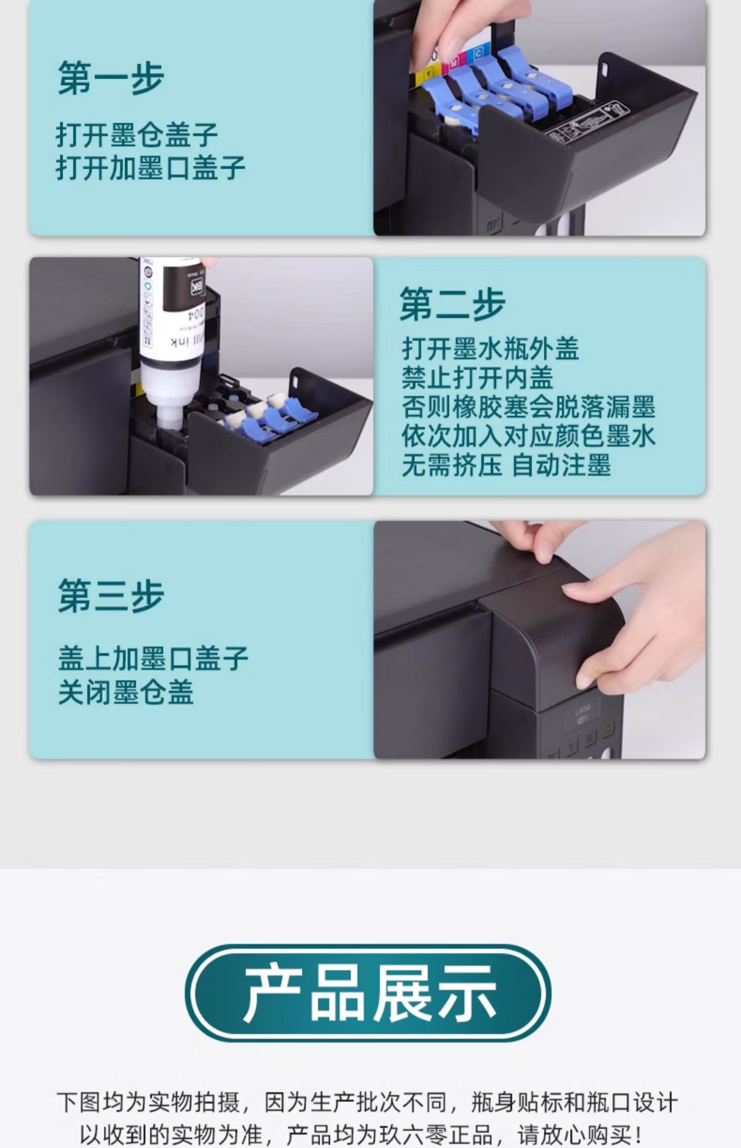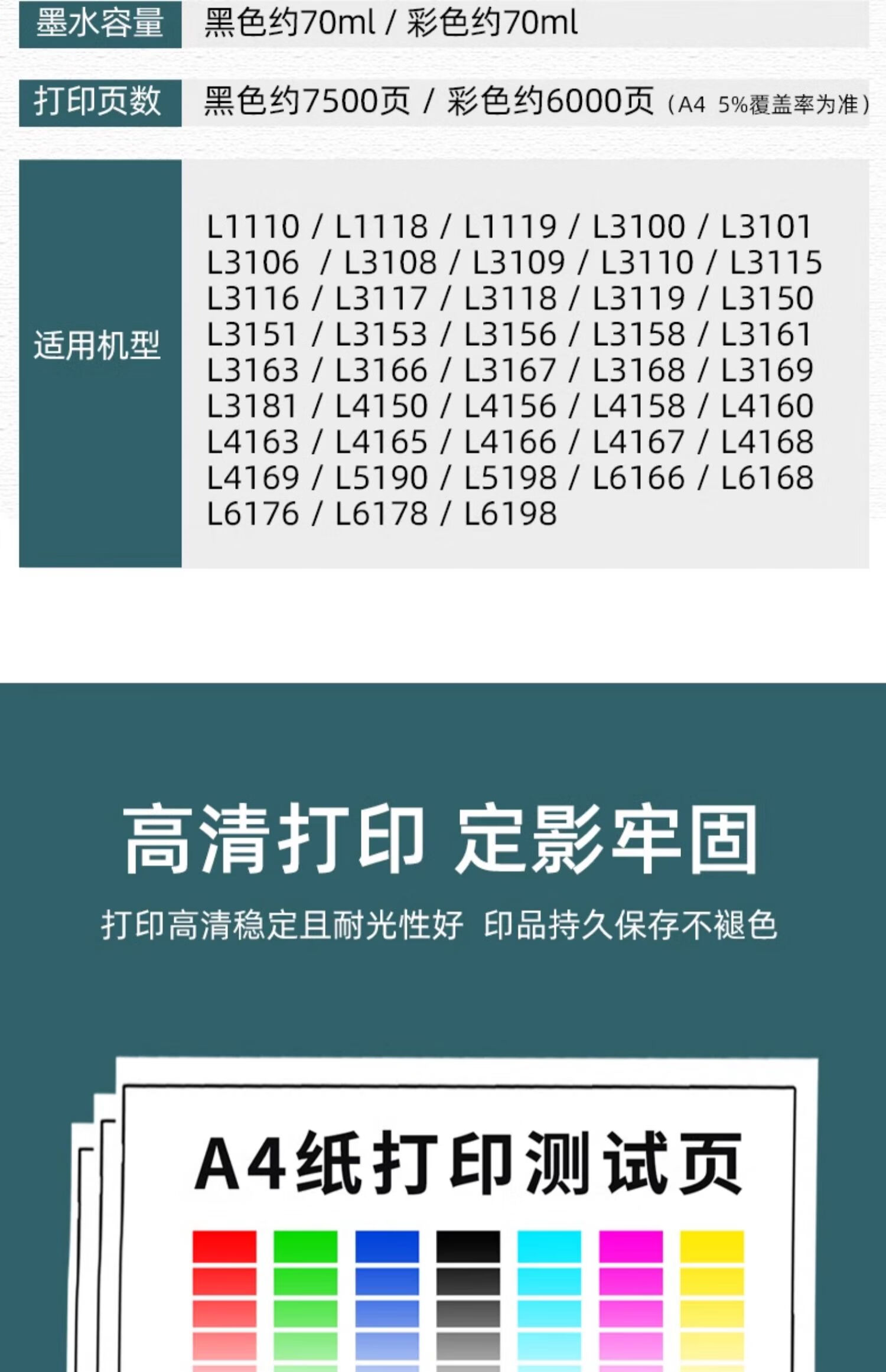 Suitable for Epson printer ink L4169L3110L6198L4156L4150L3150L4160L5198 70ml black ink