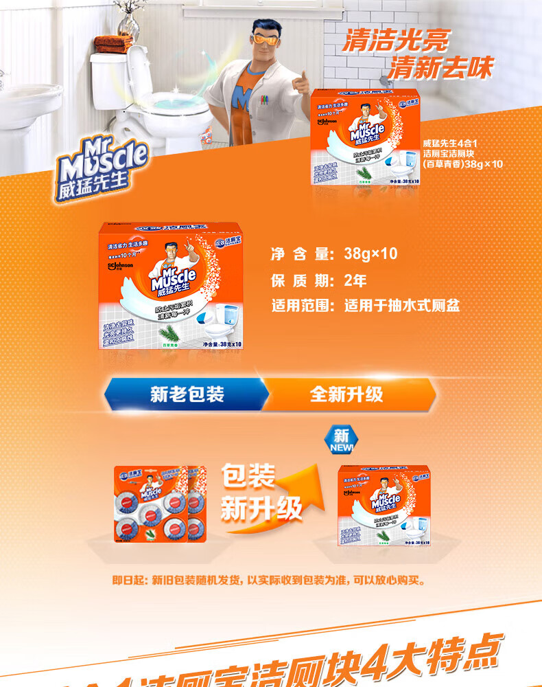 Mr. Wei Meng Cleaning Toilet 38g Blue Bubble Toilet Cleaning Block Toilet Cleaning Soft Toilet Cleaning and Removing Odors, Supermarket Similar Style [Baicao Fragrance] 38g*5