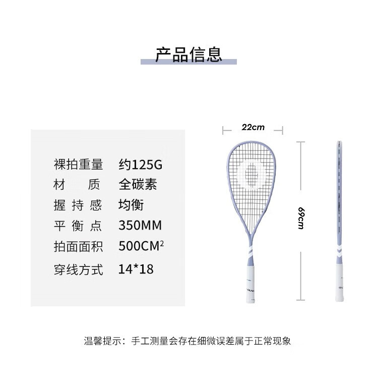 OLIVER LUNAR125 carbon fiber squash racket 125g ultra-light men's and women's beginner competition training racket blue and white get a big gift package with your order shipped by SF Express
