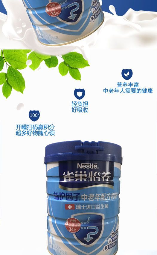 Nestlé Yinuo Factor lait maternisé en poudre pour personnes d'âge moyen et âgées, formule riche en calcium, réduction des graisses, aliments à faible IG, 675 g riche en protéines * 1 boîte