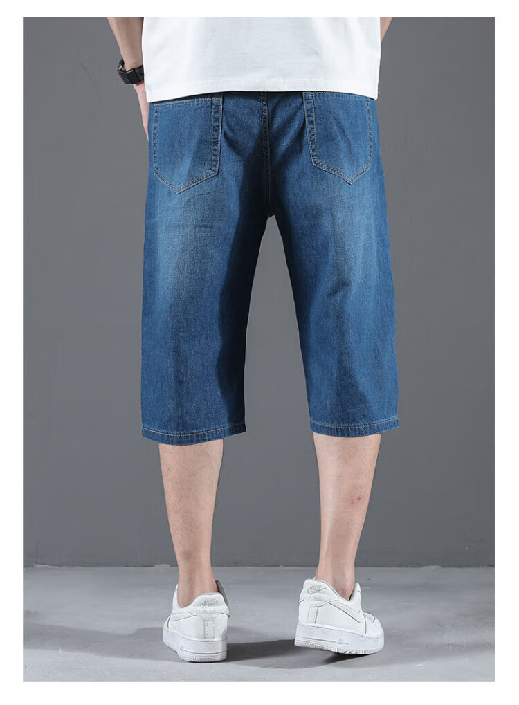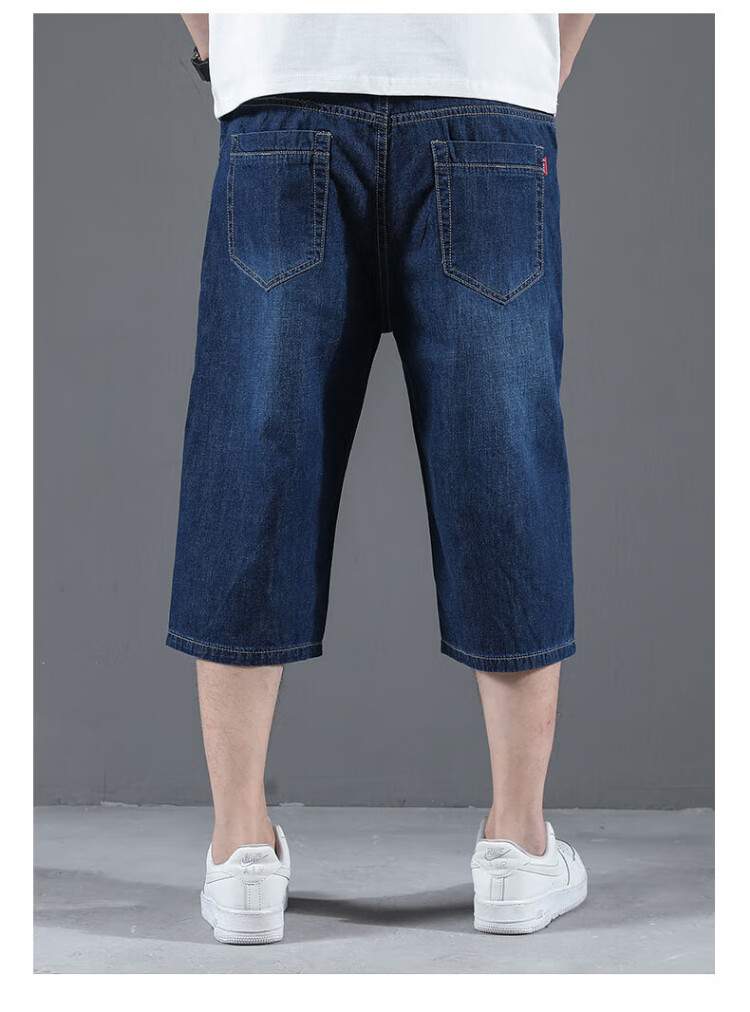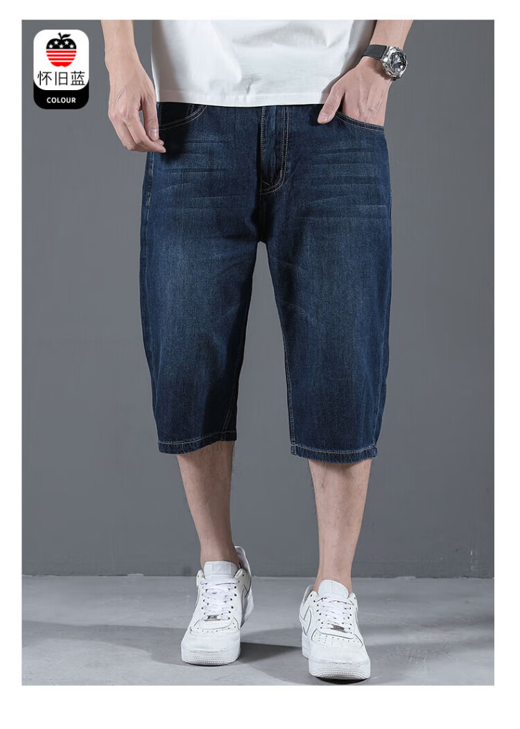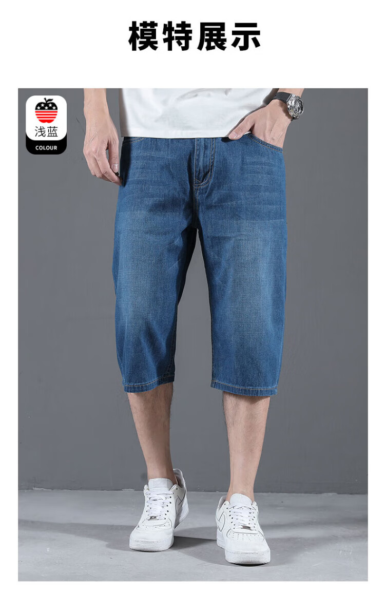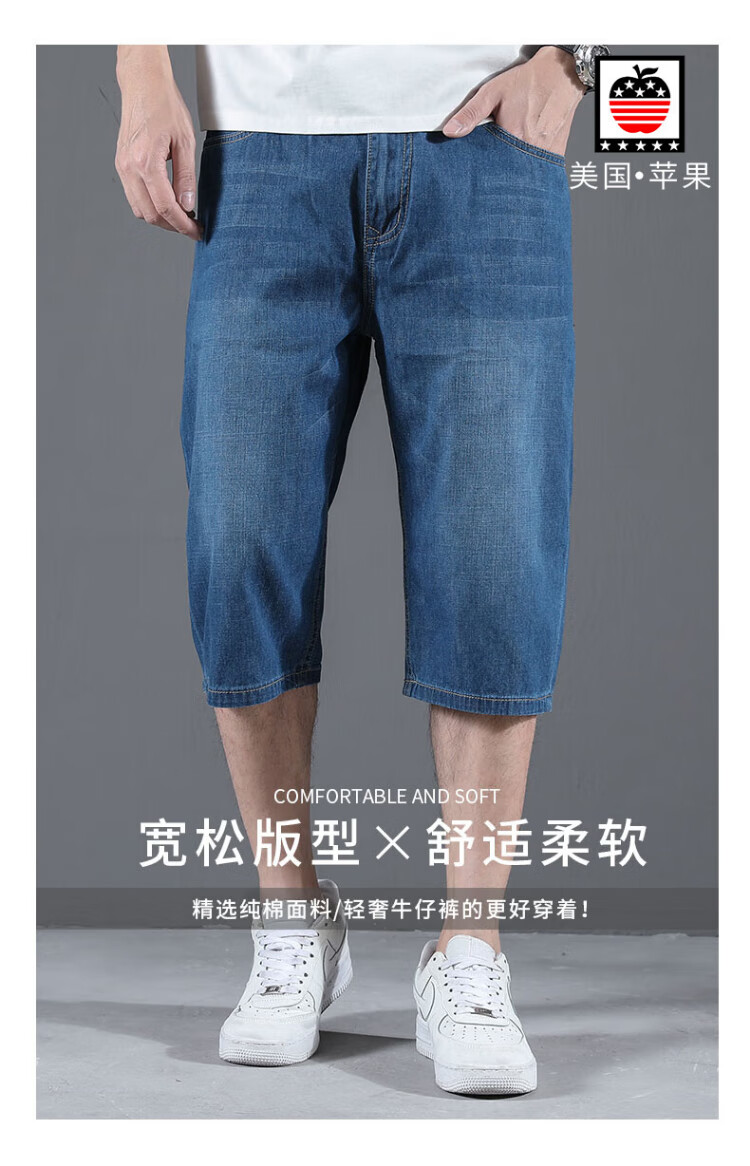 AEMAPE Apple pure cotton three-quarter jeans men's summer thin shorts middle-aged loose wide-legged 7-six-cent fat people plus size 1391# light blue 34 (2 feet 7)