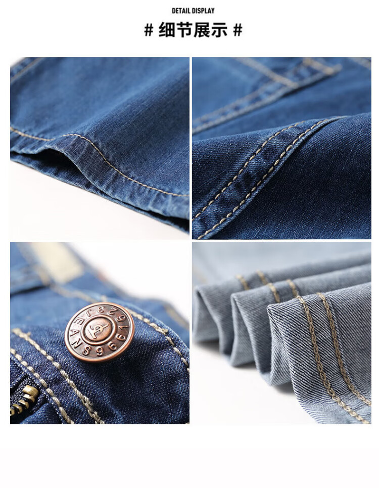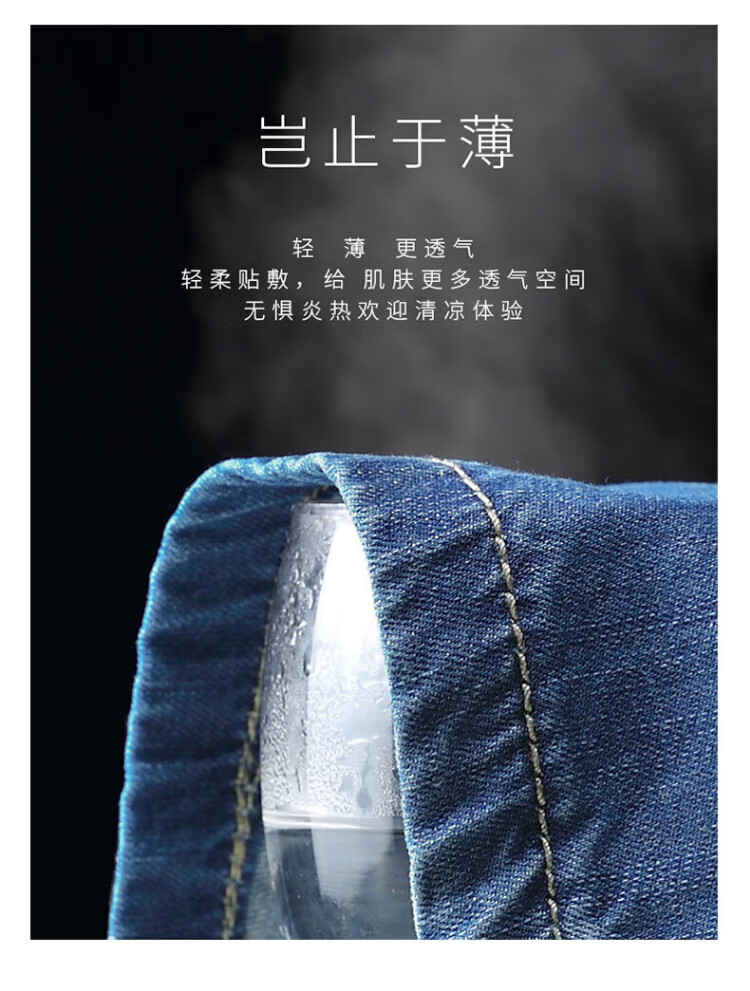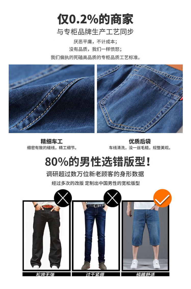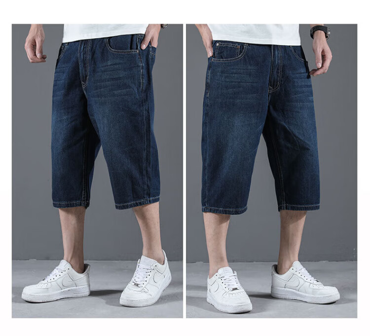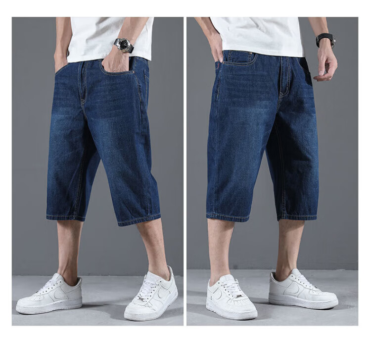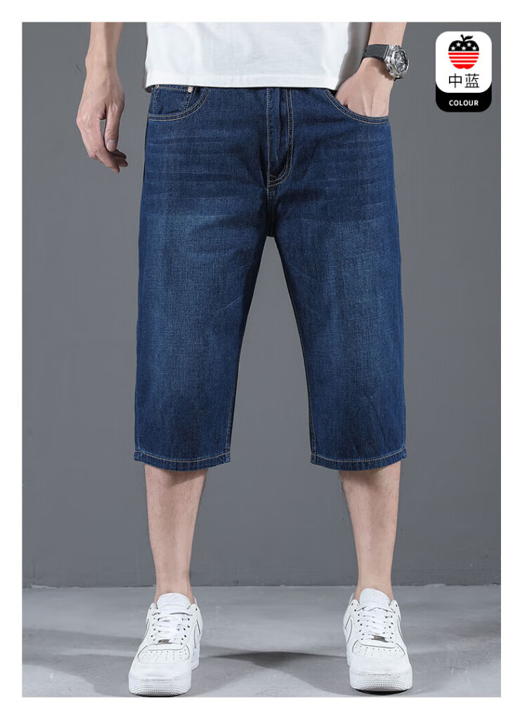 AEMAPE Apple pure cotton three-quarter jeans men's summer thin shorts middle-aged loose wide-legged 7-six-cent fat people plus size 1391# light blue 34 (2 feet 7)