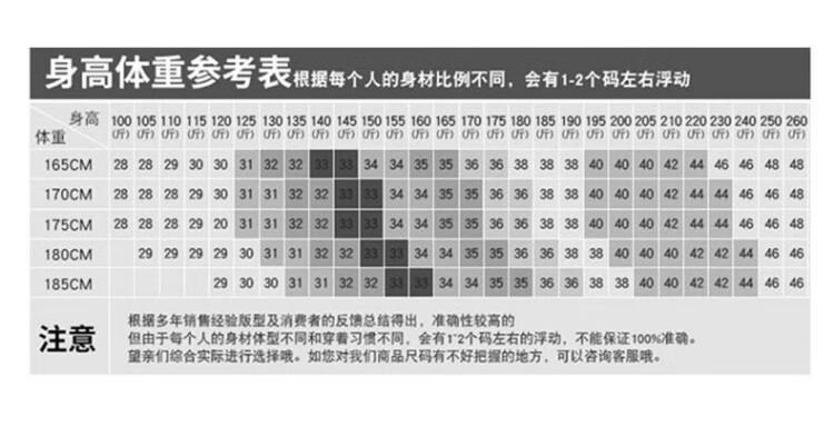 China (cm) 160-165/84-86 165-170 / 88-90 167-172 / 92-96 168-173 / 98-102 170-176 / 106-110