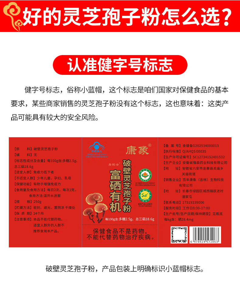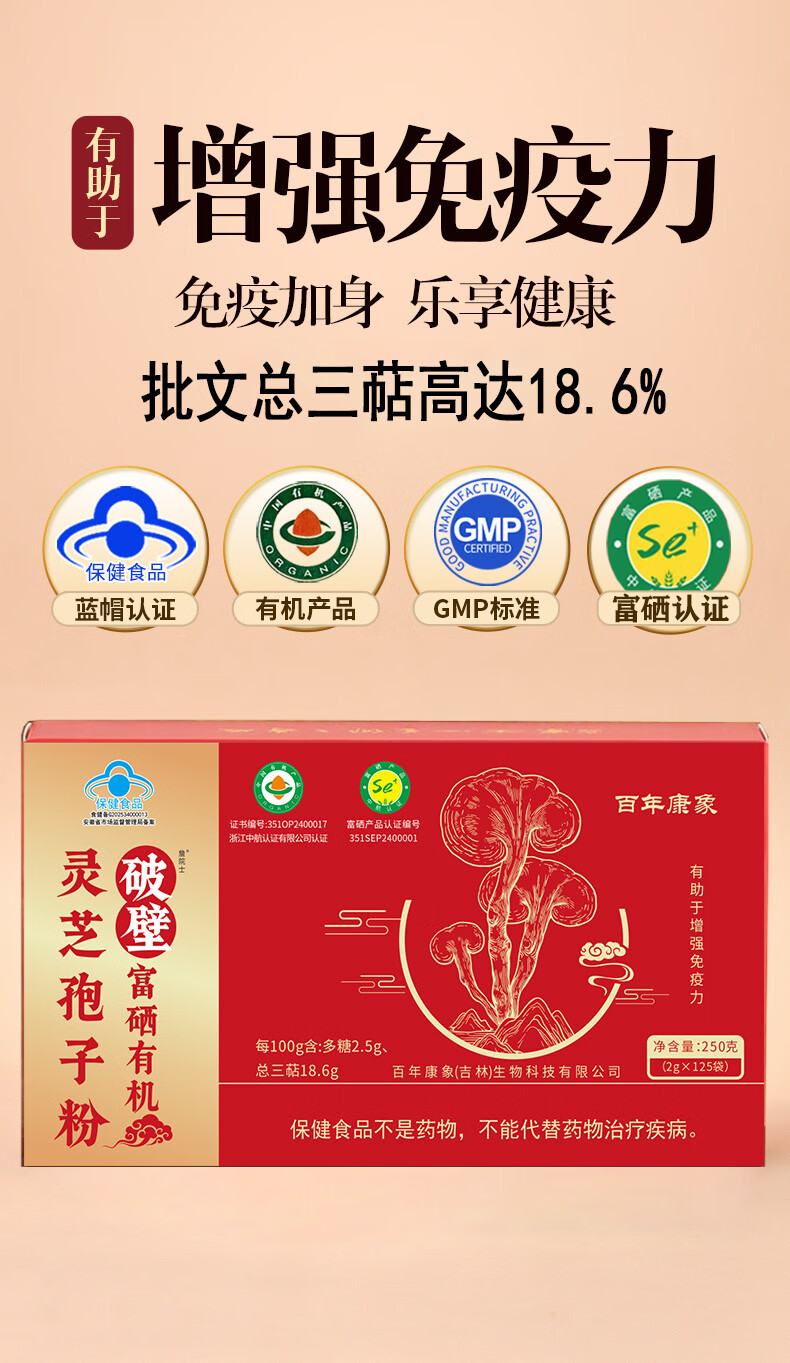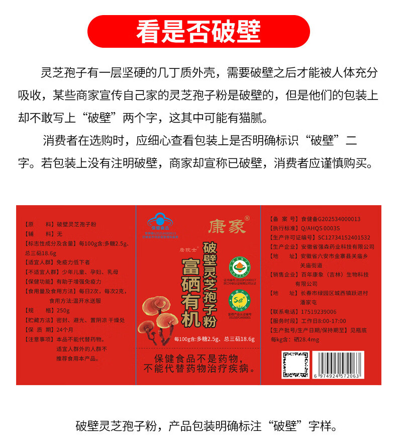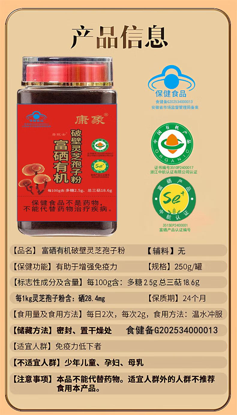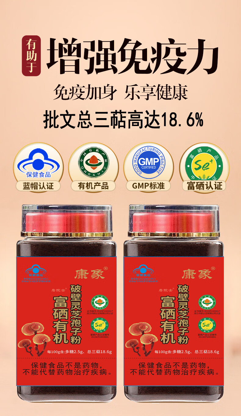 Kangxiang Blue Hat Selenium-Rich Organic Certified Broken Ganoderma Spore Powder Linzhi Paozi Powder Tonic Anhui Jinzhai 500g Approved Total Triterpenes 18.6%