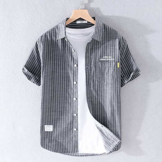 OLOEY 100 % Baumwolle, Sommer-Herrenhemd, lässig, gestreift, hübsches, trendiges Herrenhemd, offene Knopfleiste, trendige Jugend, dünner quadratischer Kragen, 9721, Weiß, M