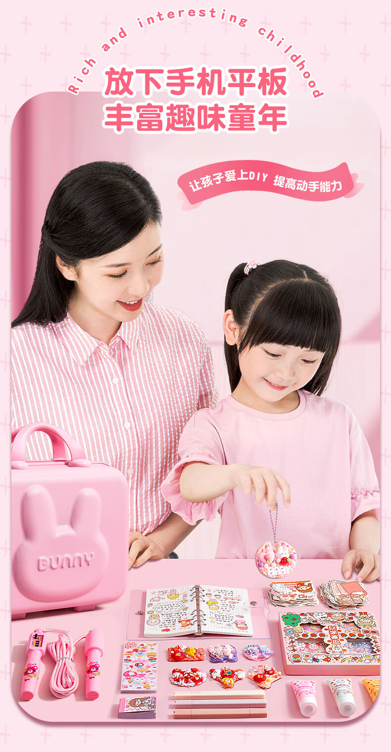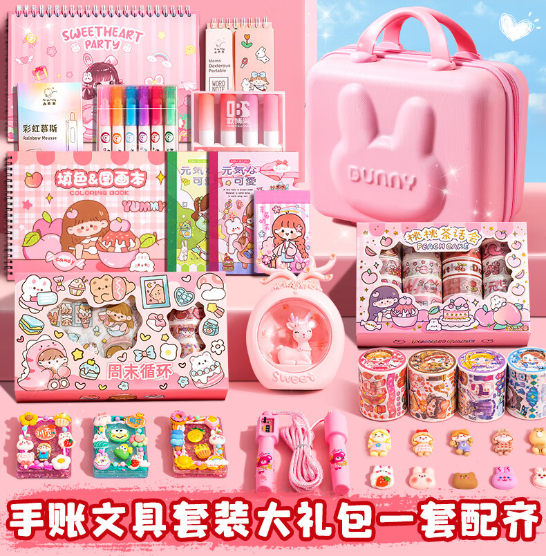 Handbook set gift box, cute and good-looking handbook, girl toy, cream gum card set, deluxe edition stickers, primary school student tools and materials, girl’s birthday, 61 Children’s Day gift, handbook set + Goo card set + quiet book, 1283 pieces of rabbit password box