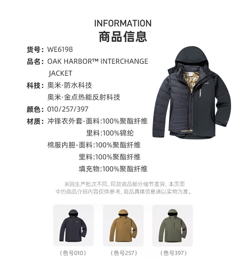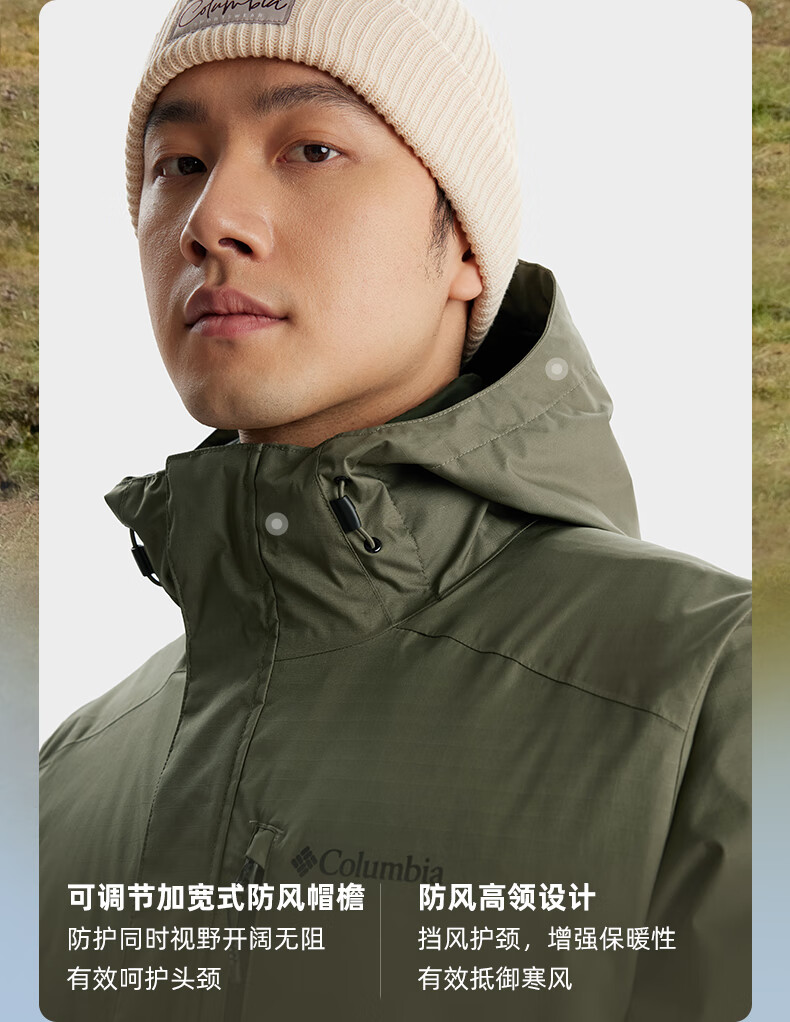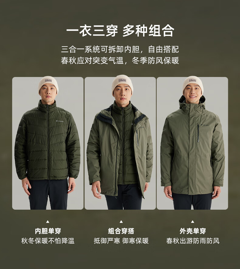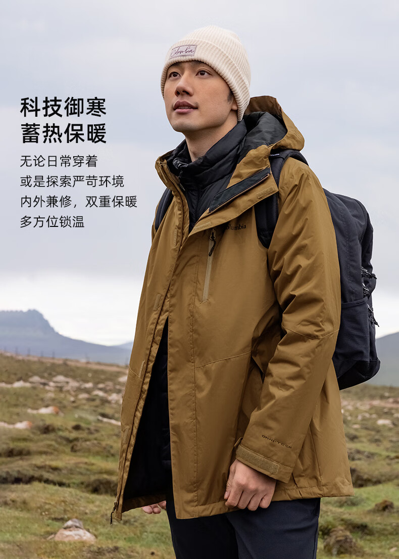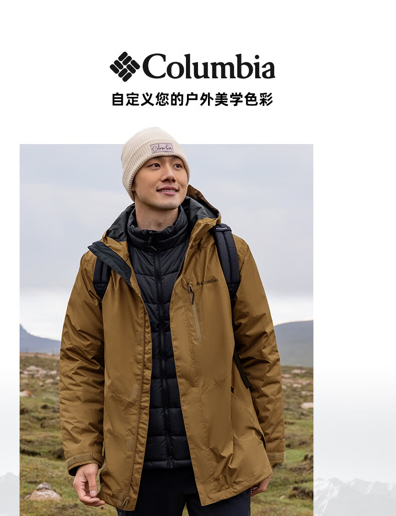 Колумбия Колумбийская мужская термо-водонепроницаемая куртка три в одном с золотистым краем куртка на хлопковой подкладке WE6198 010 XL (185/104A)