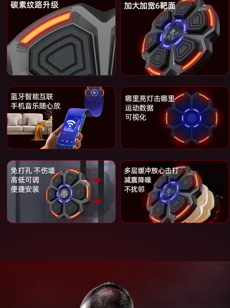 Mdikawe Musical Boxing Machine Wall Target Response Children's Day Training Equipment Shu 6-12 Years Old Boy Birthday Gift Bole Six Target White With Adult/Children's Gloves