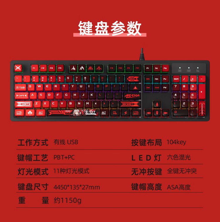 Daryou EK829 Misia wired two-dimensional custom theme mechanical keyboard game computer notebook universal Misia-104 key wired version red axis