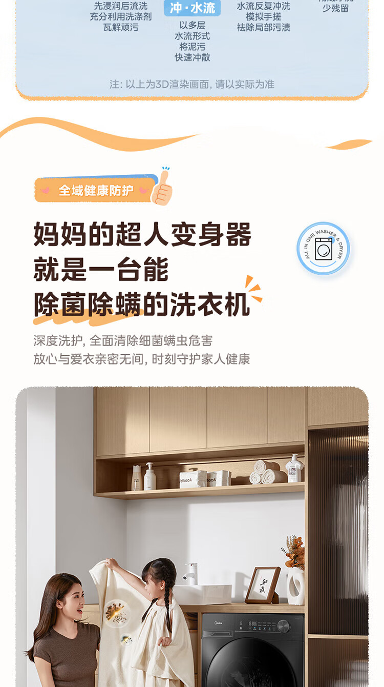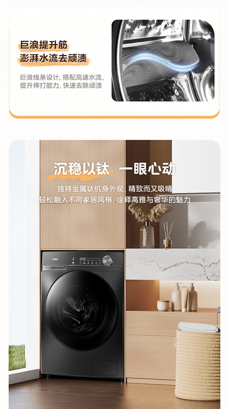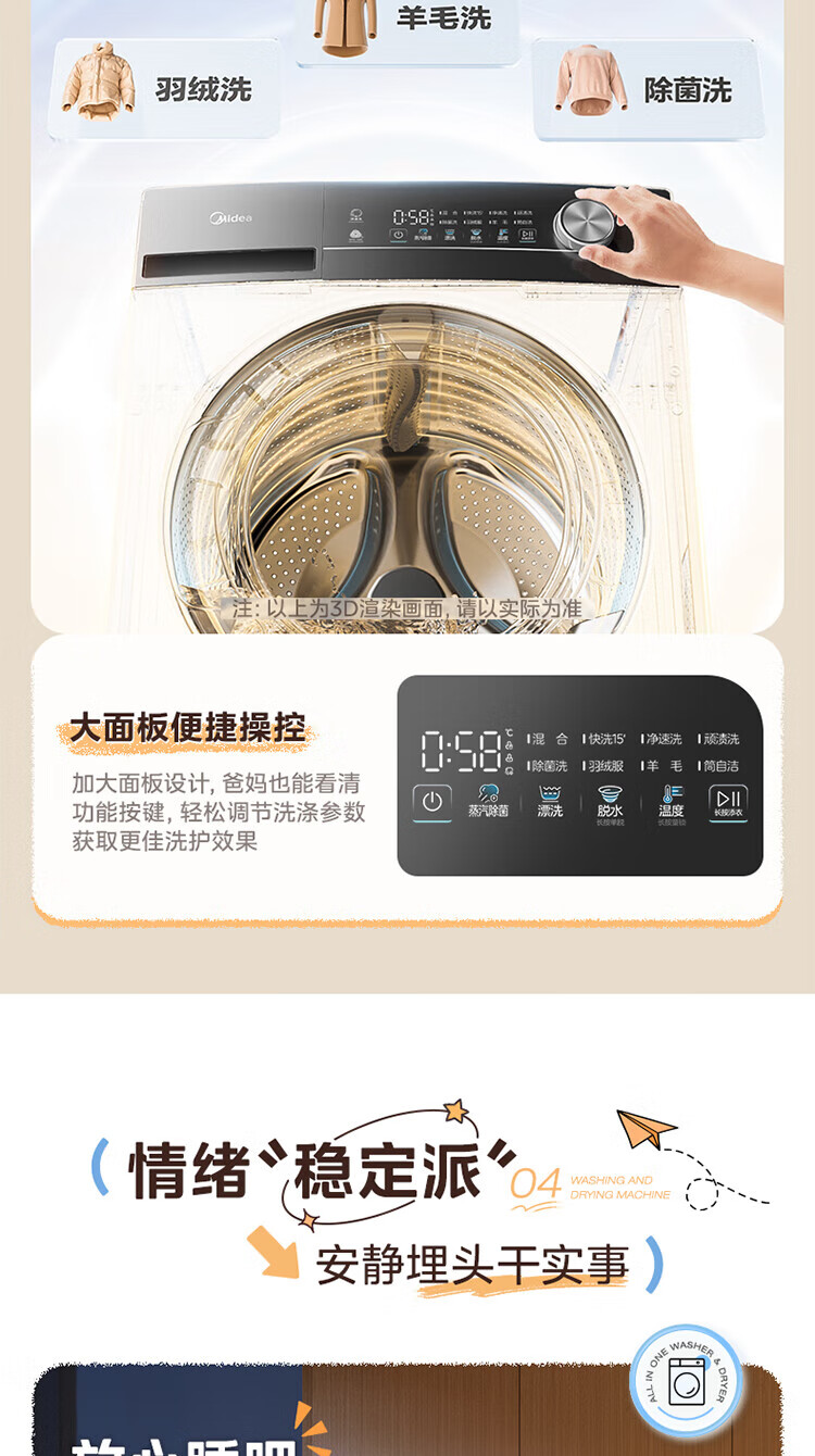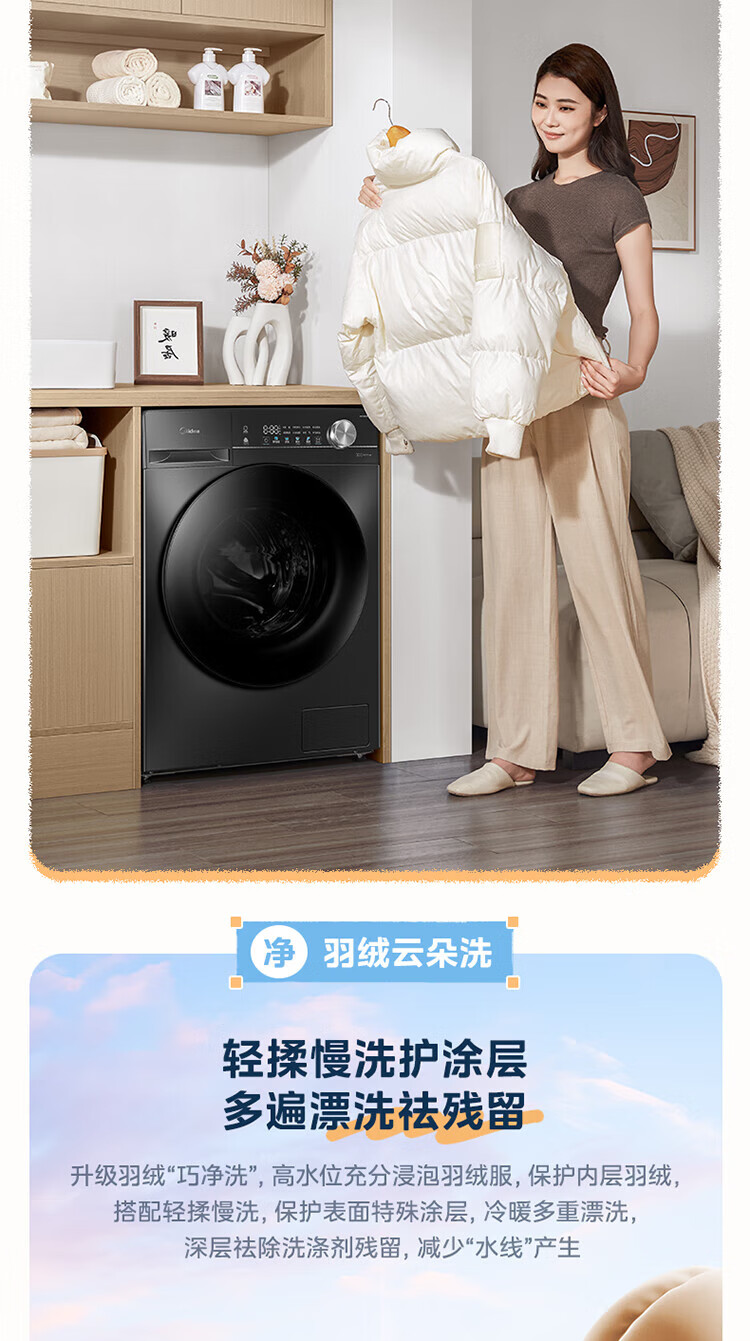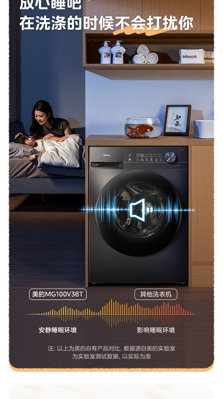 Midea 10kg drum washing machine fully automatic sterilization and mite removal 1.1 cleaning ratio variable frequency motor drum self-cleaning MD120V36T 12kg washing and drying integrated delivery to home | free installation