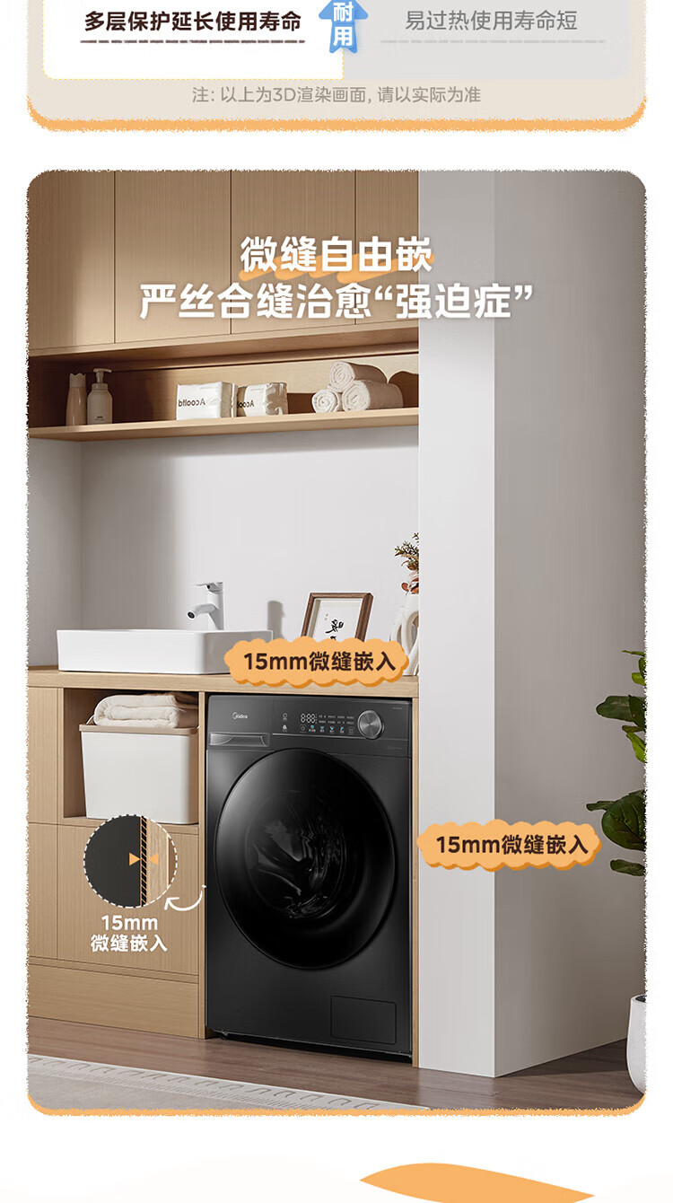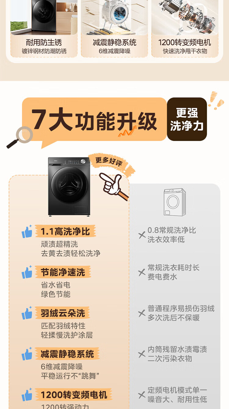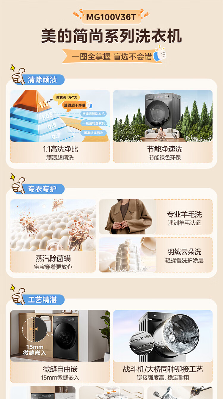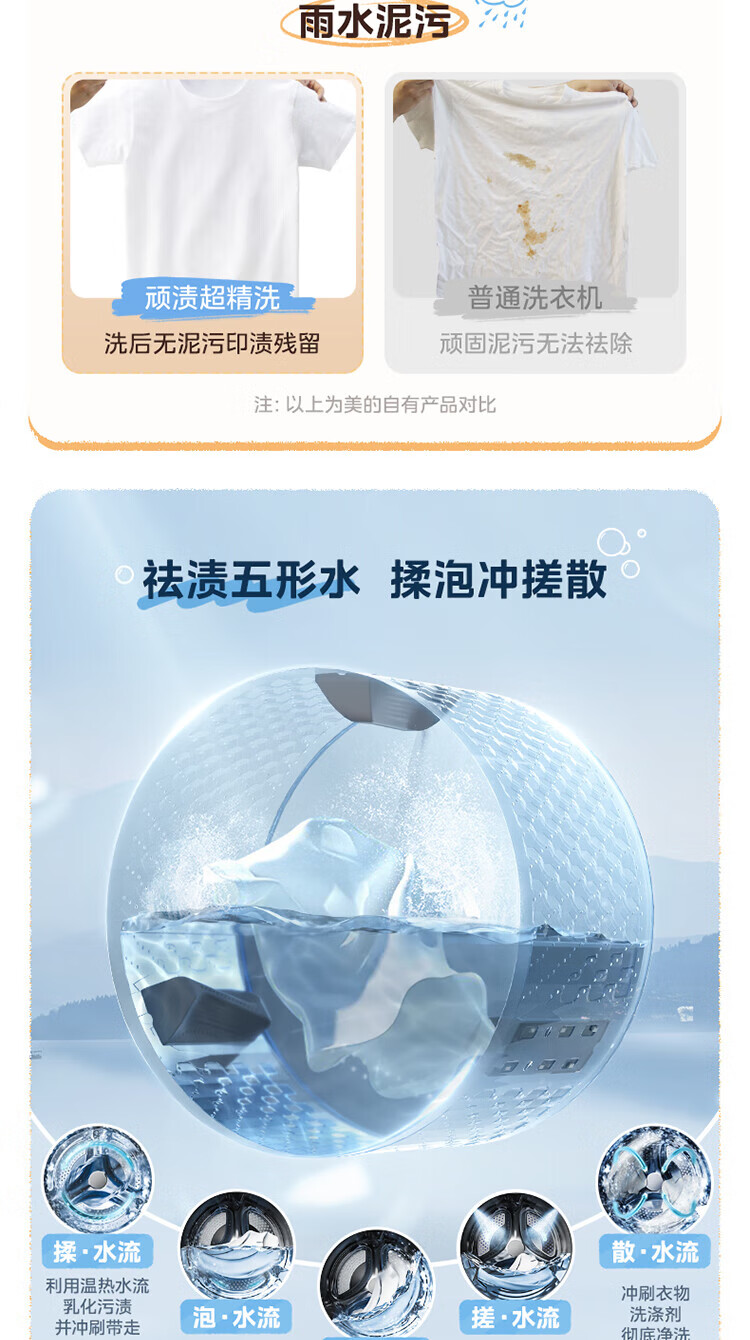 Midea 10kg drum washing machine fully automatic sterilization and mite removal 1.1 cleaning ratio variable frequency motor drum self-cleaning MD120V36T 12kg washing and drying integrated delivery to home | free installation