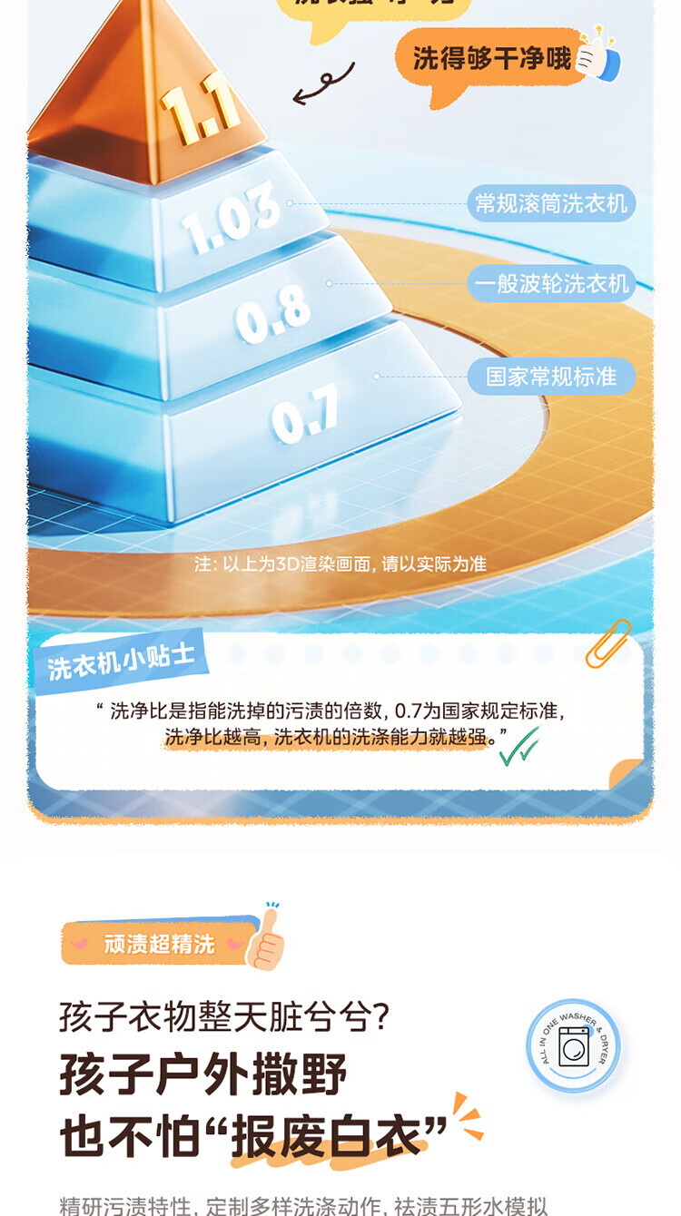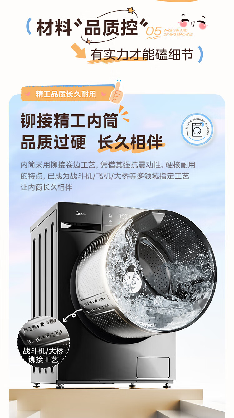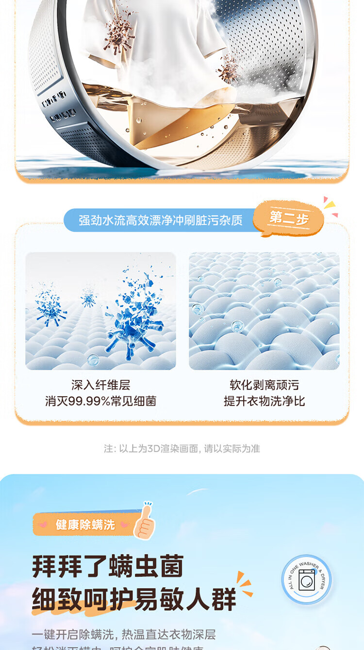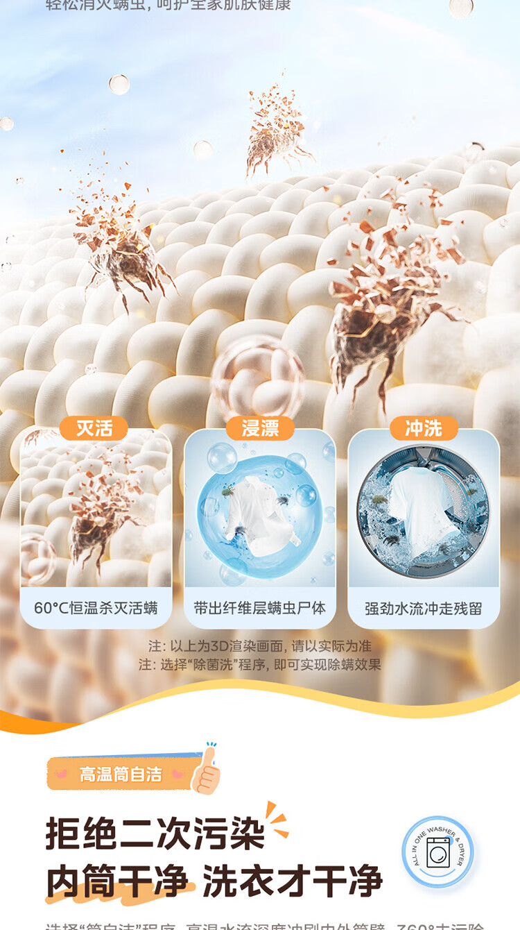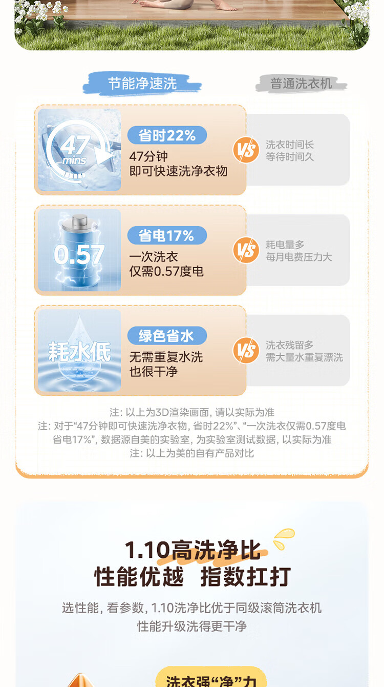 Midea 10kg drum washing machine fully automatic sterilization and mite removal 1.1 cleaning ratio variable frequency motor drum self-cleaning MD120V36T 12kg washing and drying integrated delivery to home | free installation