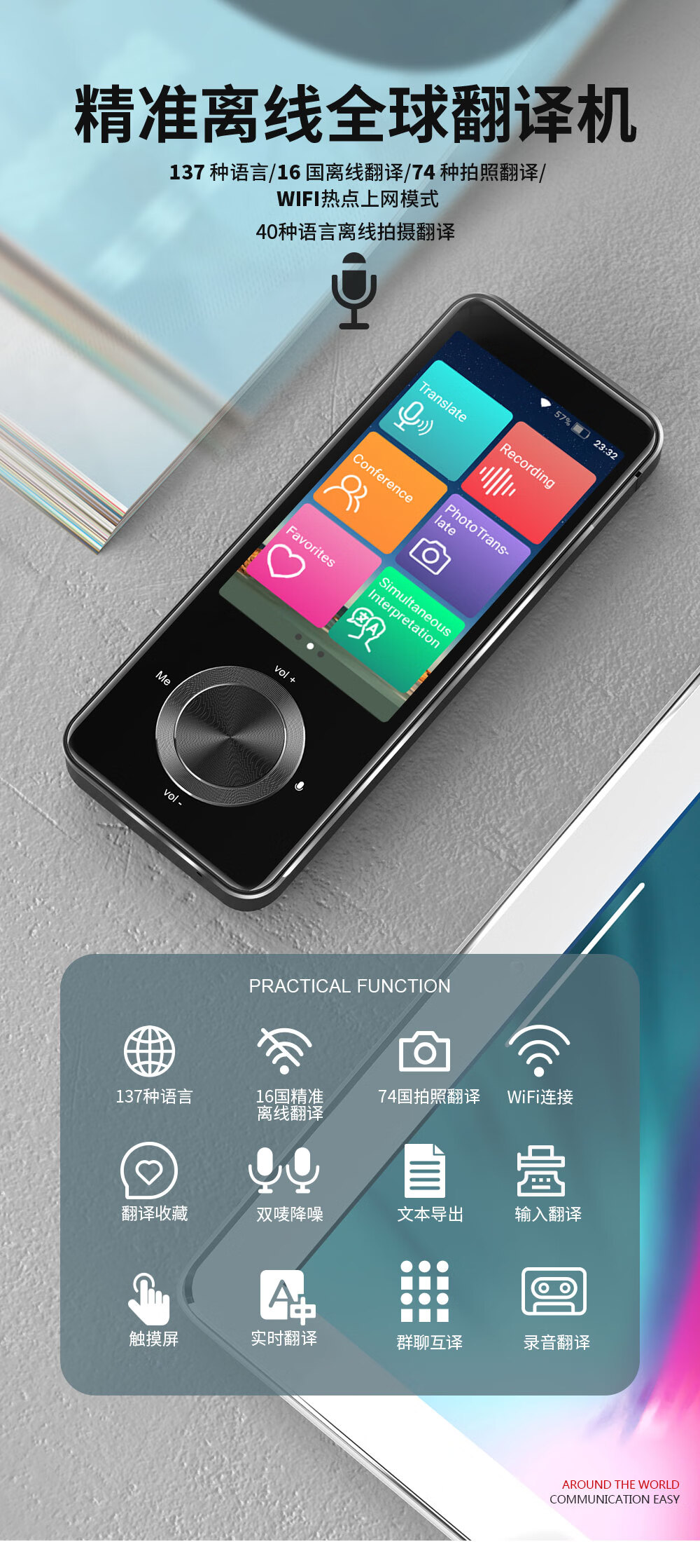 AZMZ British brand offline translator 137 languages ​​online real-time translator travel abroad with business simultaneous interpretation photo translation flagship black 137 languages ​​+ offline translation