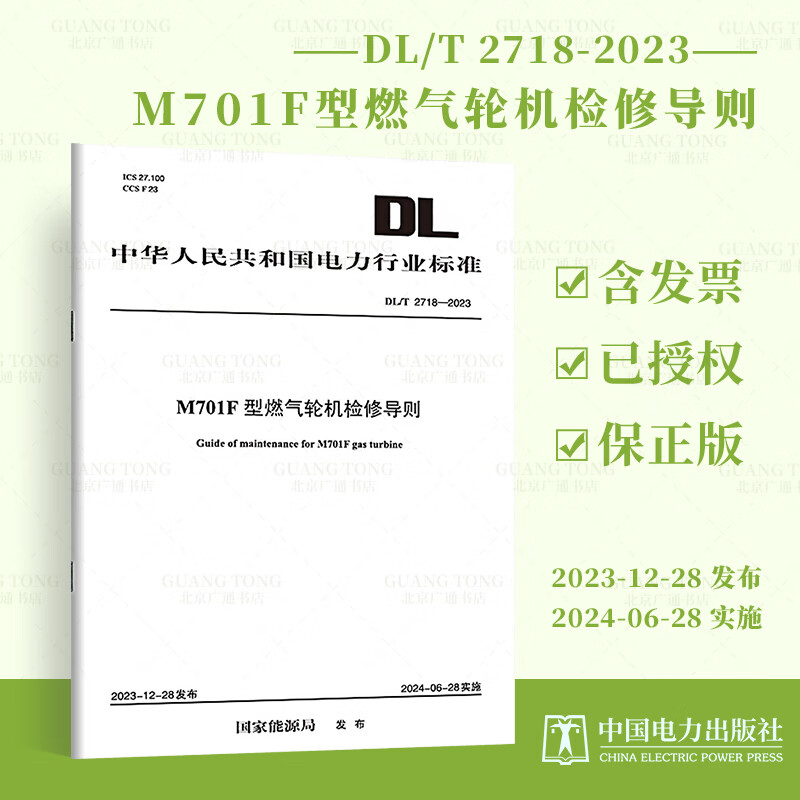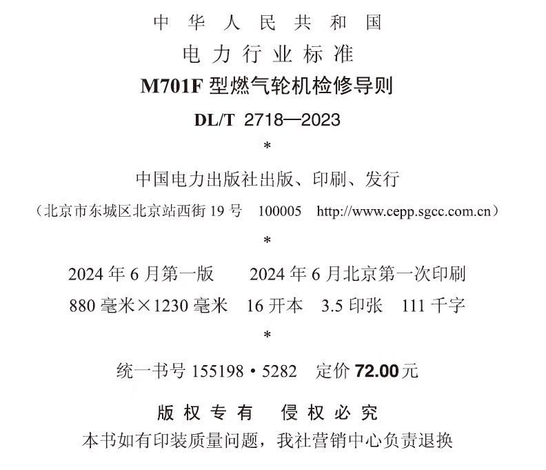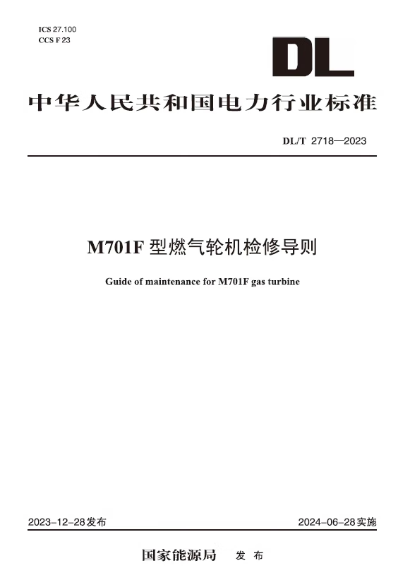 Print on demand DL/T 2718-2023 M701F gas turbine maintenance guide