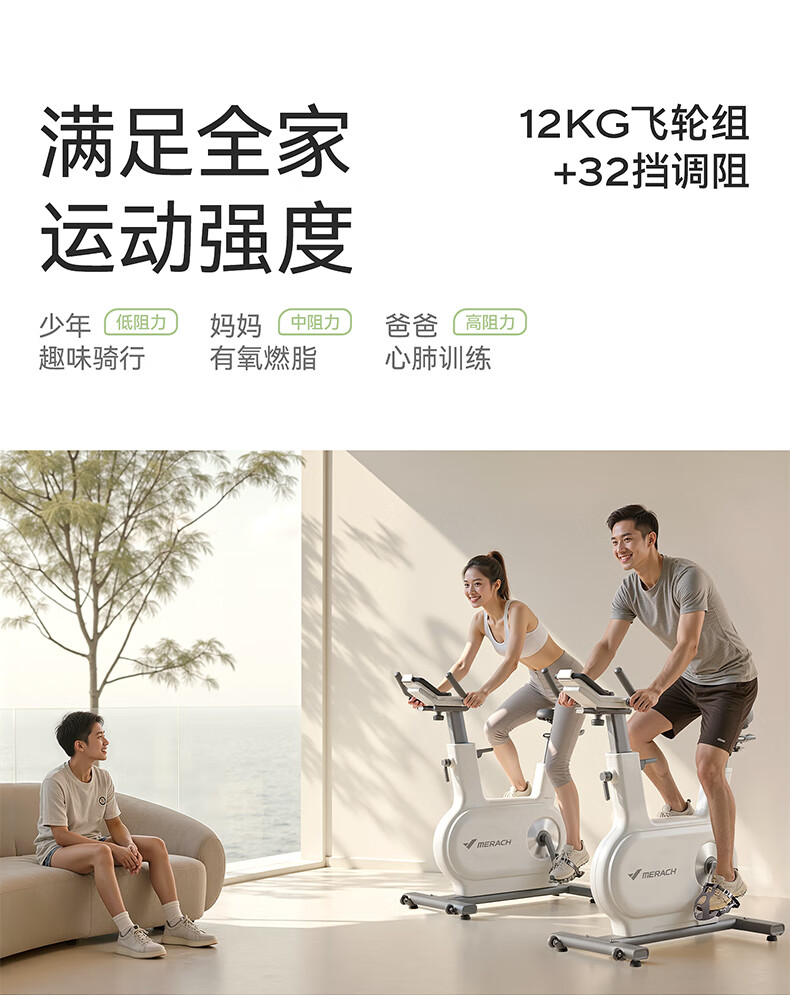 Merach (MERACH) spinning bicycle home smart resistance-adjustable self-generating fitness equipment indoor silent bicycle Jueying ONE 2nd generation 2nd generation self-generating - 10KG flywheel set - airbag seat cushion