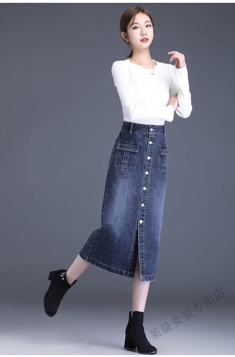 Woodpecker (TUCANO) denim skirt 2025 spring and autumn new style small high waist slit slim pear-shaped hip skirt straight skirt 698# dark blue L