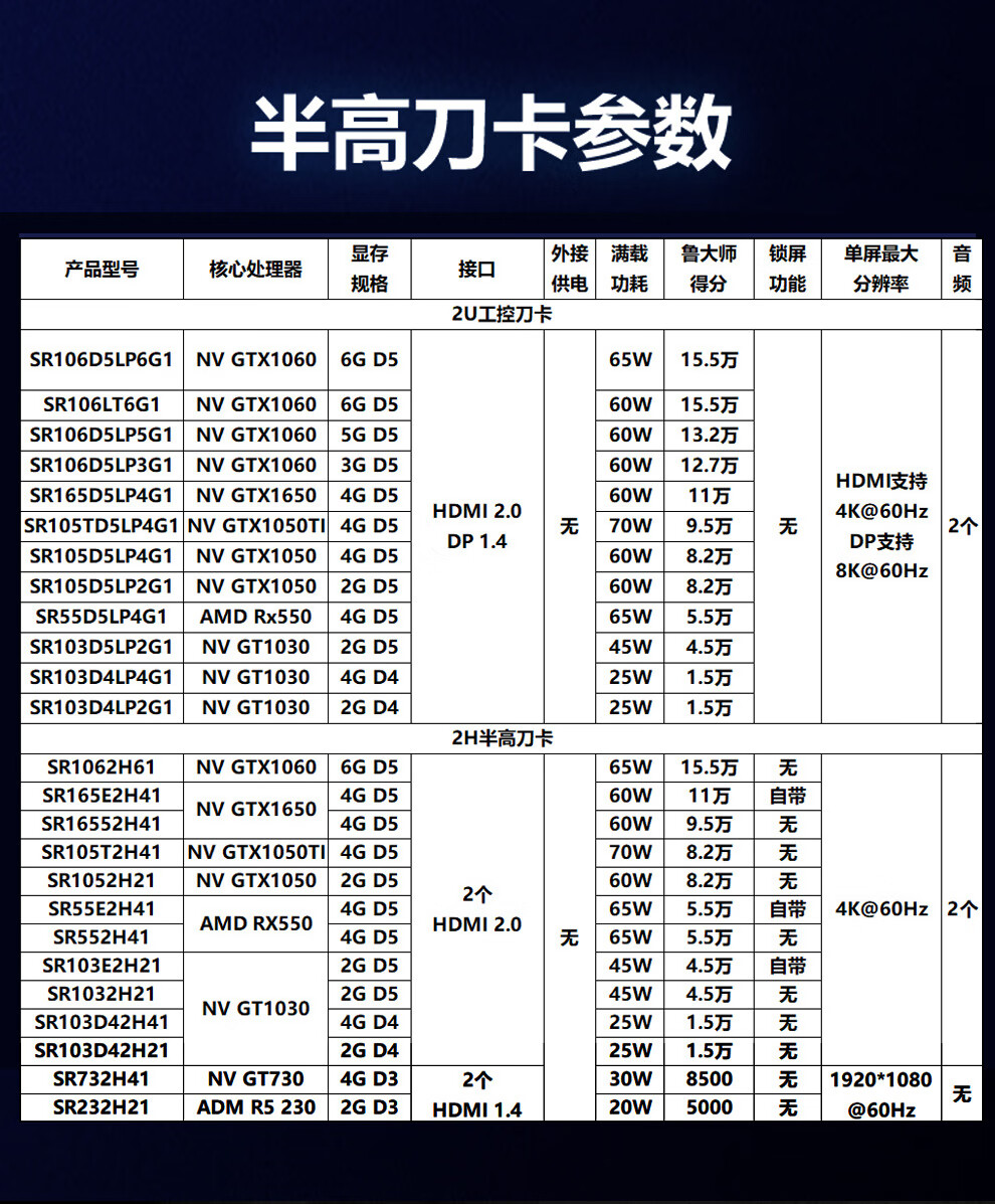 Songrui knife card DP+HDMI interface GTX1650/1060/1050Ti/GT1030/RX550 half-height graphics card server industrial control OPS mini host small chassis single slot office GTX1050 2G multi-screen office knife card DP+HDMI