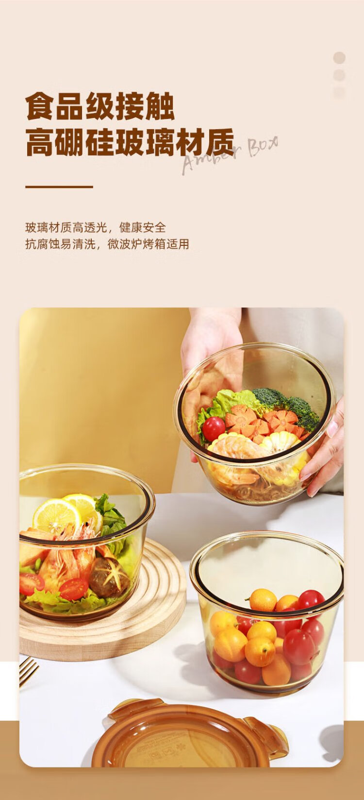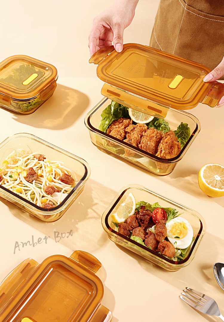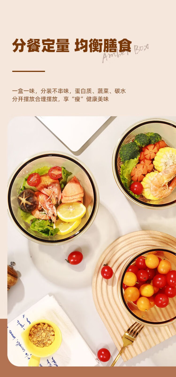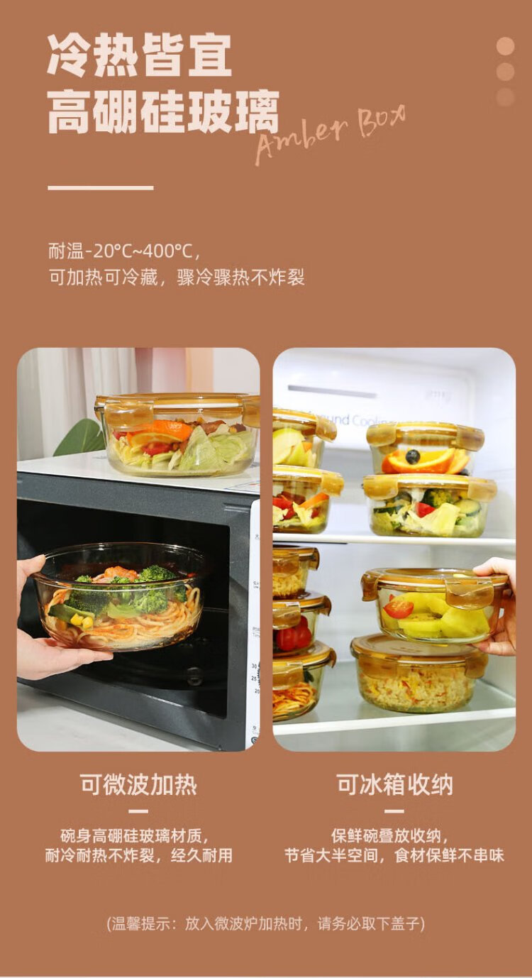 Chuangde heat-resistant glass lunch box office workers microwave lunch box crisper storage bowl lunch box compartment lunch box amber round 1050mL