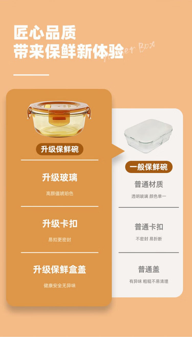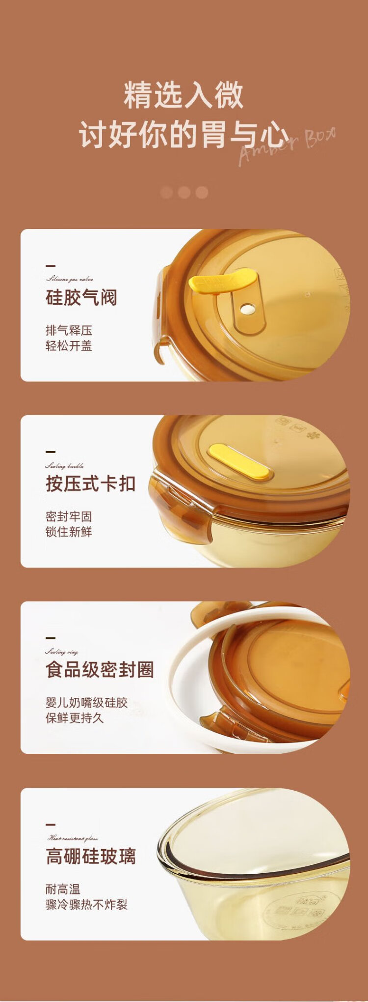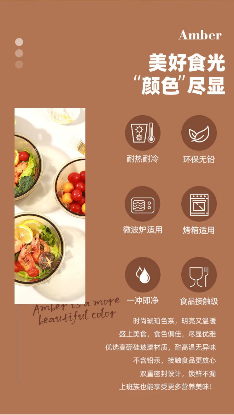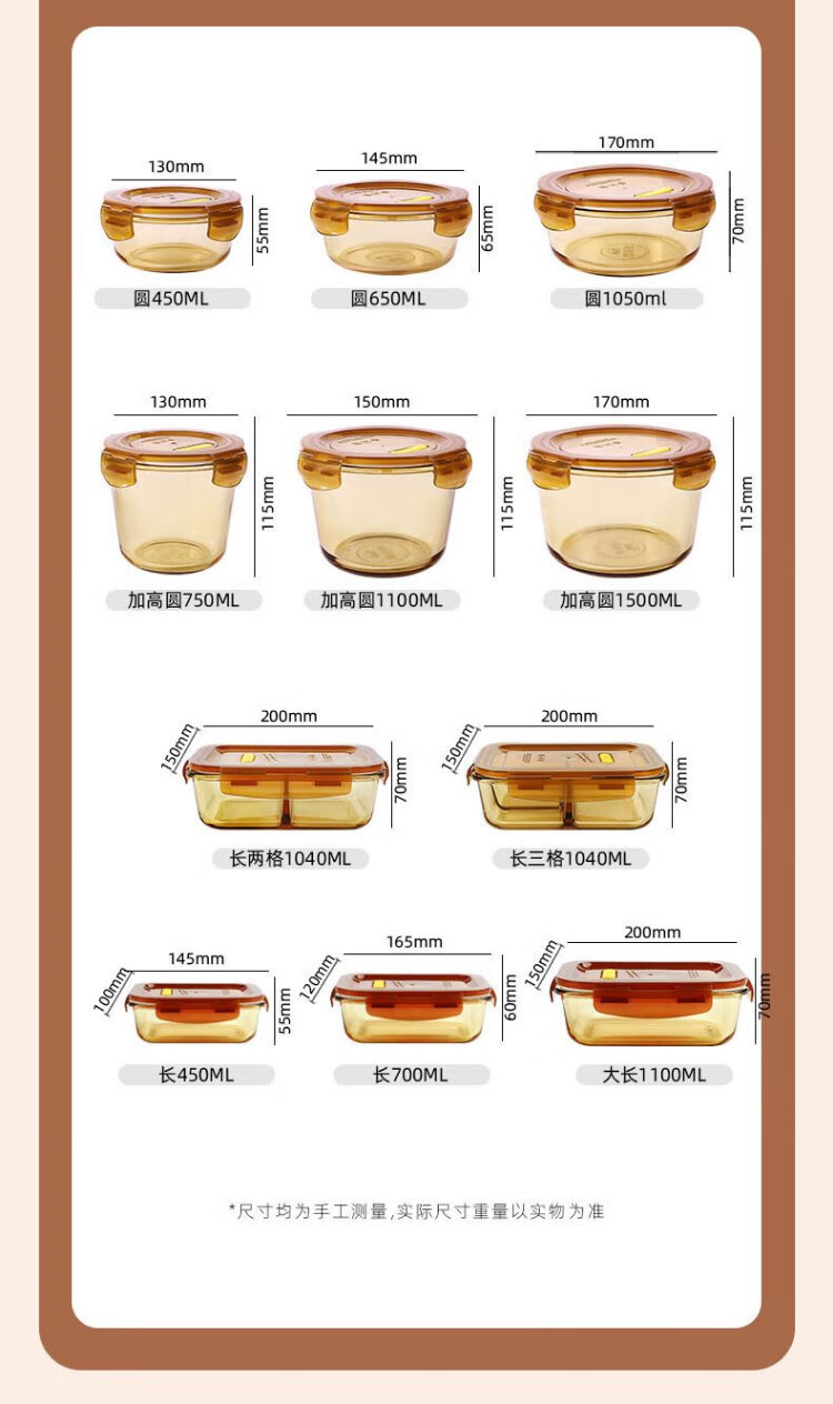 Chuangde heat-resistant glass lunch box office workers microwave lunch box crisper storage bowl lunch box compartment lunch box amber round 1050mL