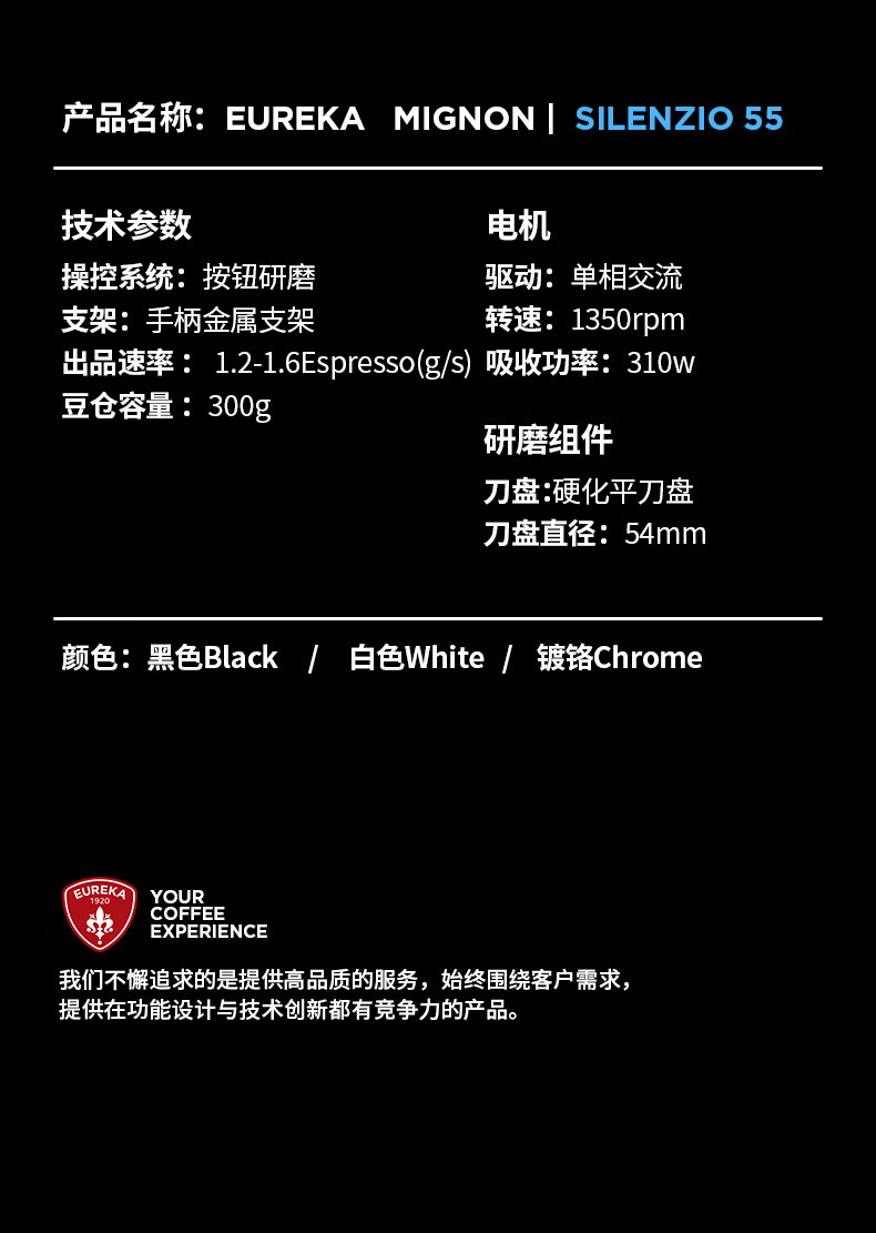 EUREKA Italian bean grinder SILENZIO imported from Italy MMG electronically controlled straight out Eureka flat knife coffee powder electric grinder coffee bean crusher small household SILENZIO white 55 cutterhead + adjustable height bracket