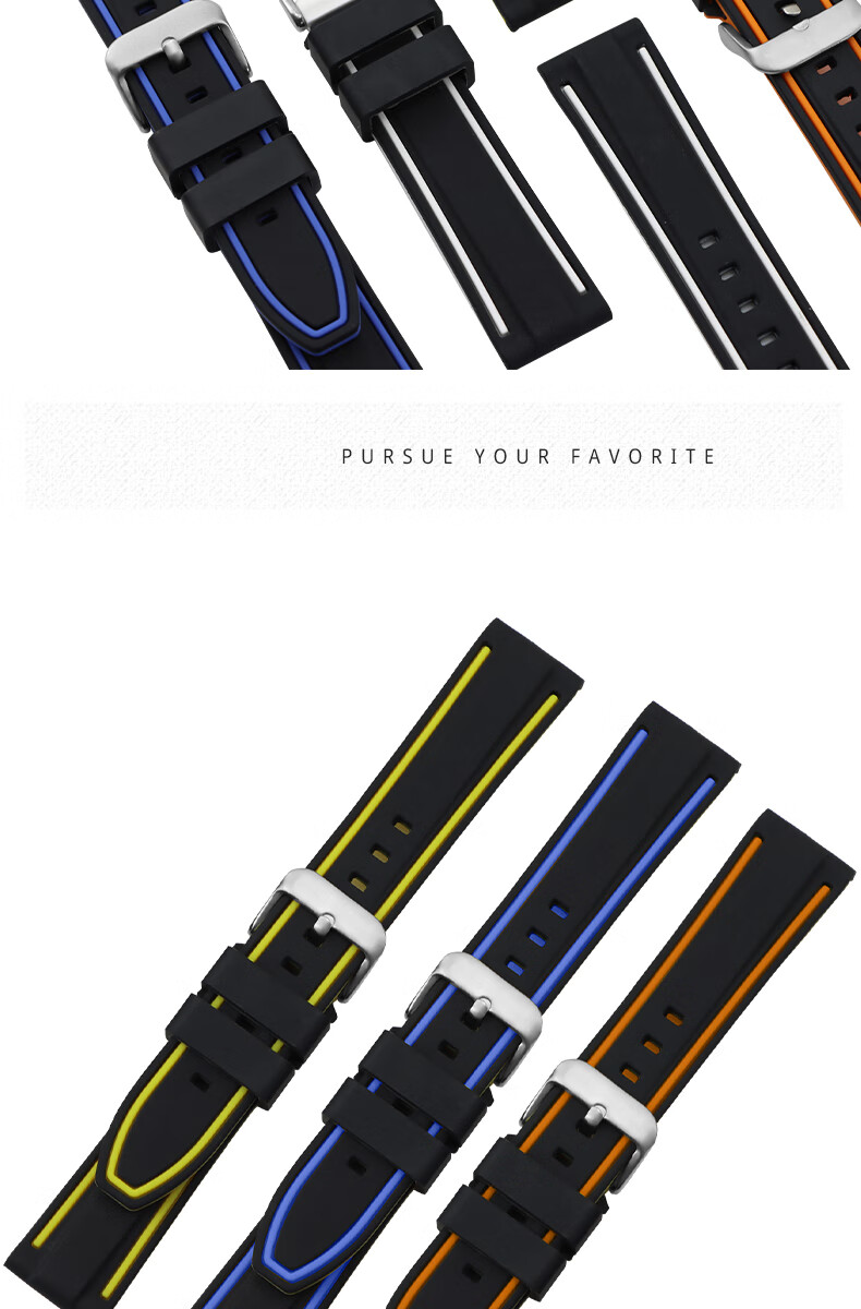 君禾雅适用于硅胶表带男马克华菲FW8228 FW6180 FW6210机械手表带20 22m 黑间红色 24mm