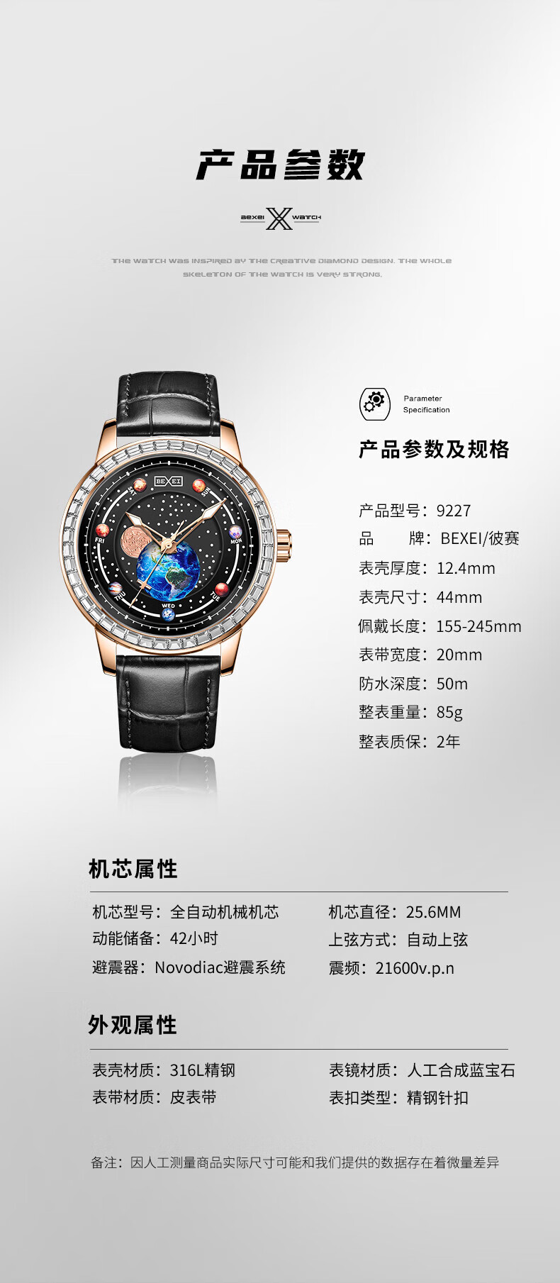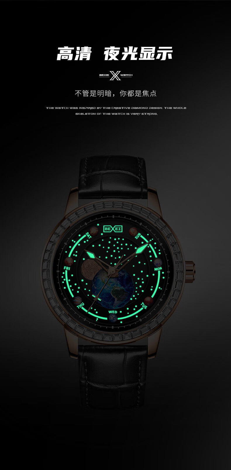 BEXEI Watch Men's Fully Automatic Mechanical Luminous Waterproof Watch Classic Silver-9227