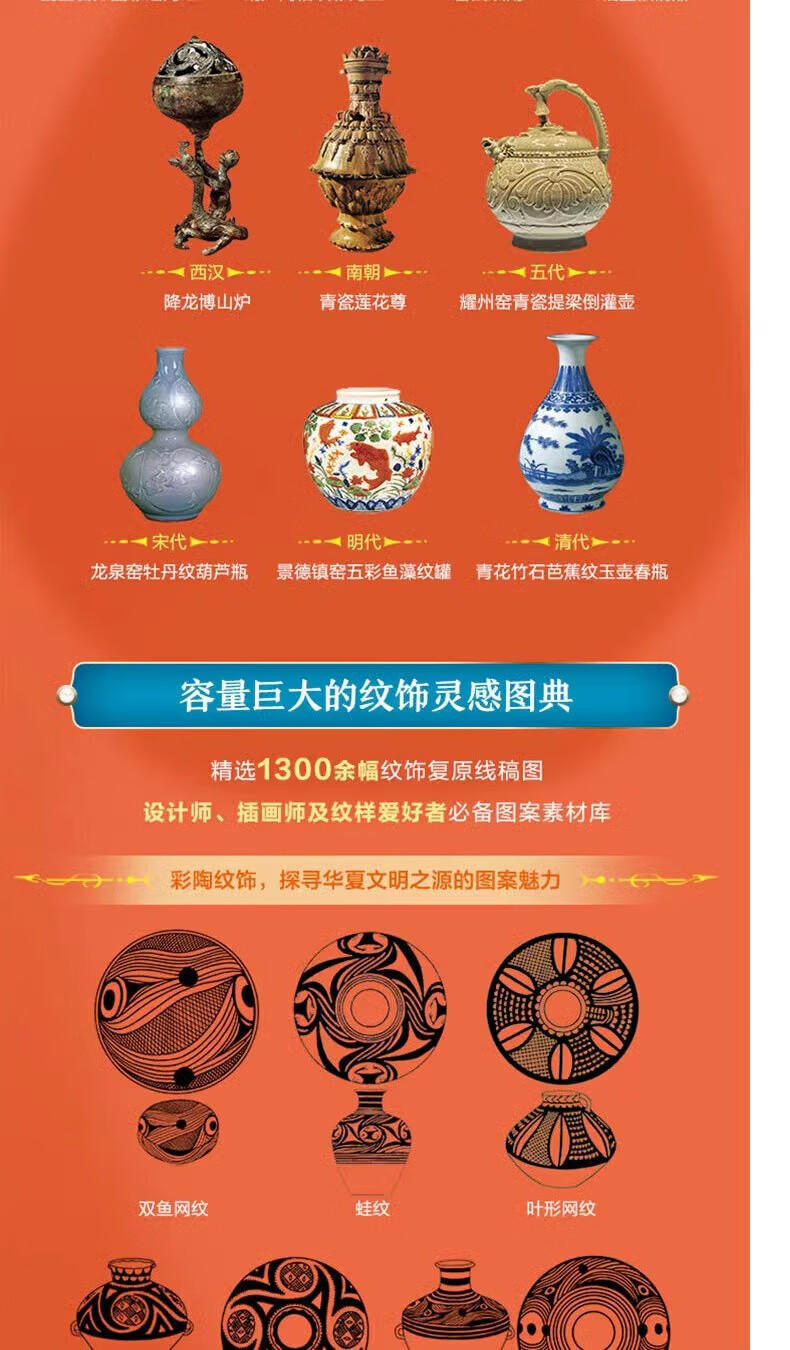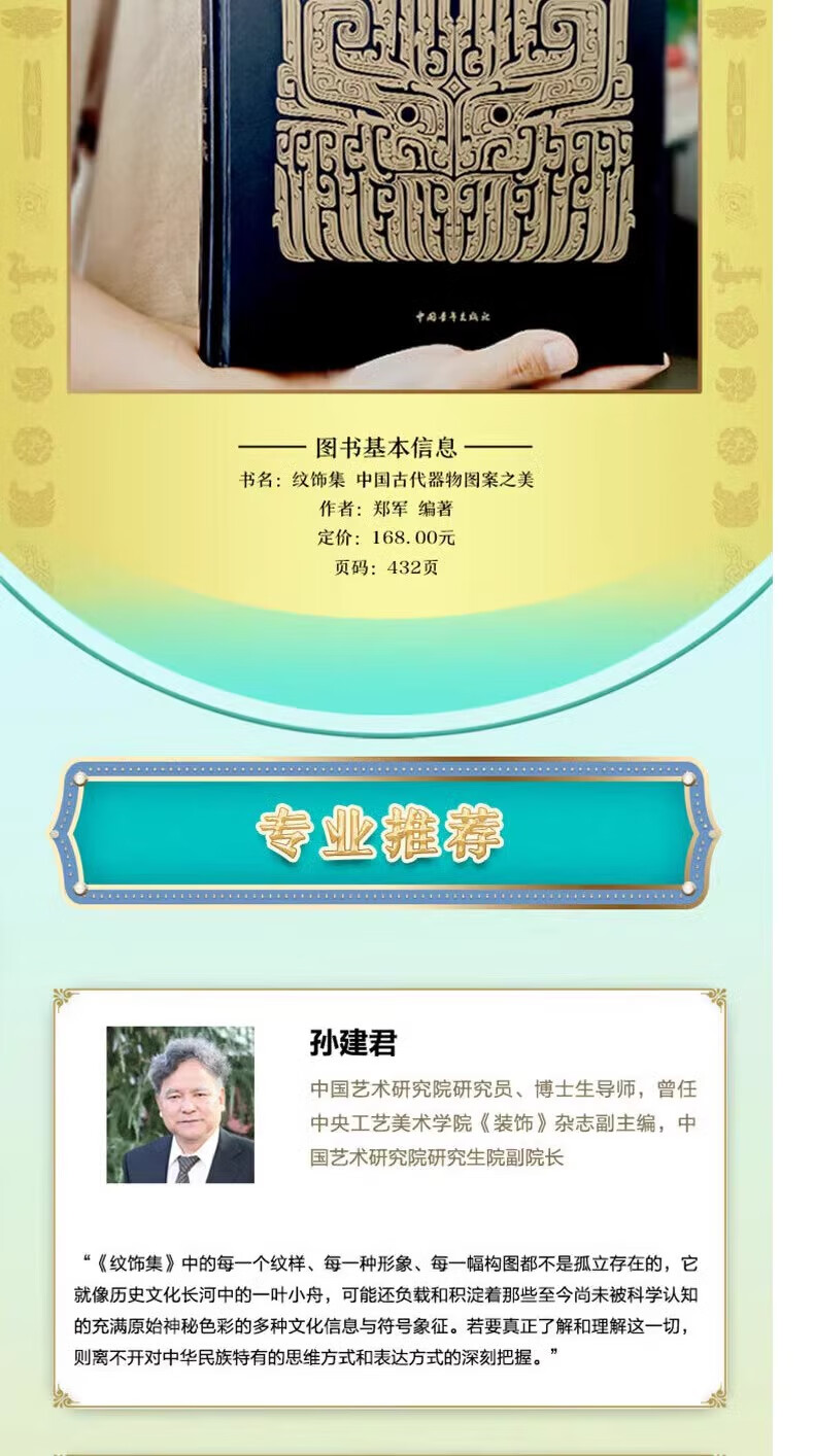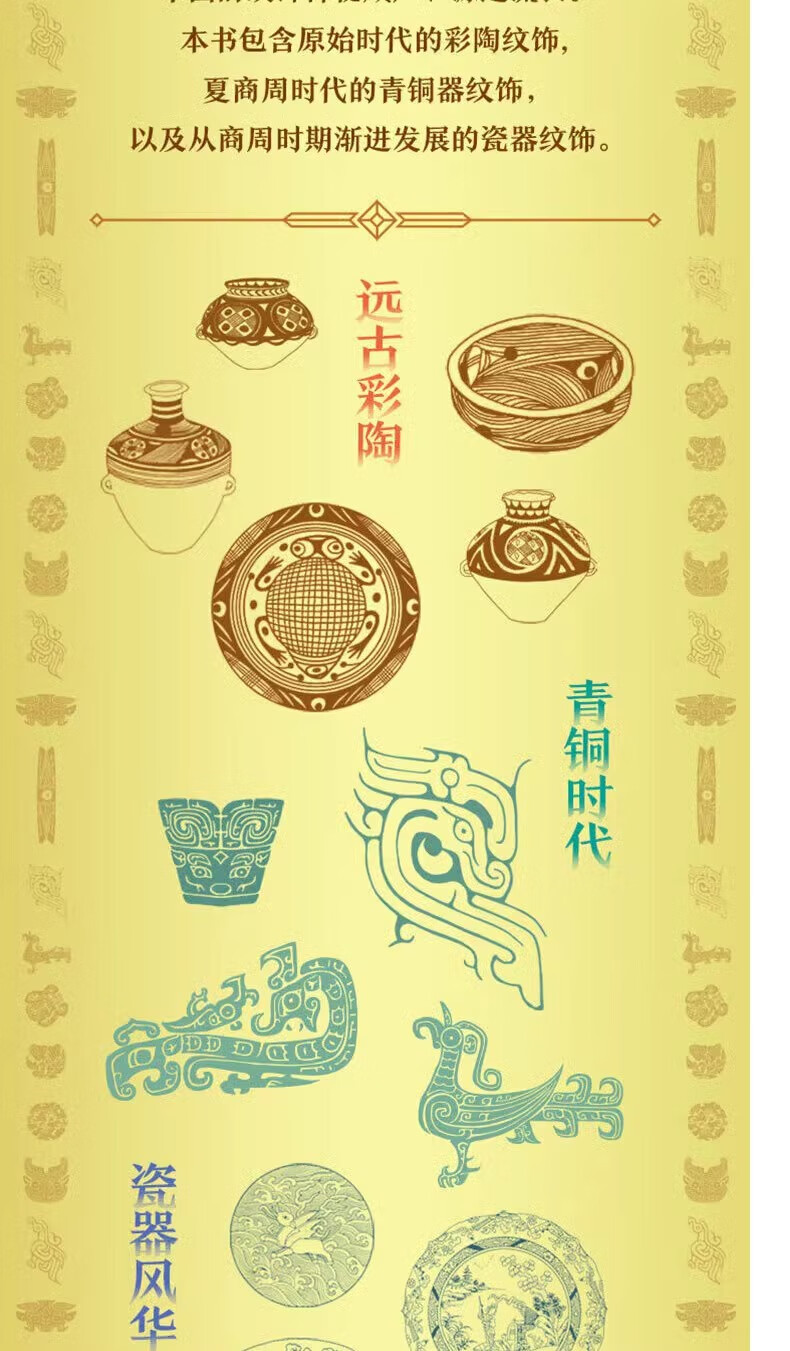 Collection of Decorations - The Beauty of Patterns on Ancient Chinese Artifacts Zheng Jun More than 300 cultural relics More than 1,300 restored line drawings of decorative patterns Painted pottery Bronze Porcelain Development history and modeling characteristics Creative style and artistic characteristics Genuine