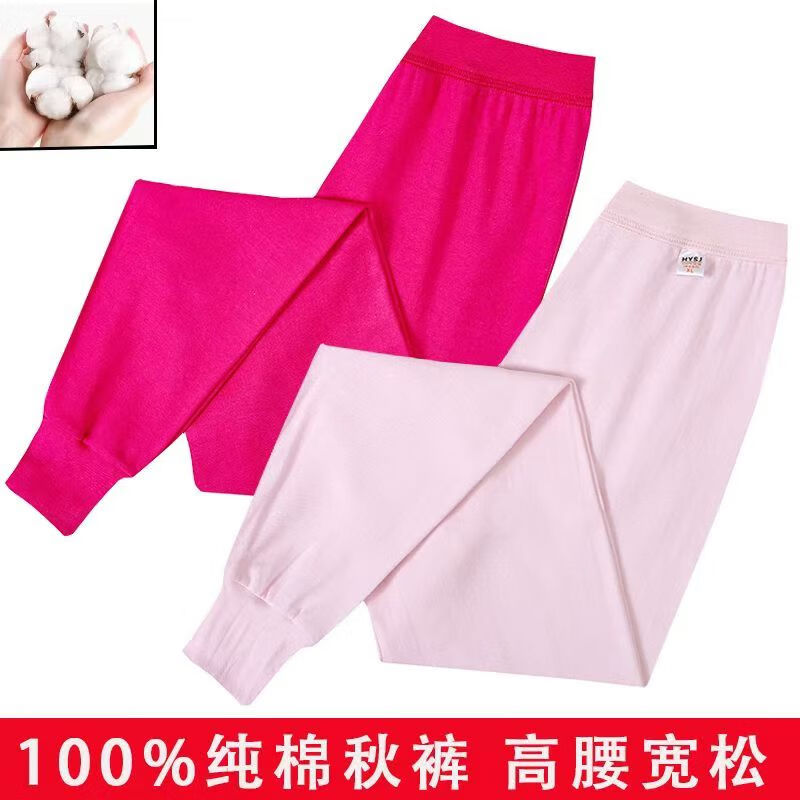 [100% cotton] Women's high-waisted long johns for middle-aged and elderly people, deep-cut linen pants, loose large size underpants, cotton long johns for women, 2-pack (pink + skin color) 3XL (suitable for 140-160Jin [Jin equals 0.5 kg])