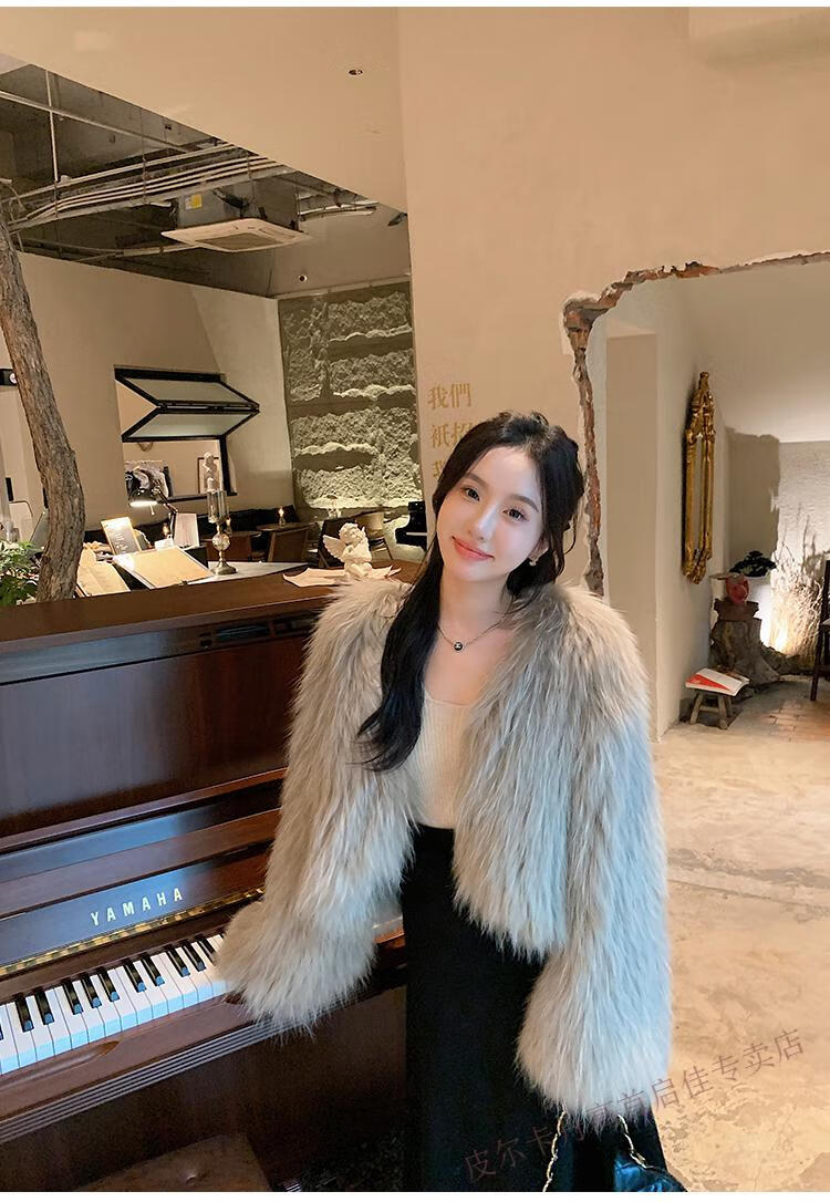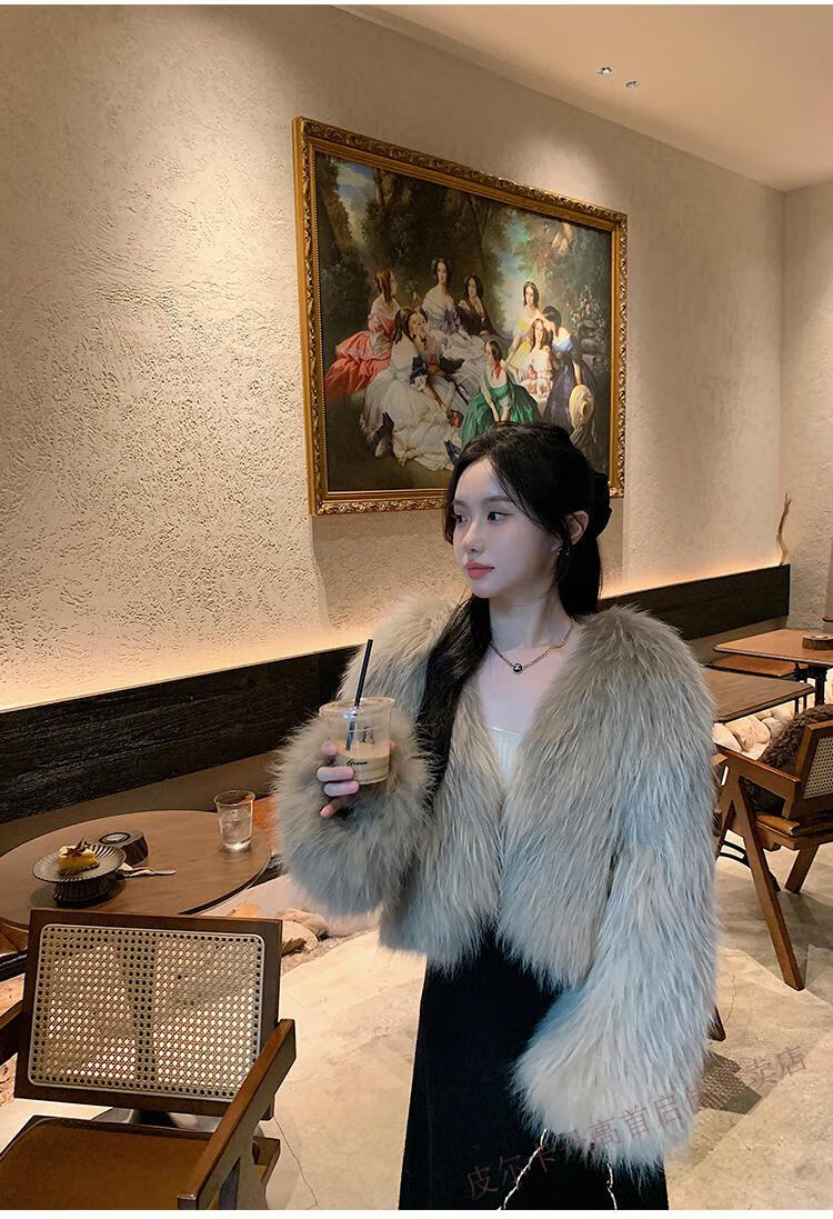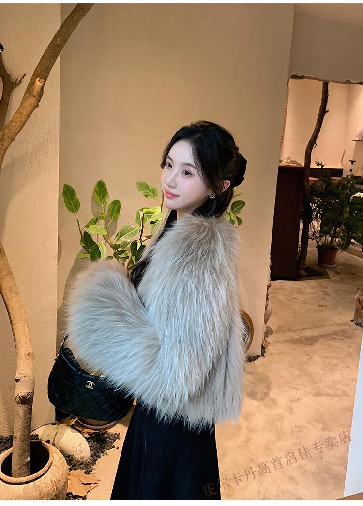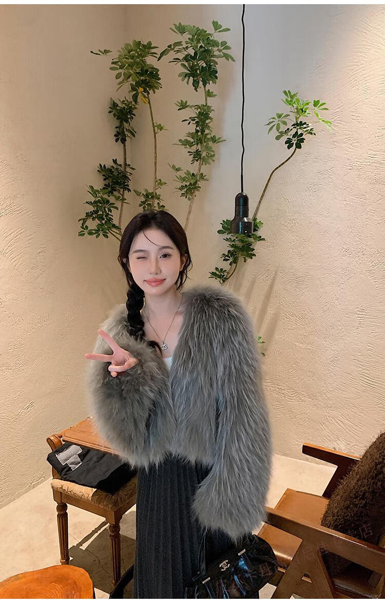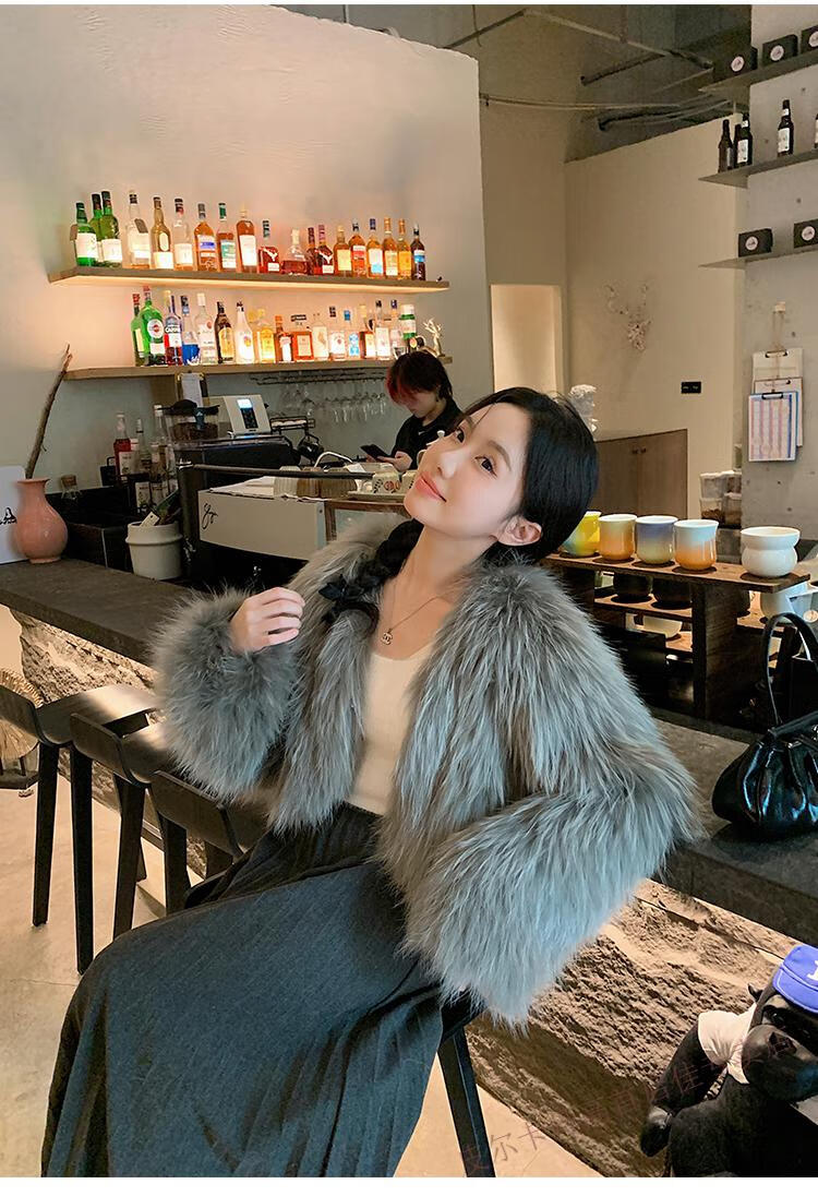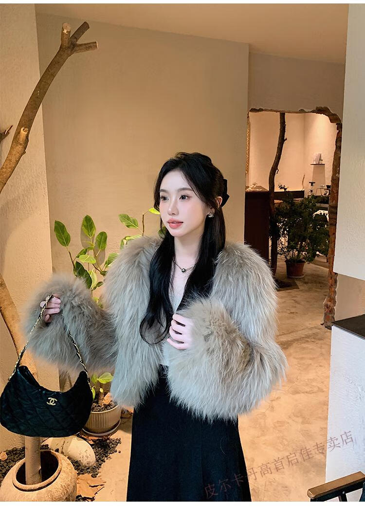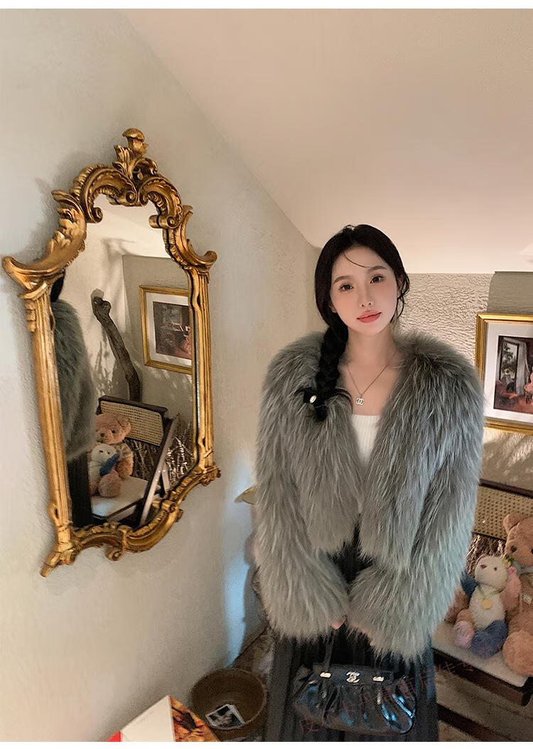 Primary diameter encrypted raccoon fur double-sided braided fur coat for women, short, small, young, Internet celebrity 2025 winter new style, elephant gray, one size fits all