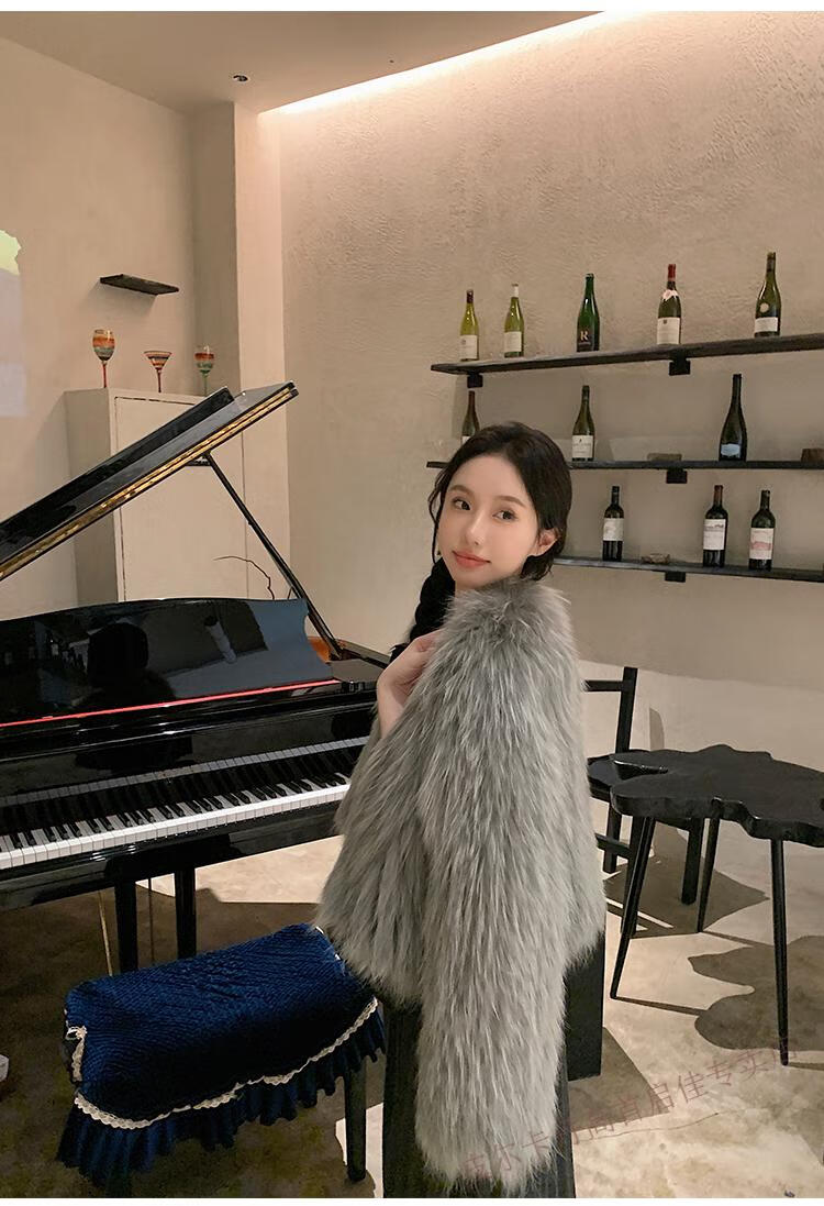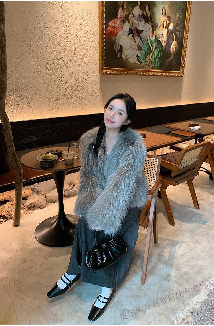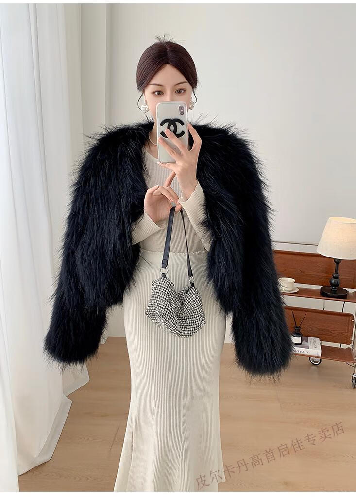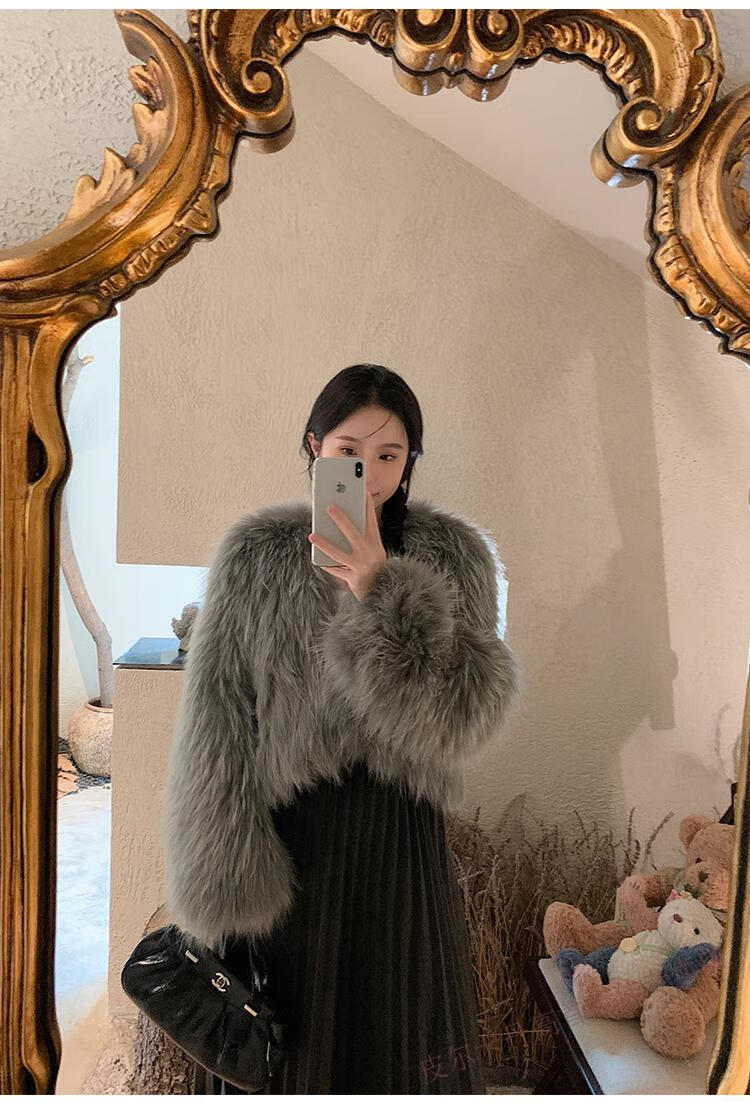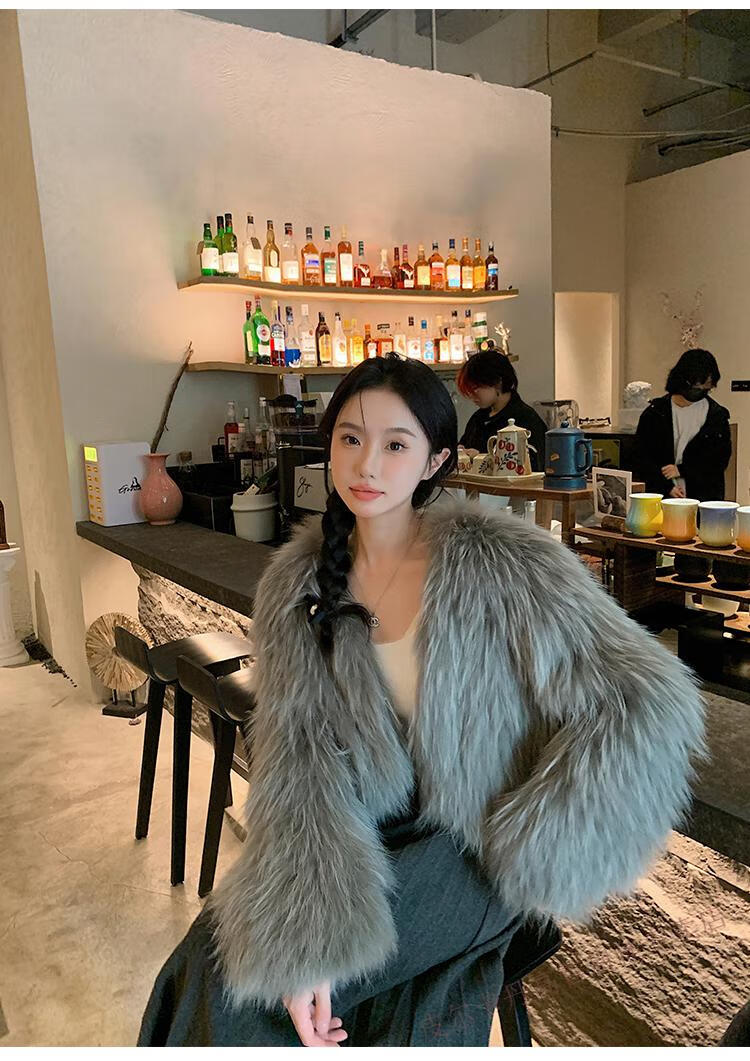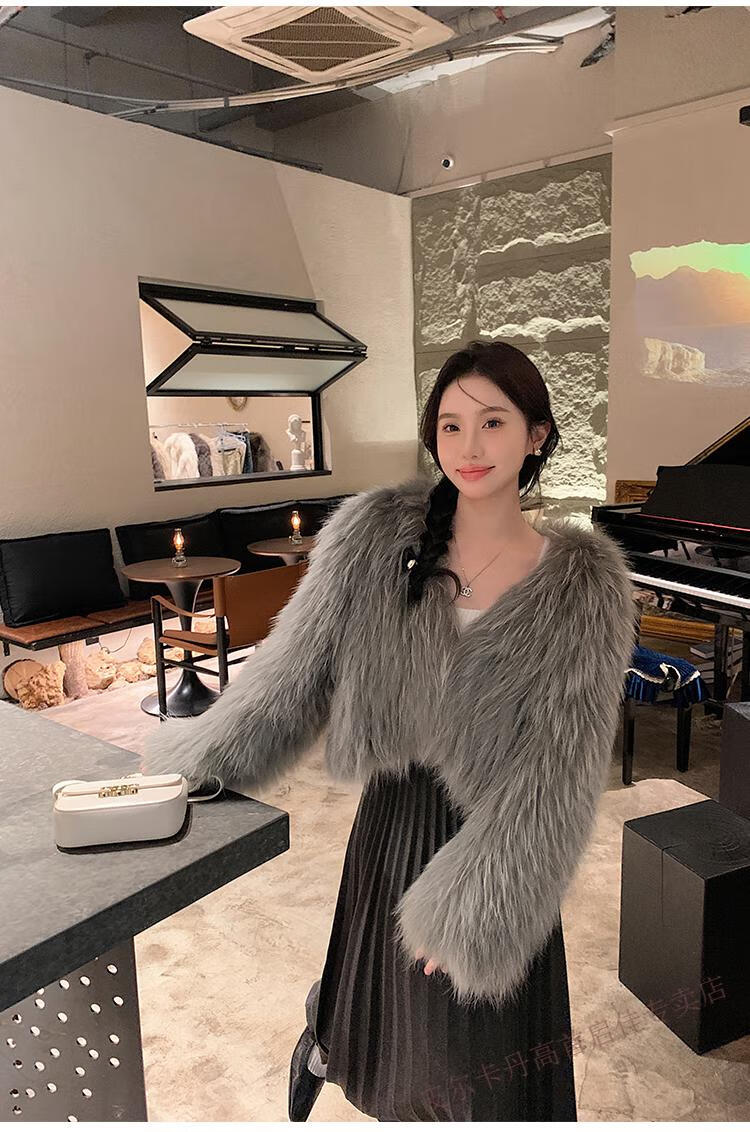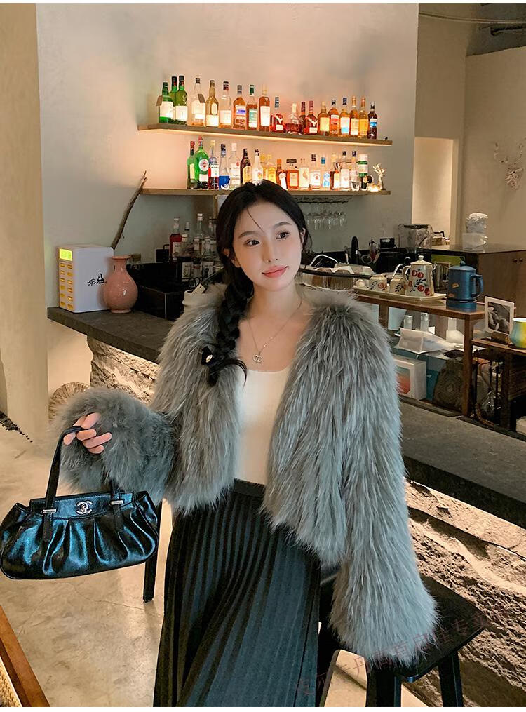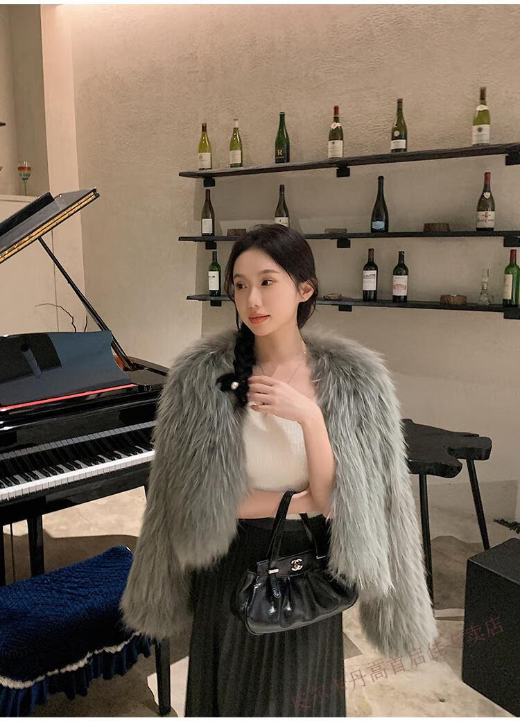 Primary diameter encrypted raccoon fur double-sided braided fur coat for women, short, small, young, Internet celebrity 2025 winter new style, elephant gray, one size fits all