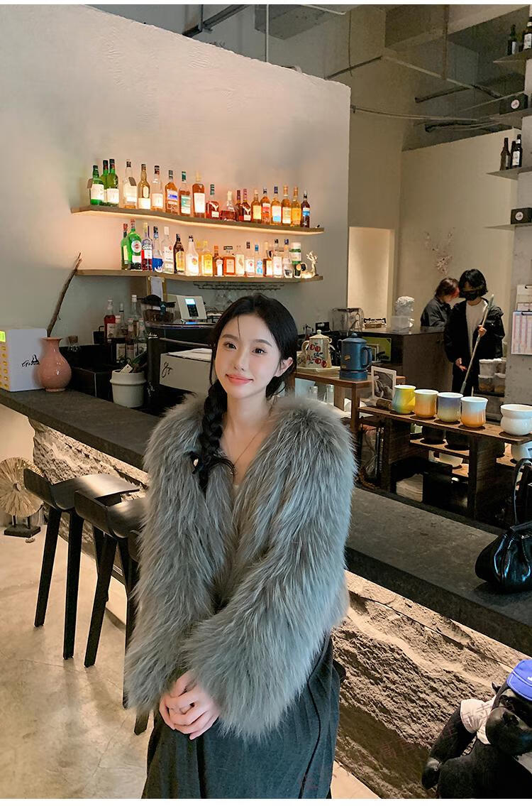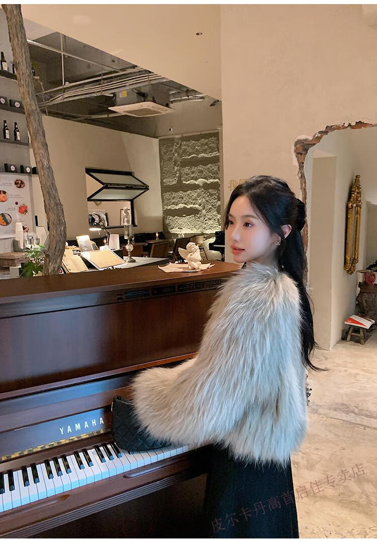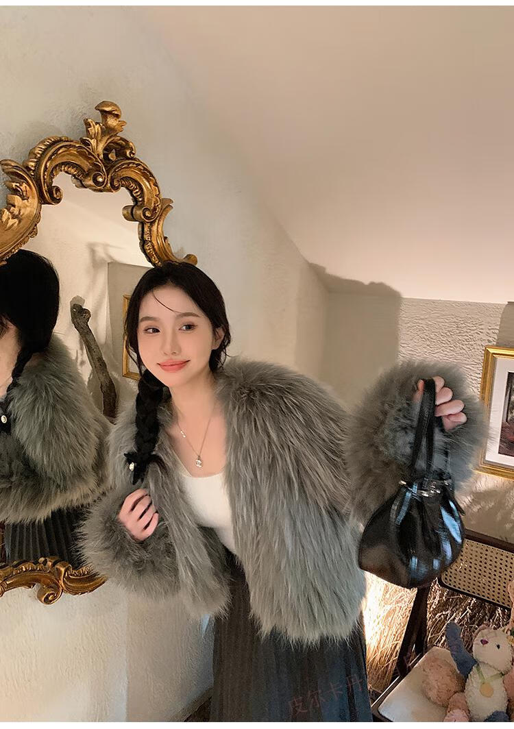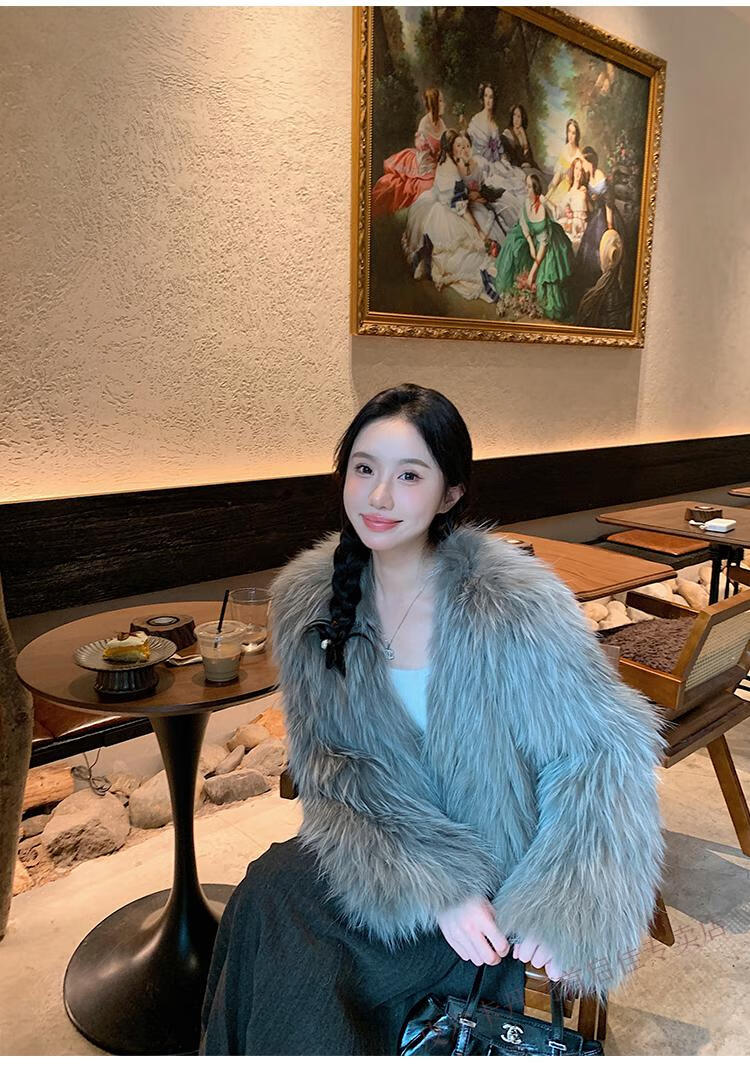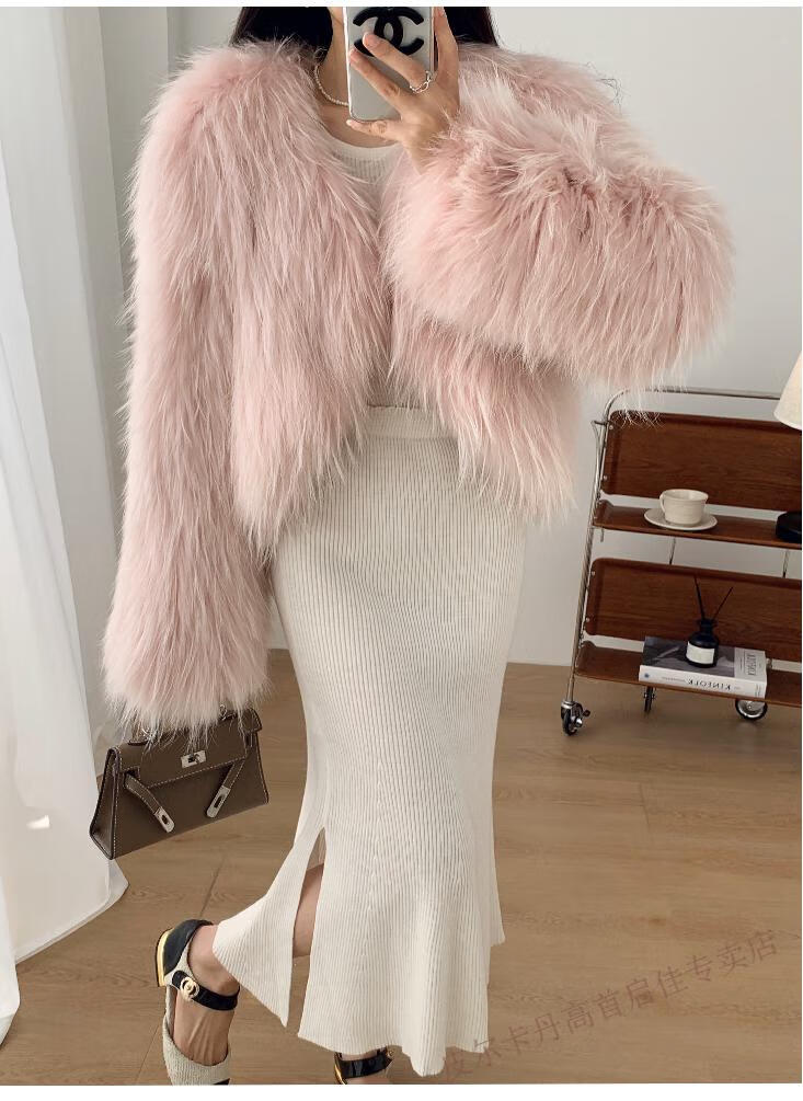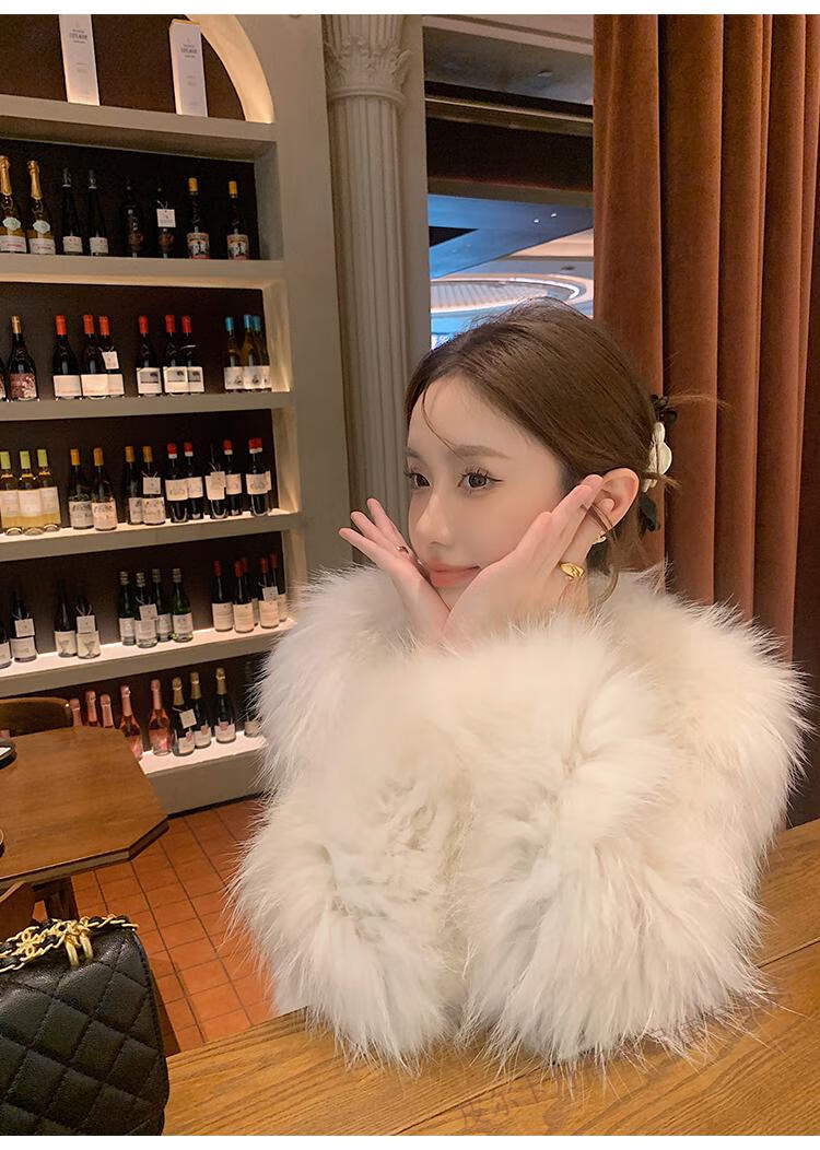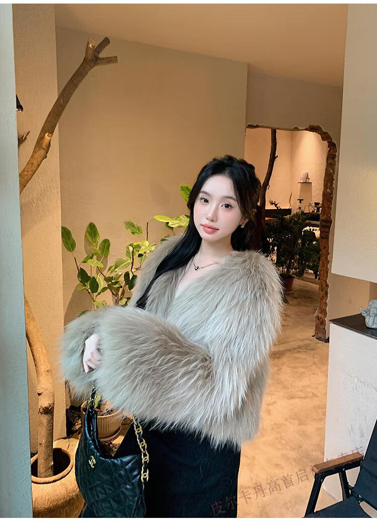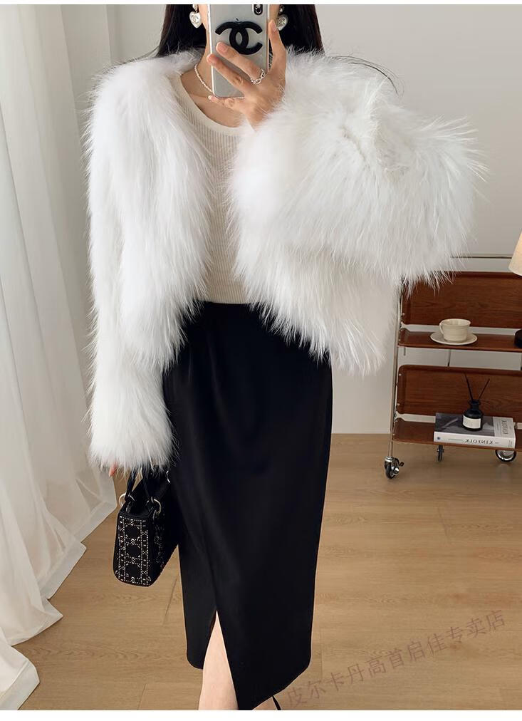Primary diameter encrypted raccoon fur double-sided braided fur coat for women, short, small, young, Internet celebrity 2025 winter new style, elephant gray, one size fits all
