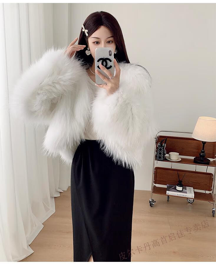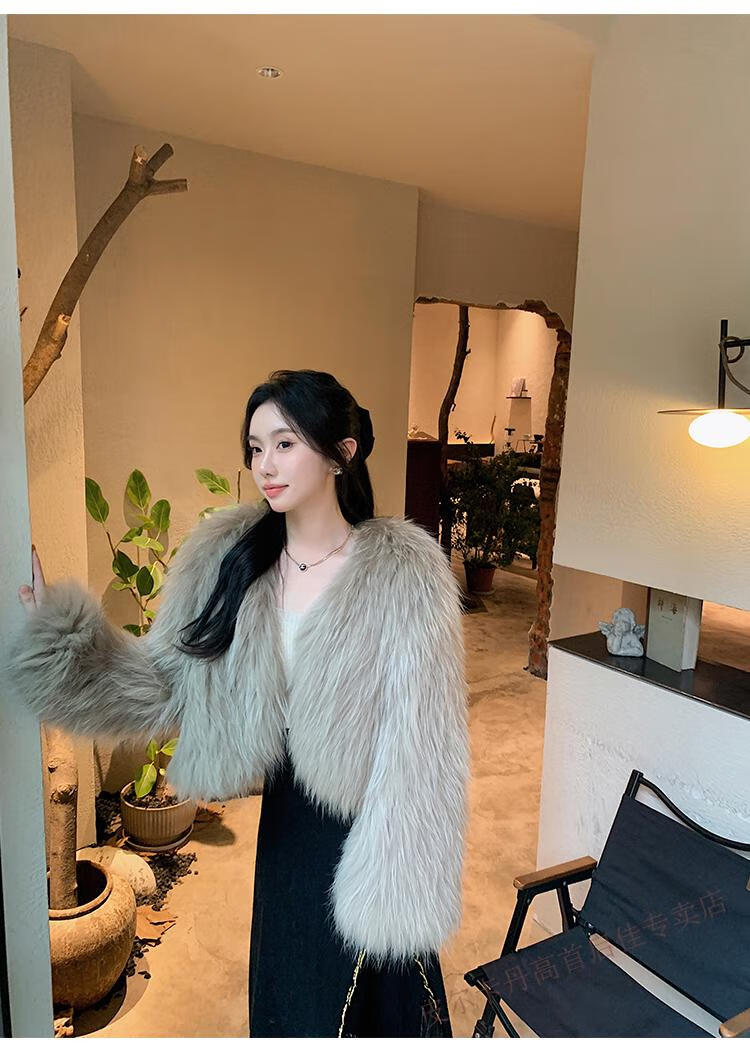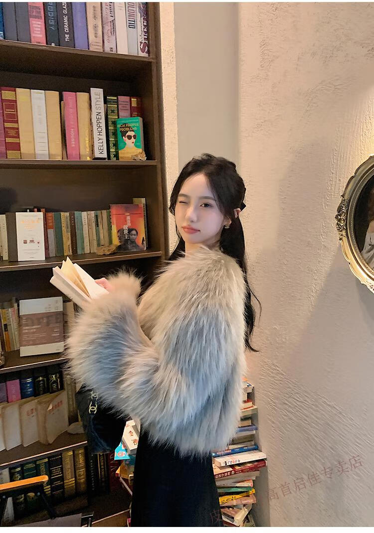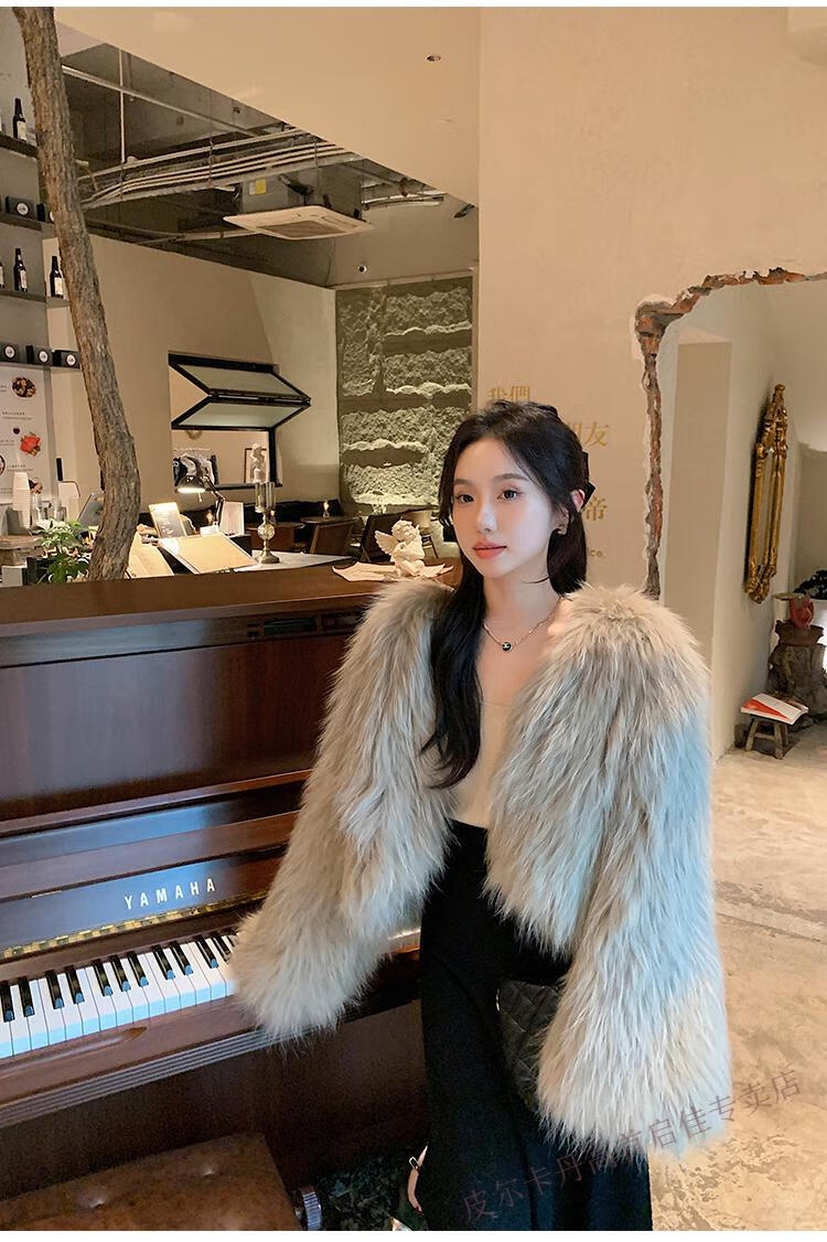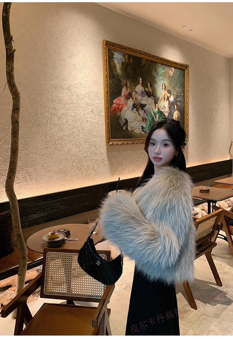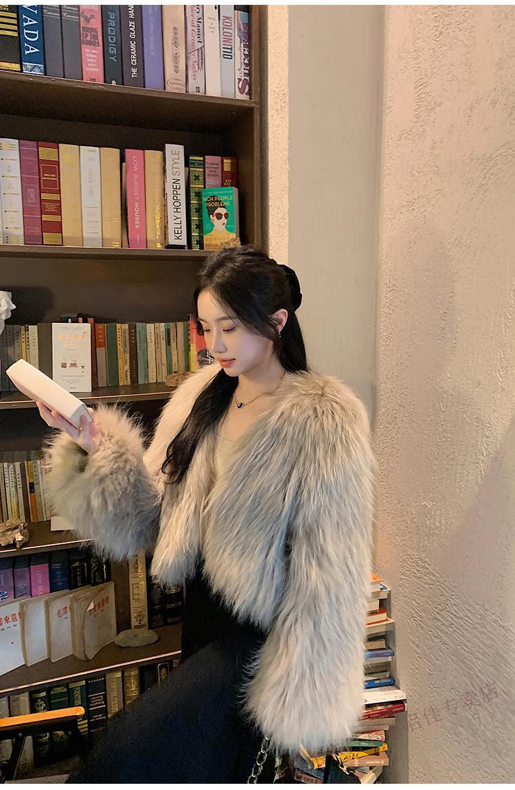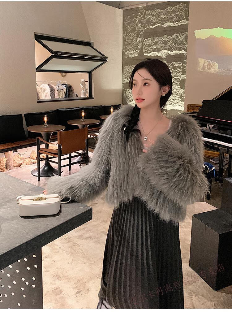 Primary diameter encrypted raccoon fur double-sided braided fur coat for women, short, small, young, Internet celebrity 2025 winter new style, elephant gray, one size fits all