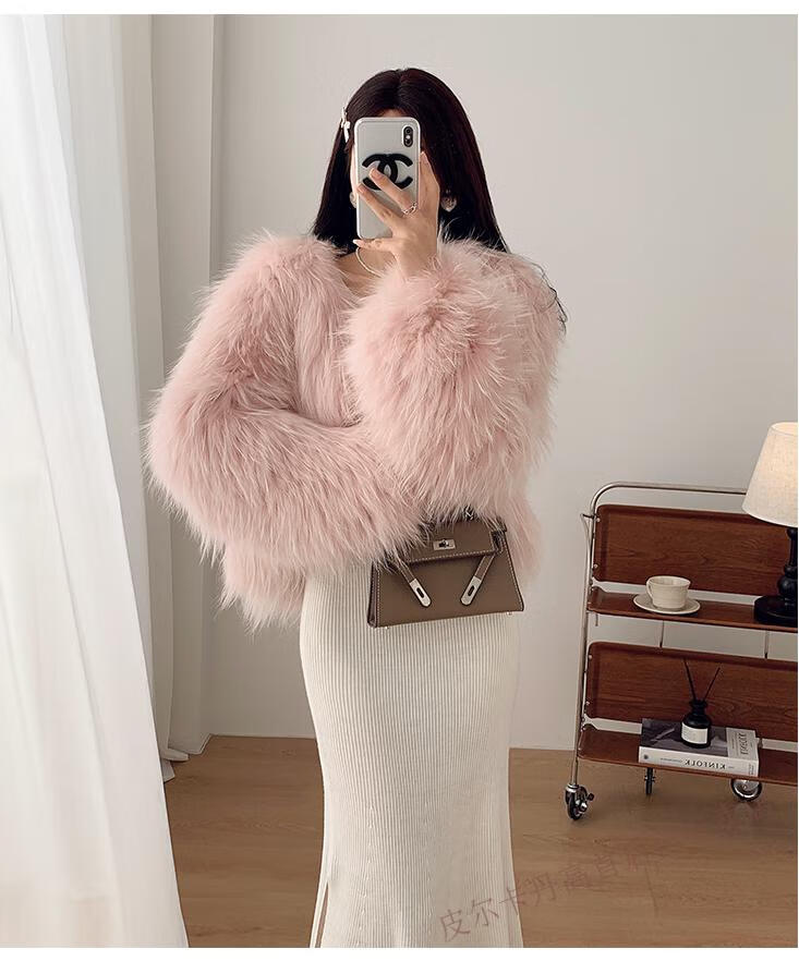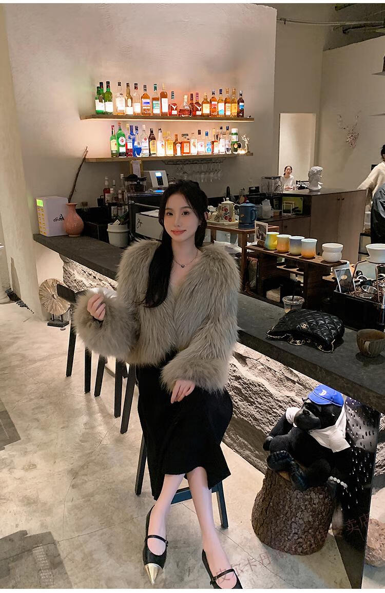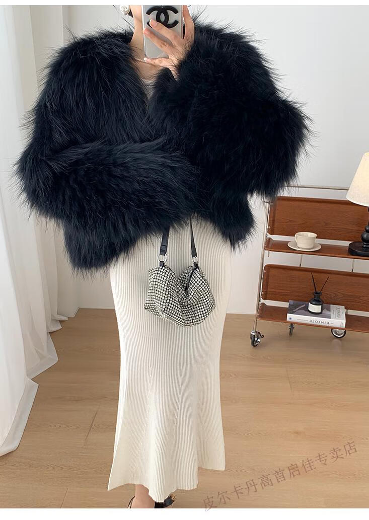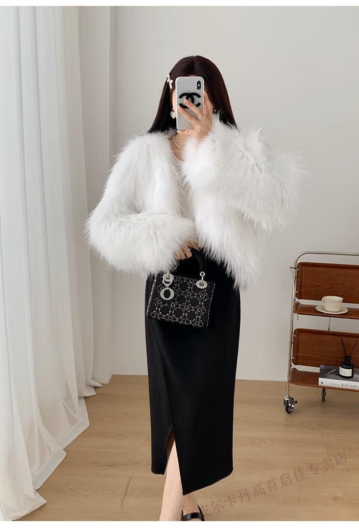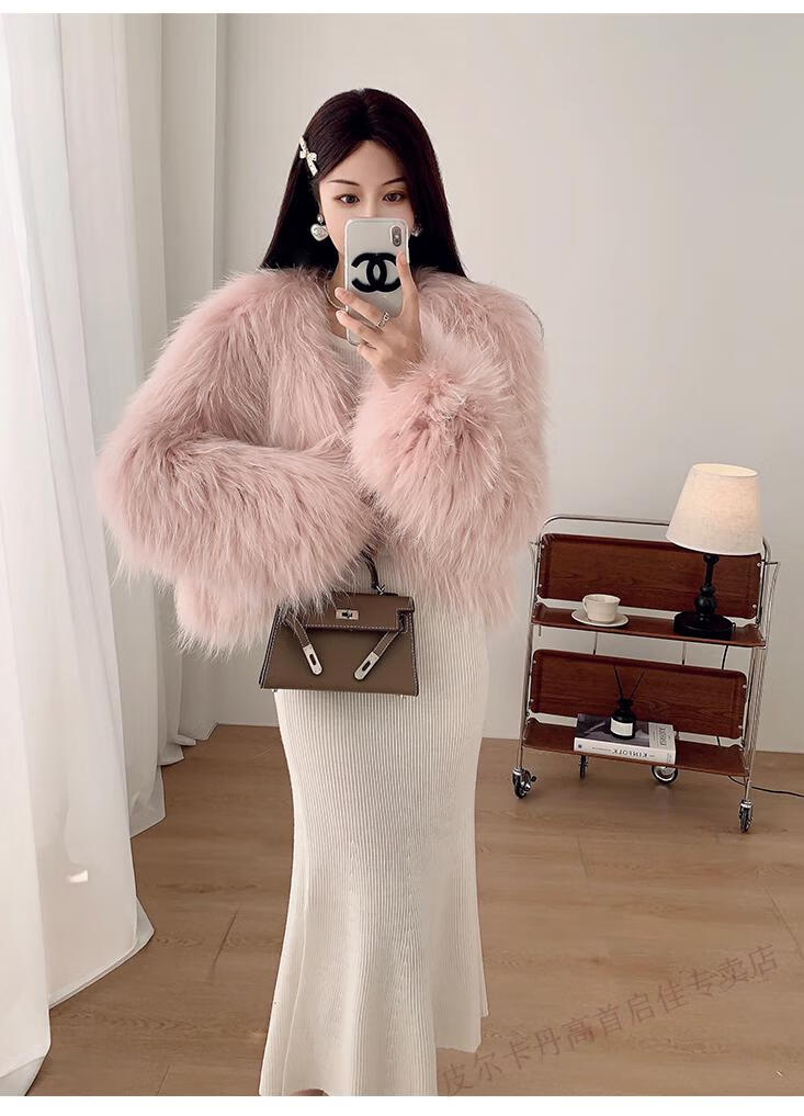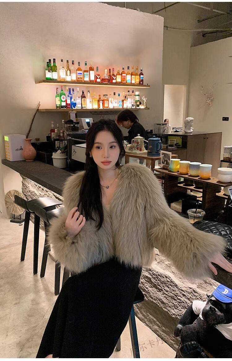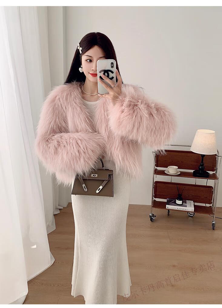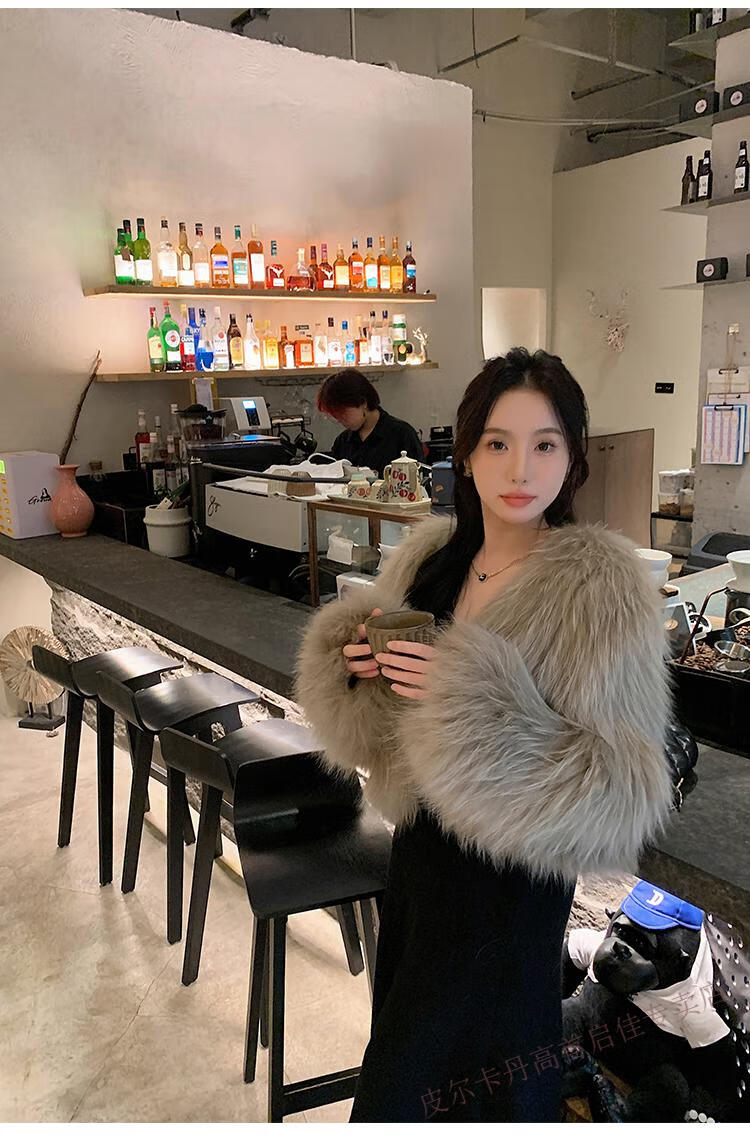 Primary diameter encrypted raccoon fur double-sided braided fur coat for women, short, small, young, Internet celebrity 2025 winter new style, elephant gray, one size fits all