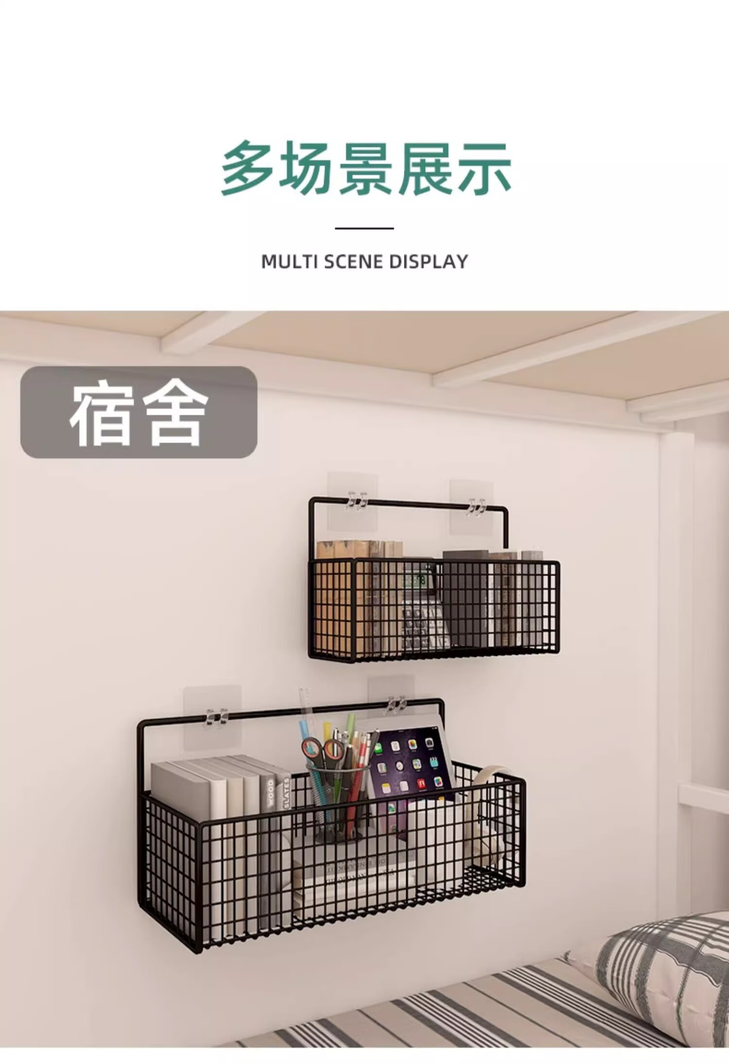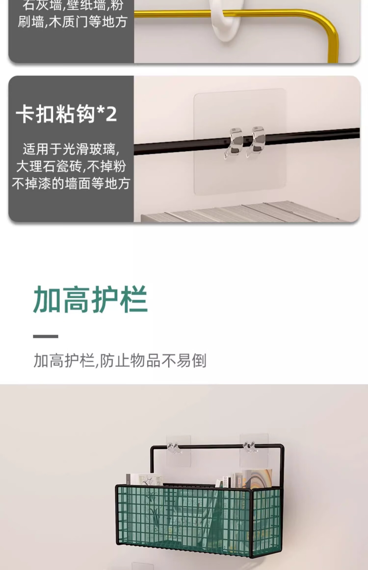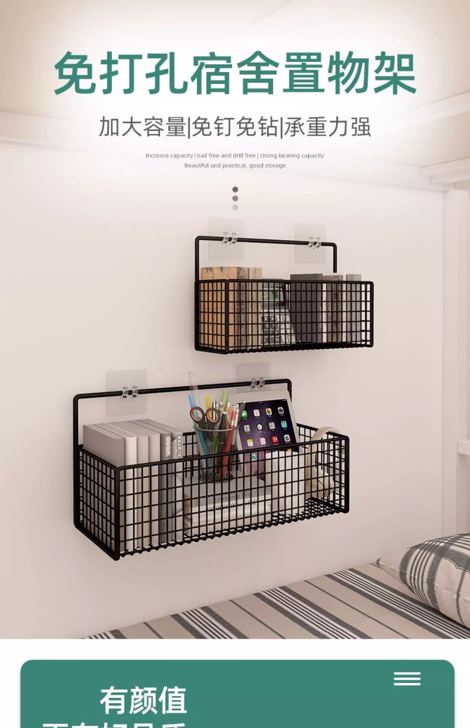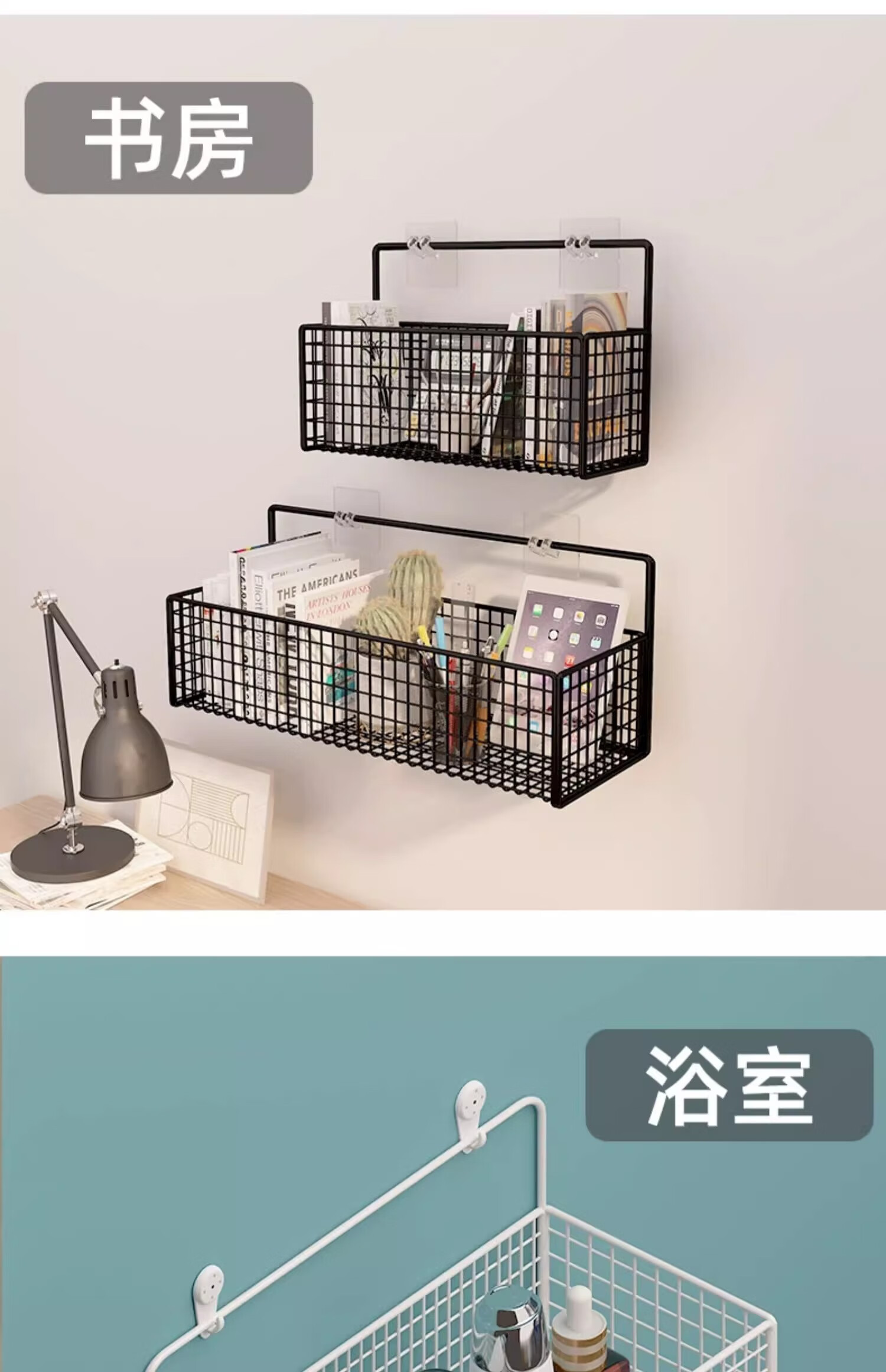 Nifeng dormitory punch-free wall storage rack bathroom Internet celebrity storage artifact bedroom bedside wall bookshelf wall-mounted black single-layer medium size - ordinary style