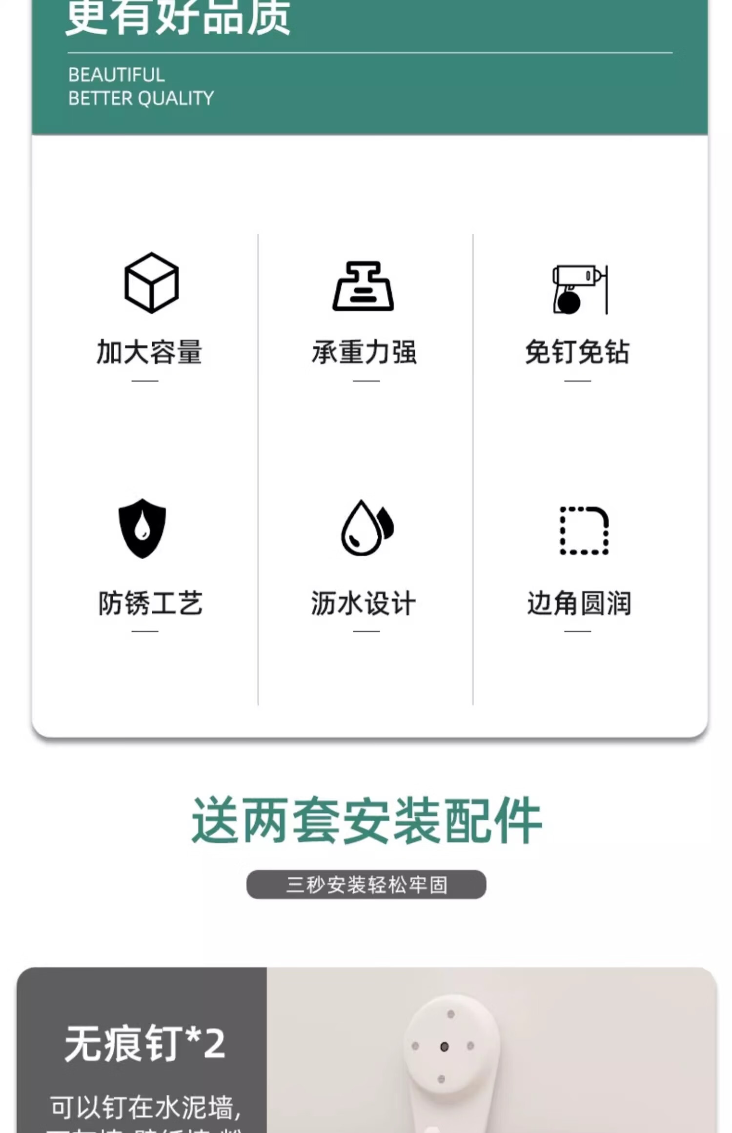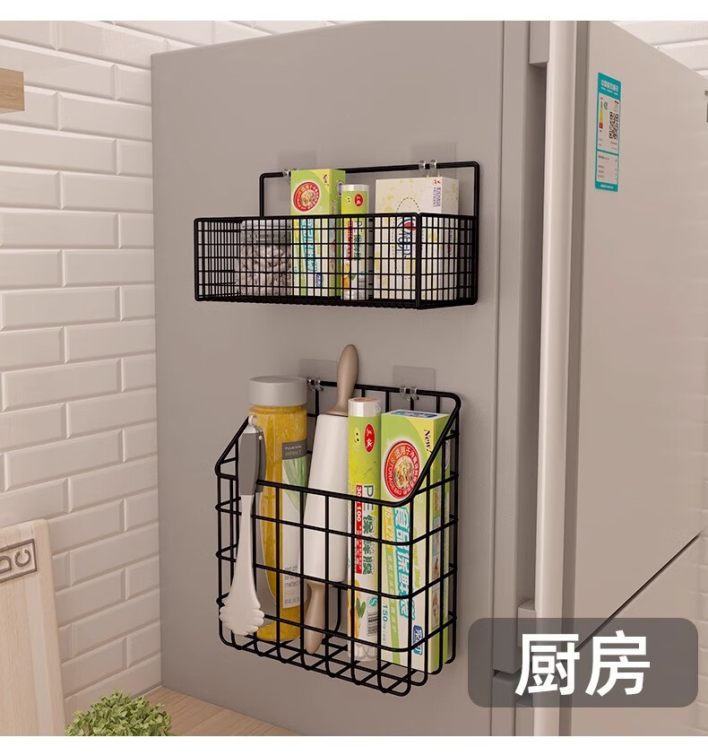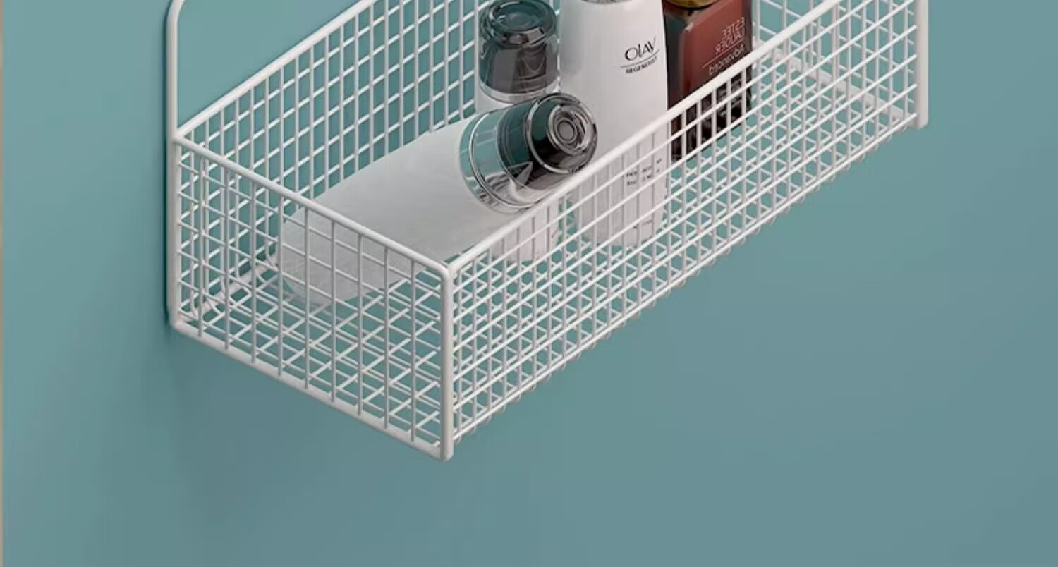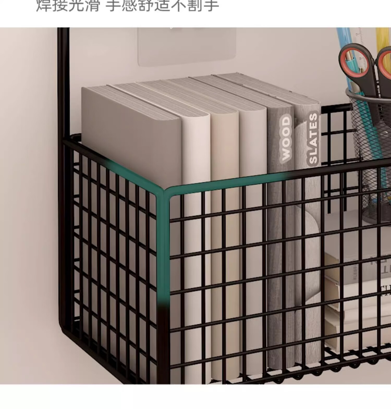 Nifeng dormitory punch-free wall storage rack bathroom Internet celebrity storage artifact bedroom bedside wall bookshelf wall-mounted black single-layer medium size - ordinary style