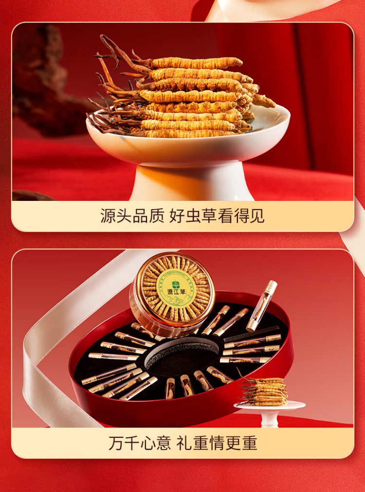 Yuanjiang grass cordyceps high altitude new dried cordyceps gift box dry goods nutritional supplements for leaders and elders 2-3/g 10g red gift box