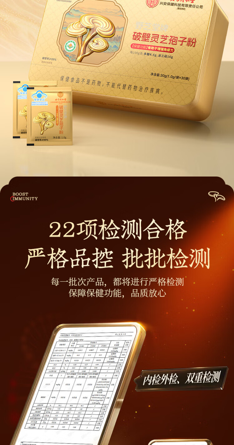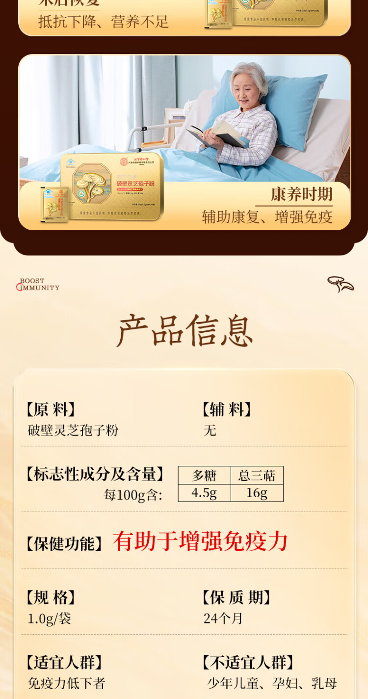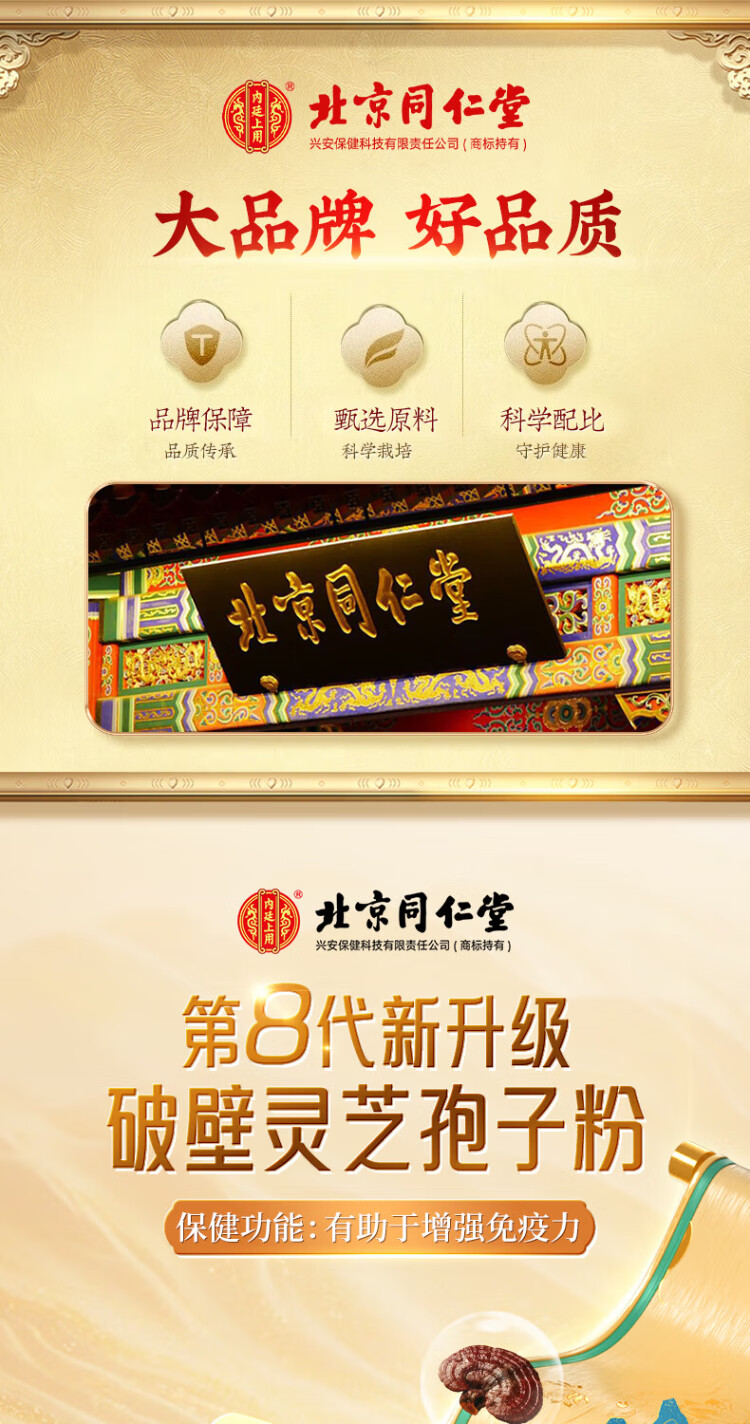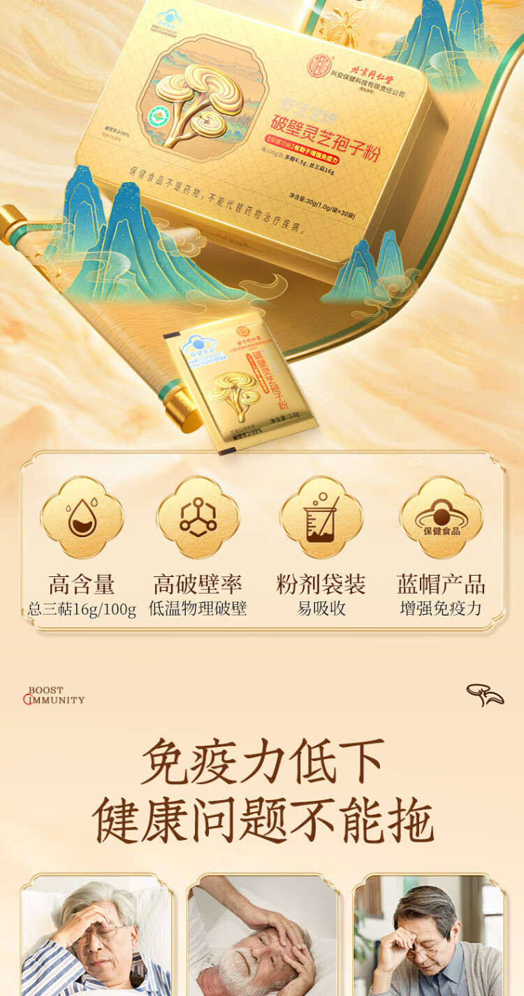 Tongrentang Chinese Time-honored Brand Broken Ganoderma Spore Powder Spore Oil Gift Box Enhances Immunity Nutritional Health Products Danxia Gift Box Light Luxury Gift Box-90 Bags