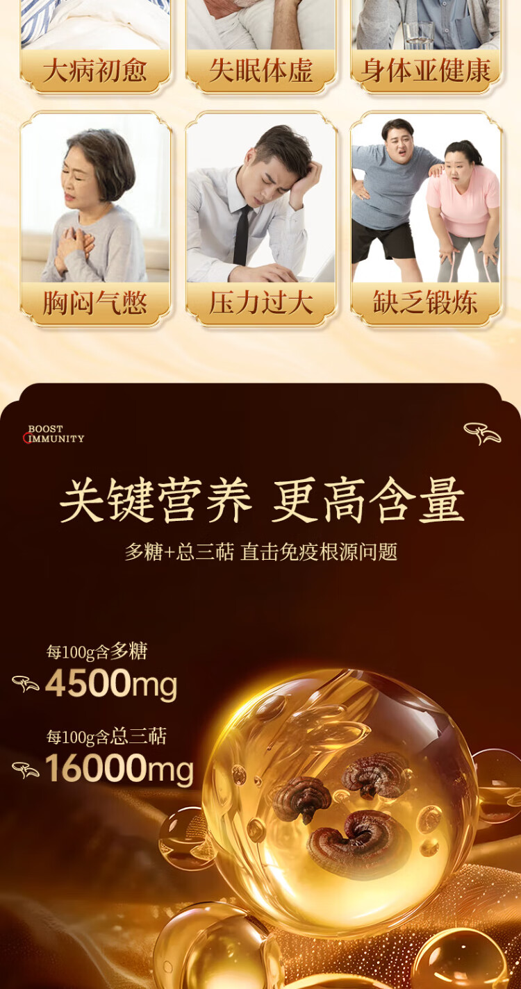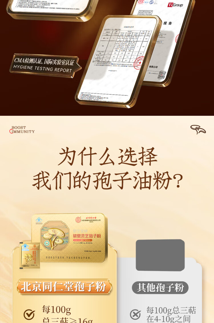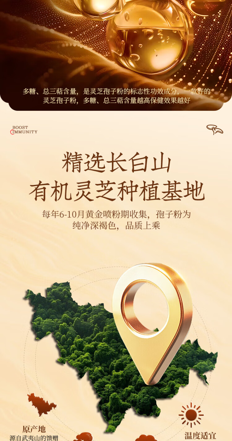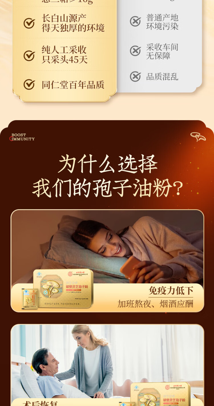 Tongrentang Chinese Time-honored Brand Broken Ganoderma Spore Powder Spore Oil Gift Box Enhances Immunity Nutritional Health Products Danxia Gift Box Light Luxury Gift Box-90 Bags