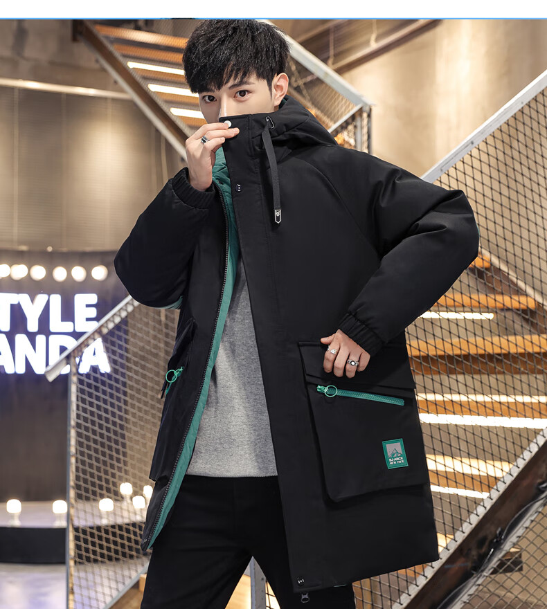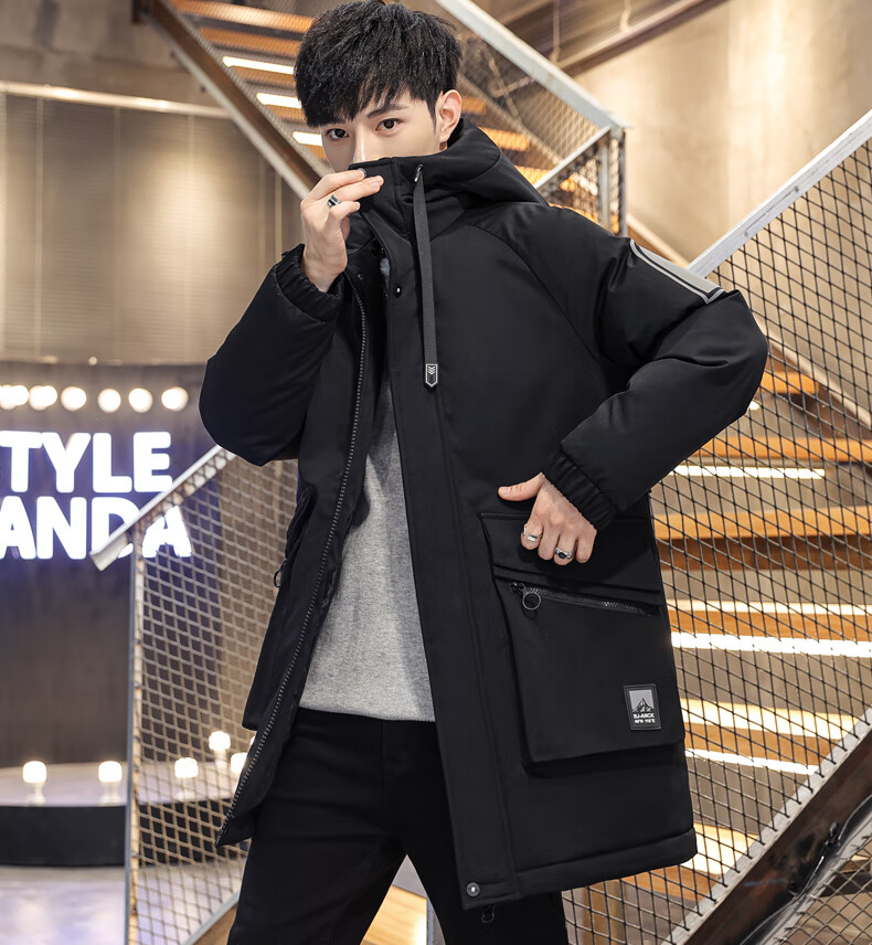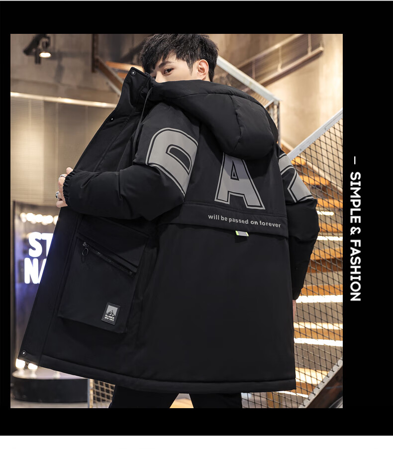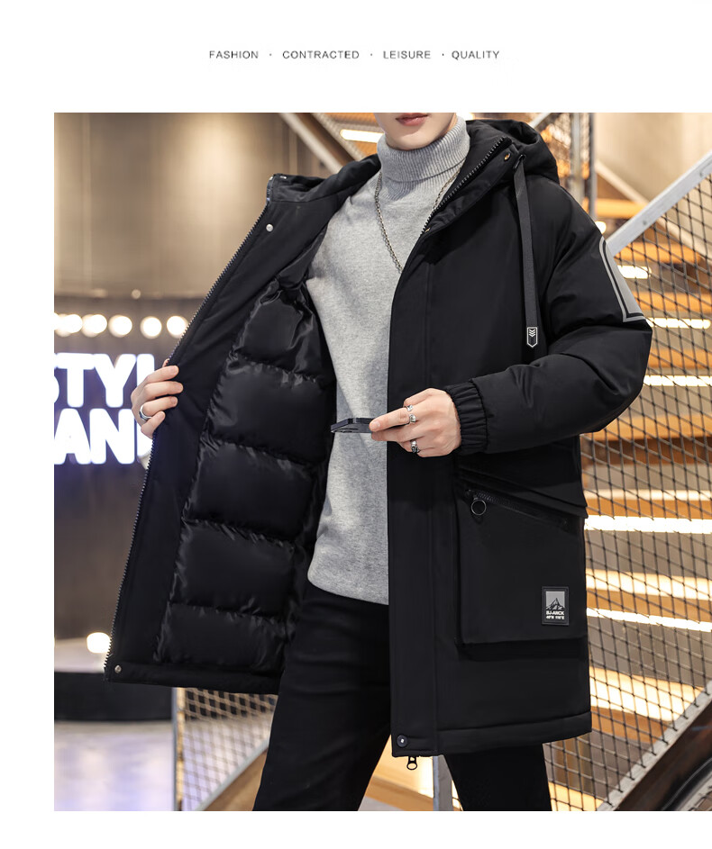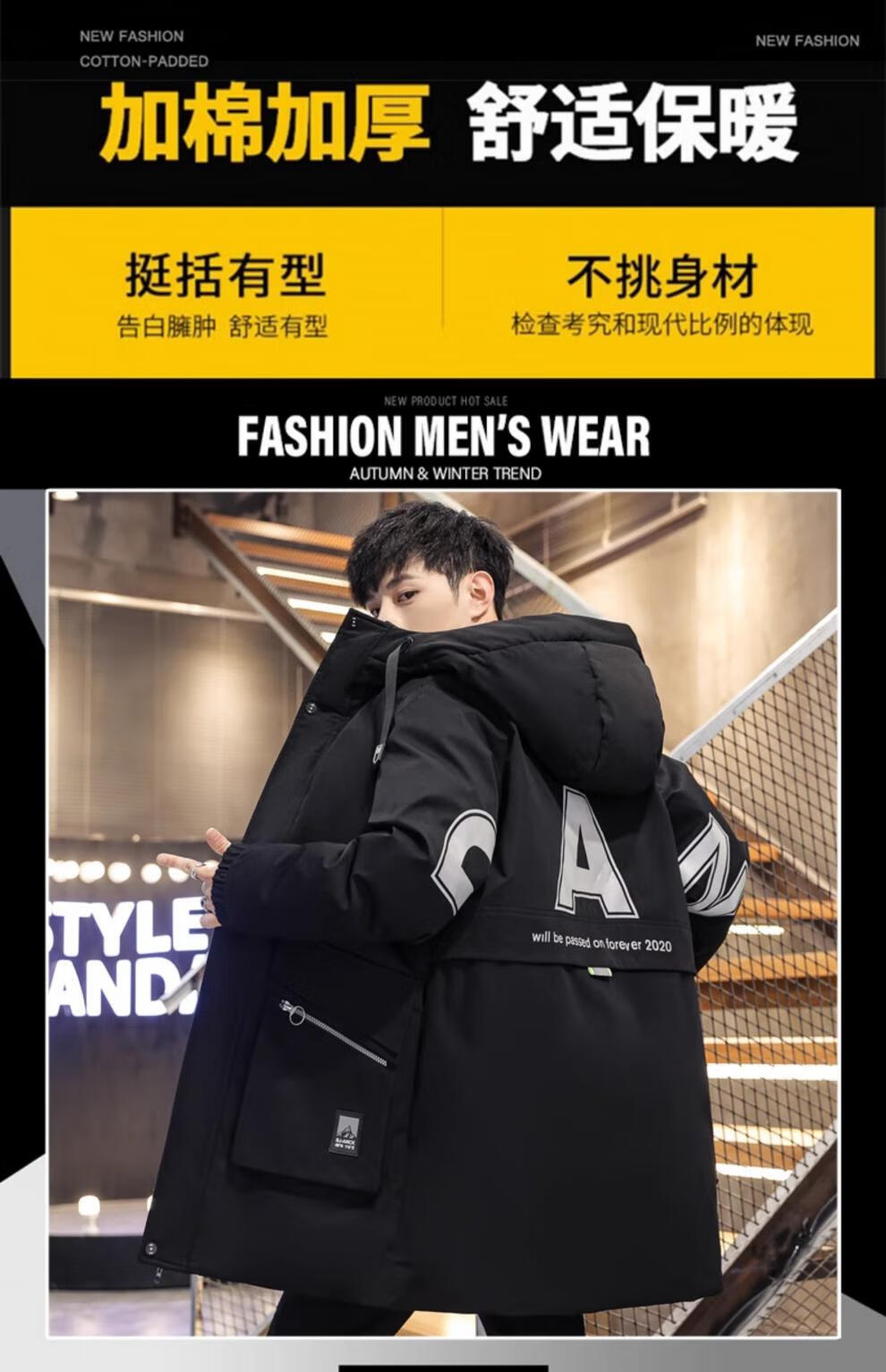 Pierre Cardin 2024 Winter Casual New Youth Jacket Boys Mid-Length Trendy Brand Cotton Clothes Early Thickened Men's Top 6193 Black 4XL