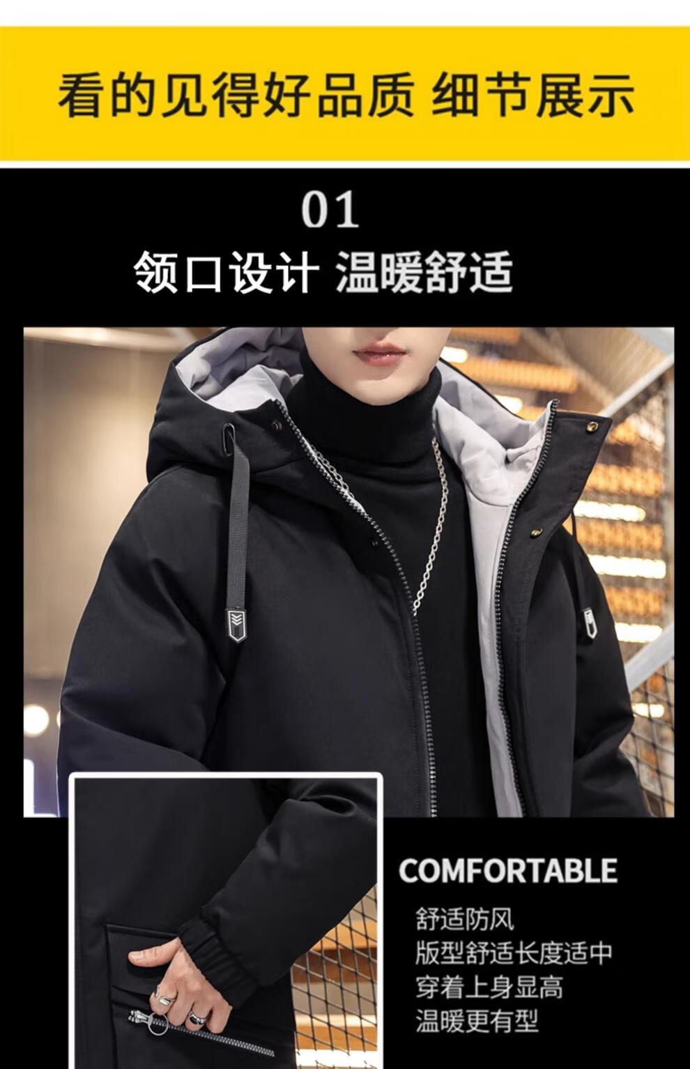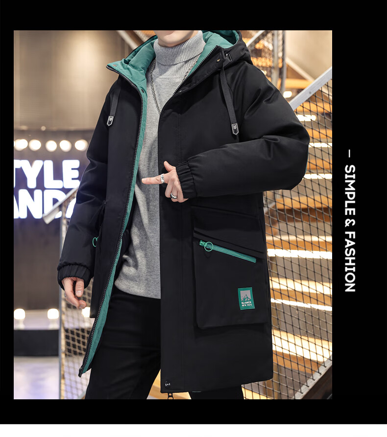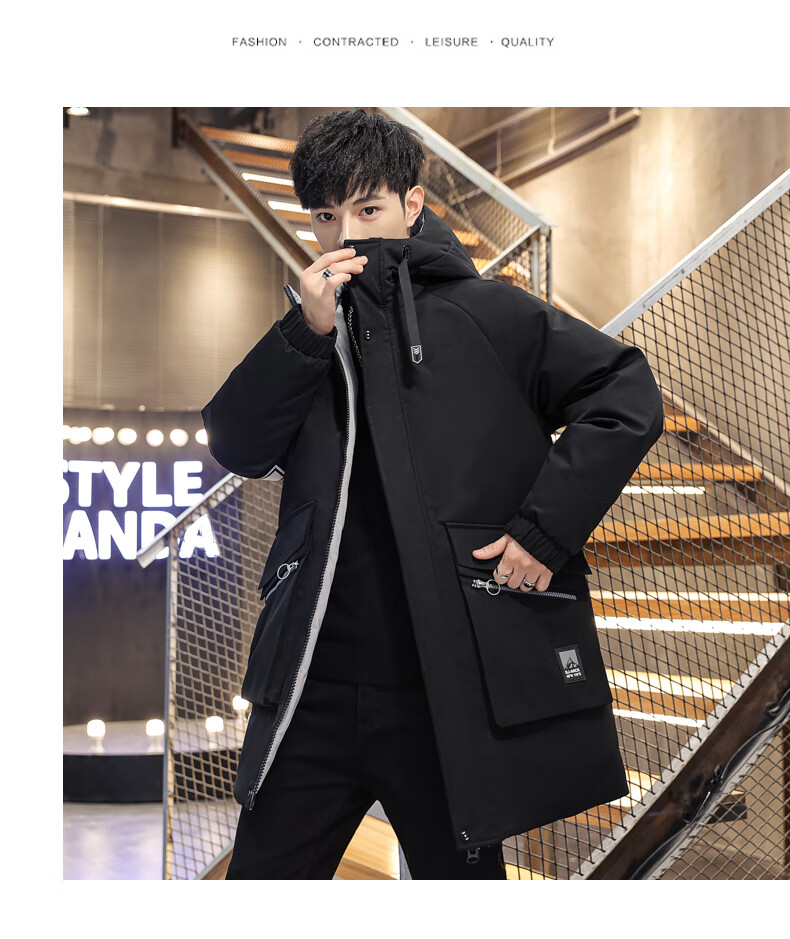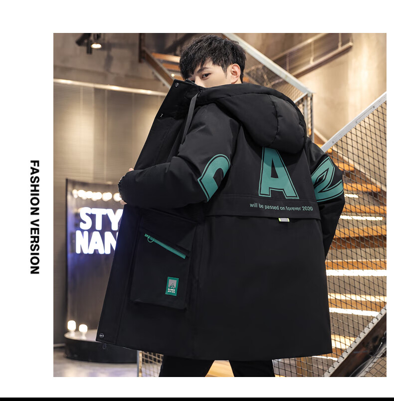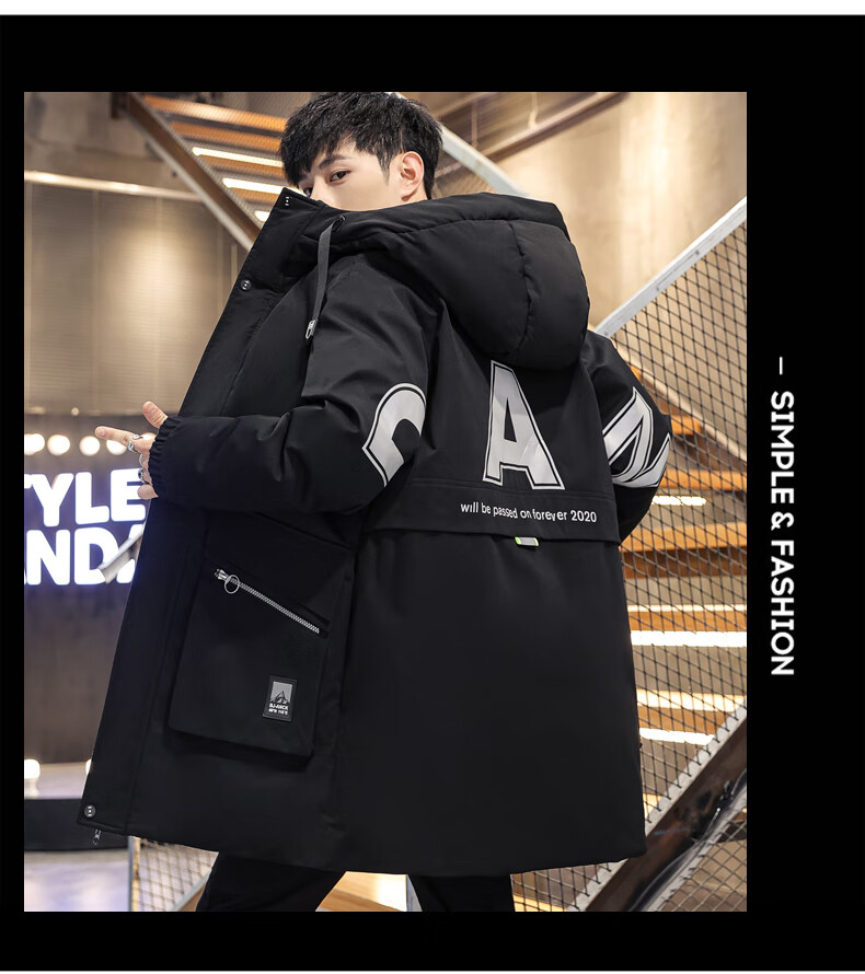 Pierre Cardin 2024 Winter Casual New Youth Jacket Boys Mid-Length Trendy Brand Cotton Clothes Early Thickened Men's Top 6193 Black 4XL