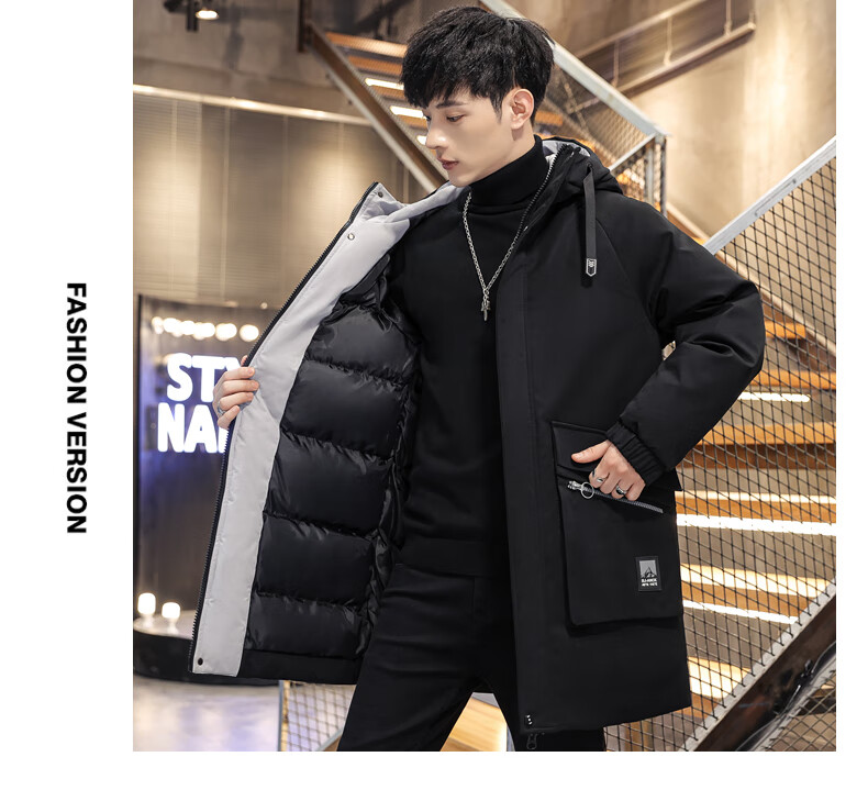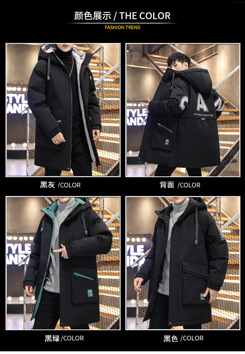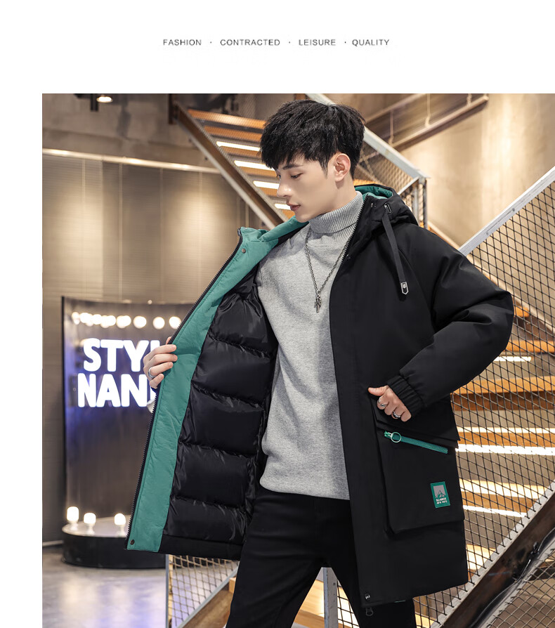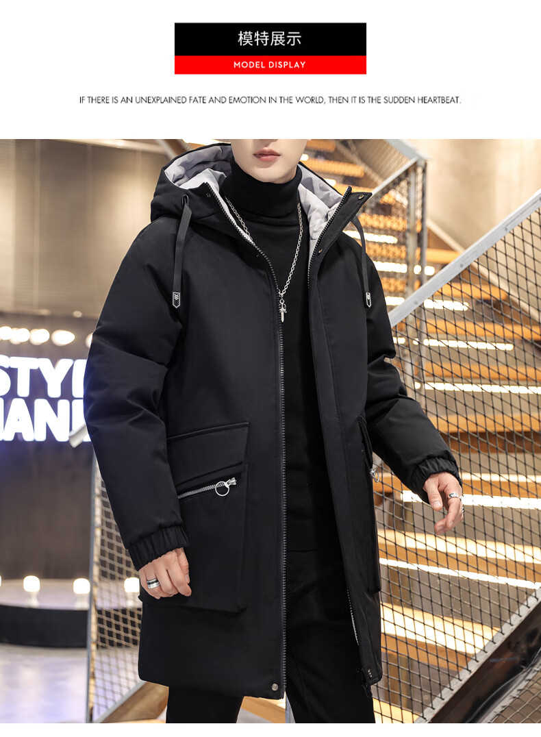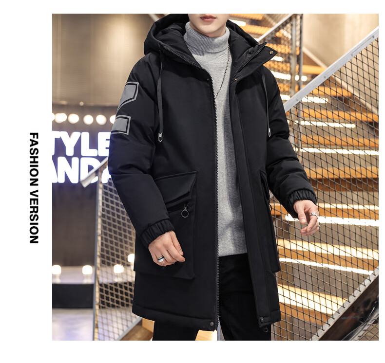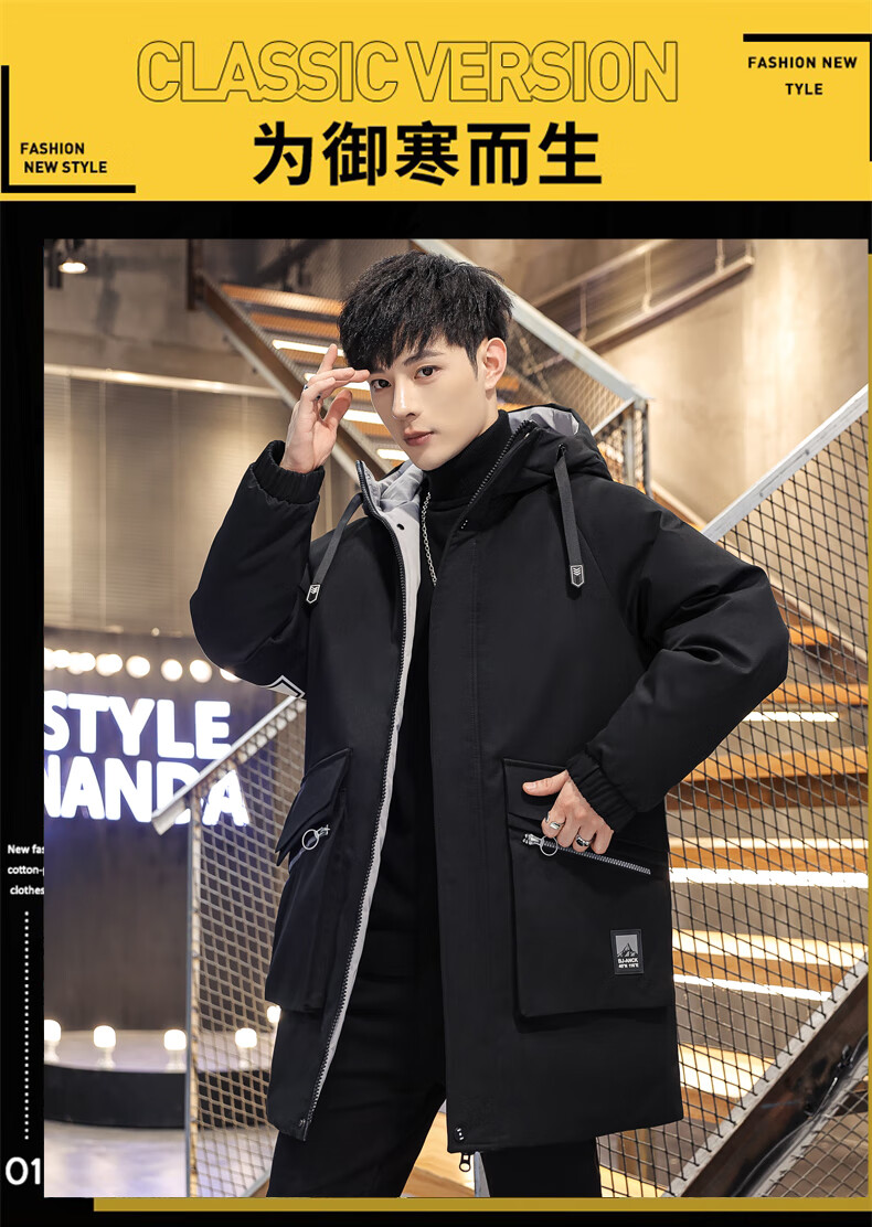 Pierre Cardin 2024 Winter Casual New Youth Jacket Boys Mid-Length Trendy Brand Cotton Clothes Early Thickened Men's Top 6193 Black 4XL