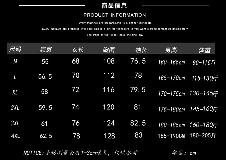 China (cm) 165 / 88-90 170 / 96-98 175 / 108-110 180 / 118-122 185 / 126-130