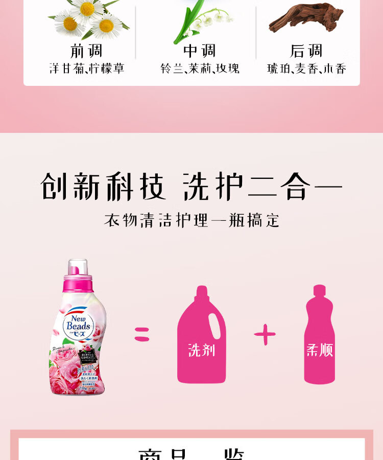 Kao (KAO) Japan original imported laundry detergent rose long-lasting fragrance softener two-in-one replacement refill official combination + 3 bags of rose replacement + 740g*1 bottle