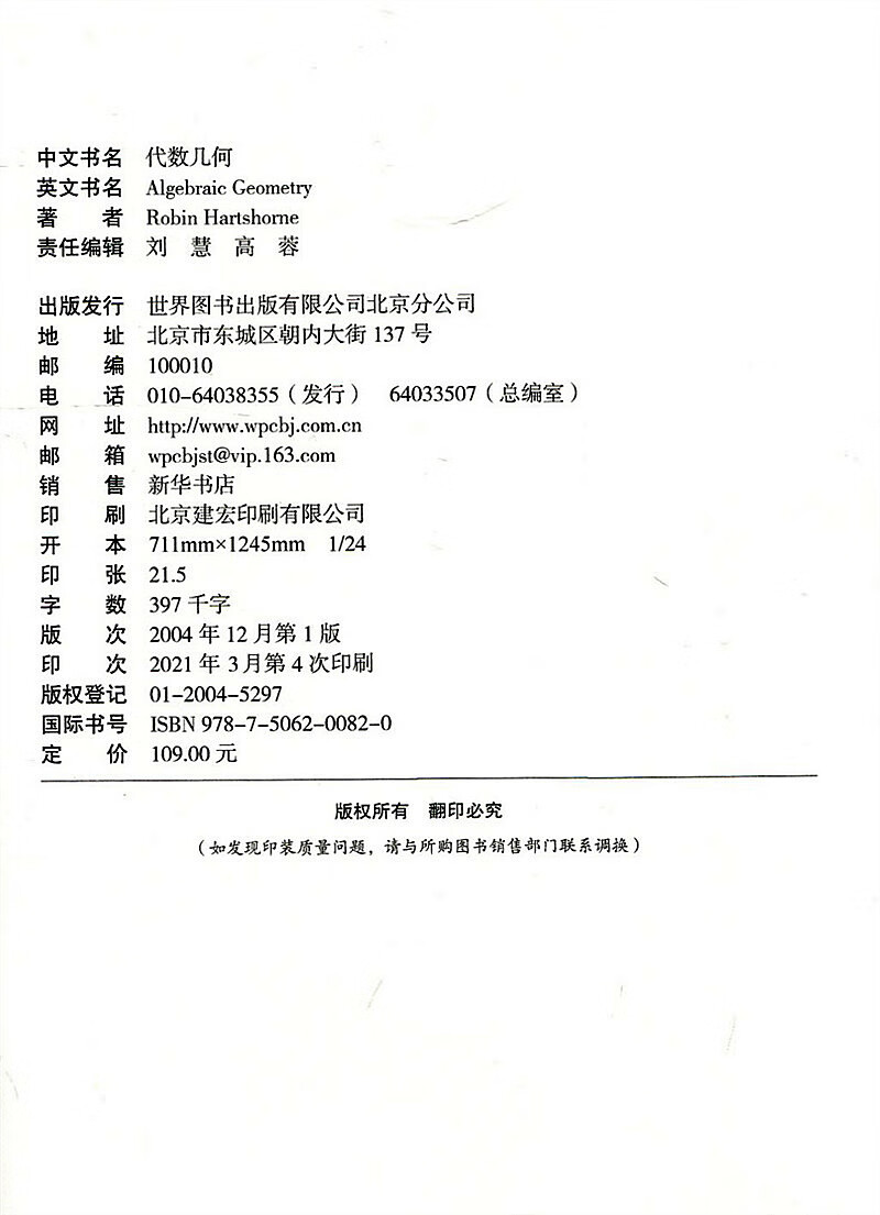 GTM52 Algebraic Geometry English version Algebraic Geometry by Robin Hartshorne Introductory textbook on algebraic geometry Abstract algebraic geometry mathematics textbook World Book Publishing Company