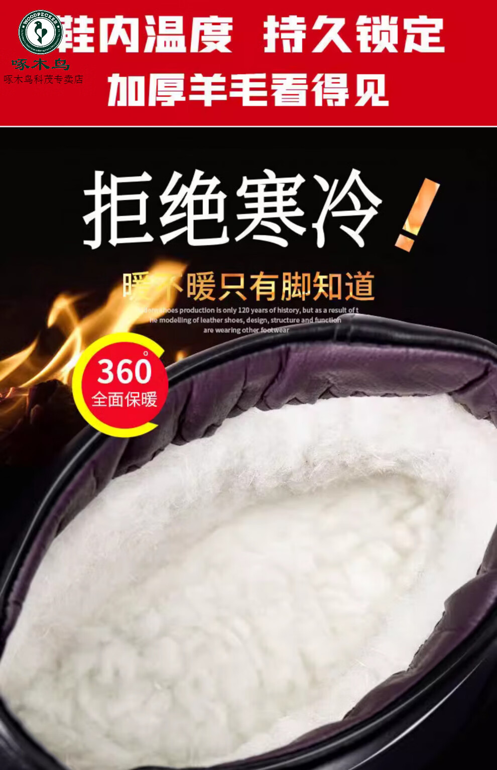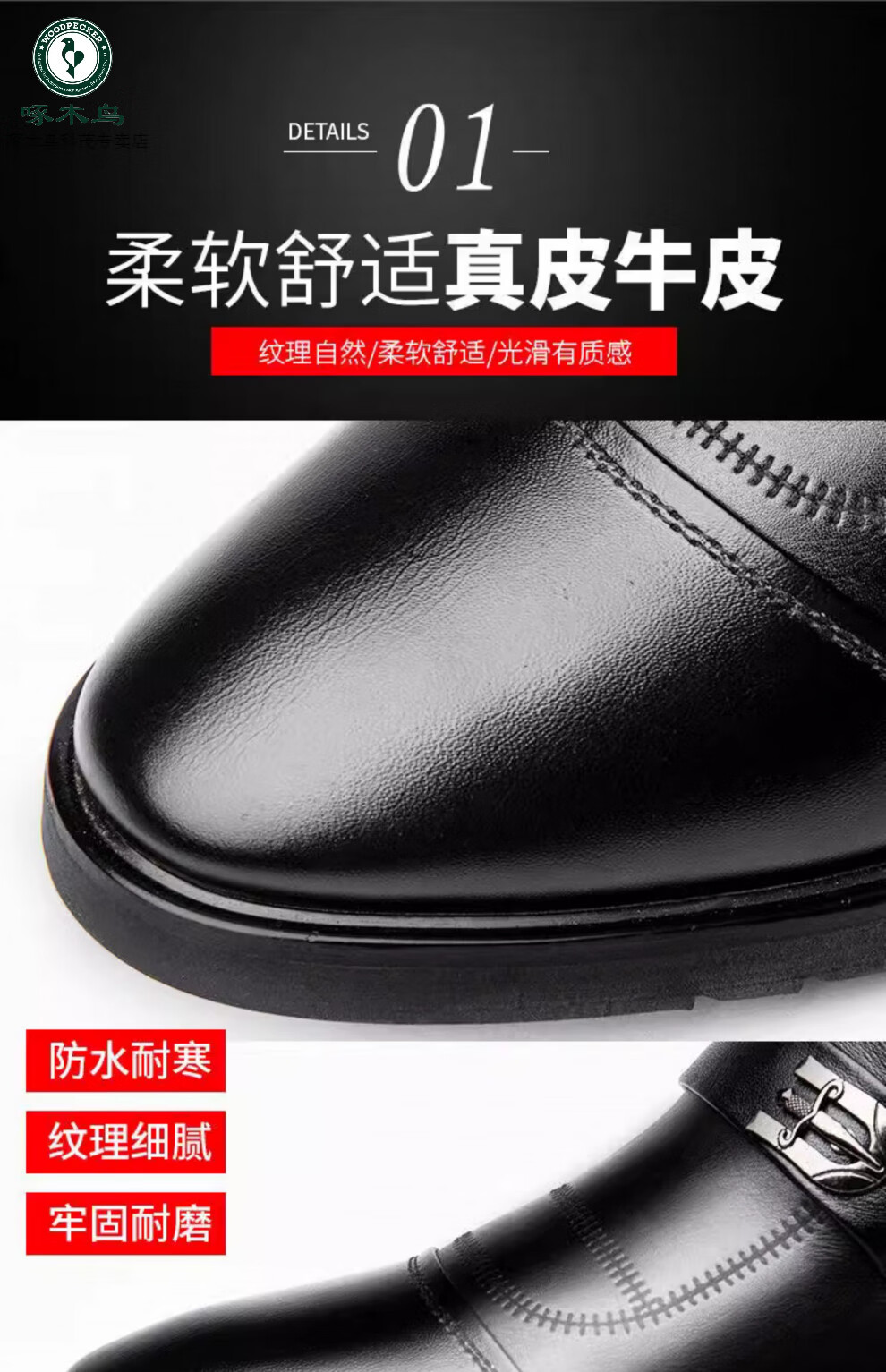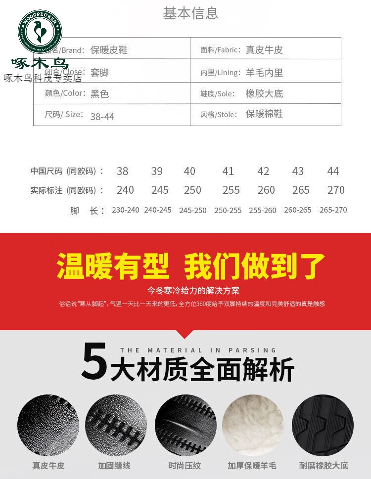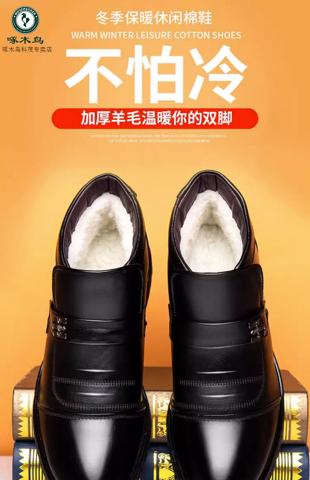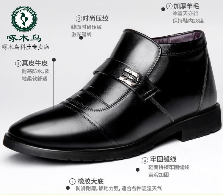 Woodpecker genuine leather large cotton shoes for men in winter plus velvet to keep warm and waterproof Northeastern cotton leather shoes genuine leather middle-aged and elderly dad's shoes 9900 black 42 Woodpecker brand